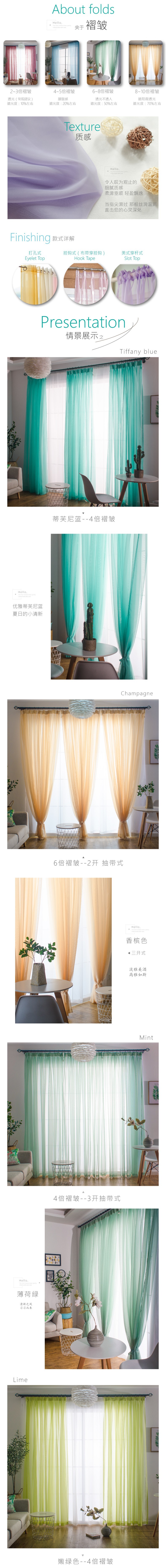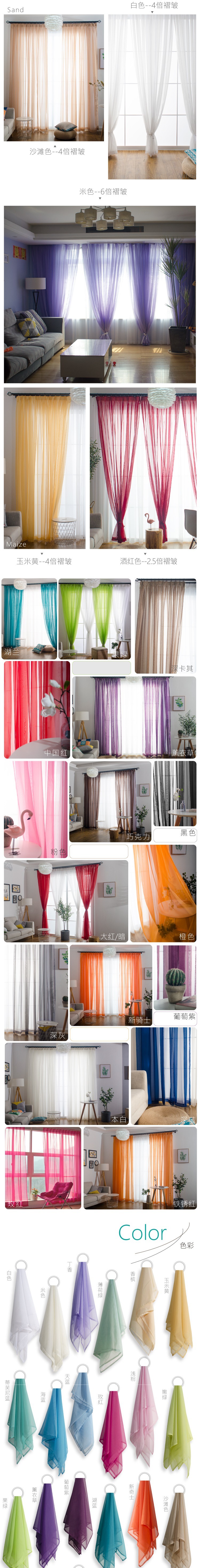 심플한 단색 거즈 커튼, 창문 스크린, 투광 침대 커튼, 거실 발코니 바닥 창, 침실 완제품, 인기 판매스토어 가기
