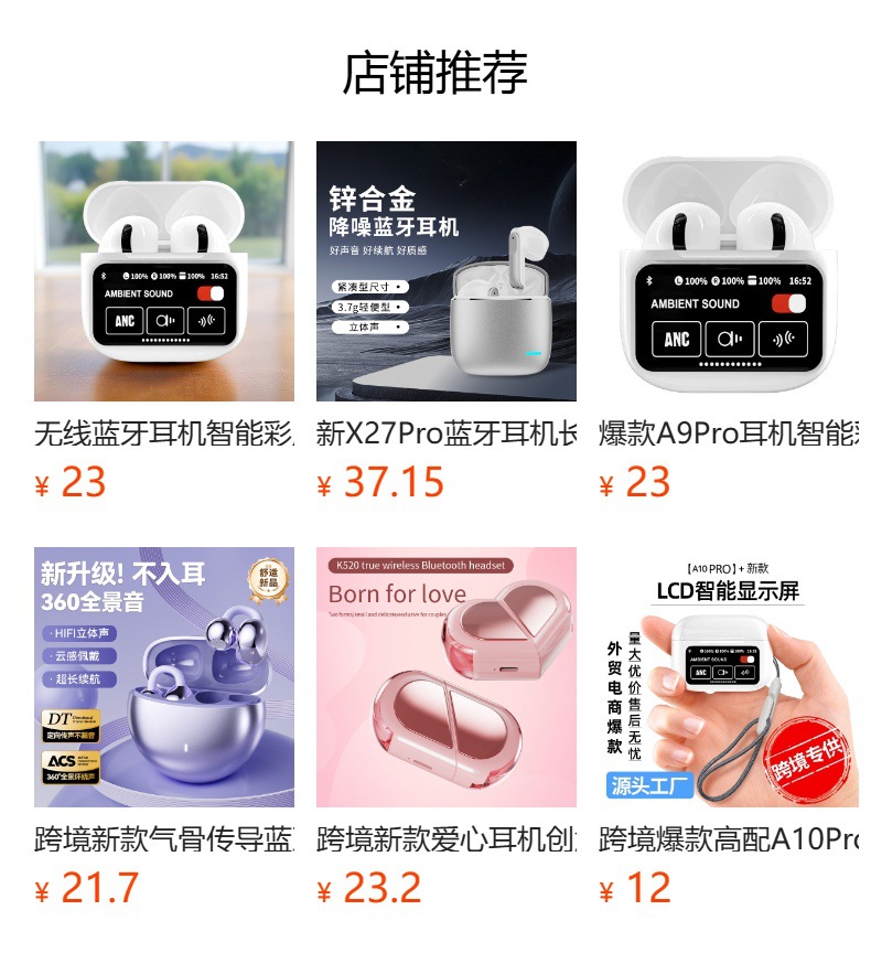 跨境新款创意降噪智能蓝牙耳机定制logo跨境外贸亚马逊热销爆款ENC/ANC降噪蓝牙耳机无线长续航入耳LCD彩屏商务运动耳机tws华强北耳机深圳数码