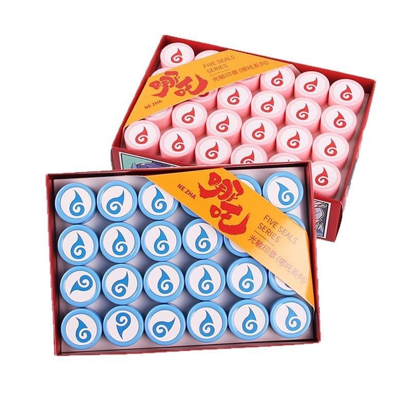 Nezha Seal Devil Child, 세계 어린이 이마 눈썹 씰 레드 패턴 Ao Bing Blue Seal Award 장난감