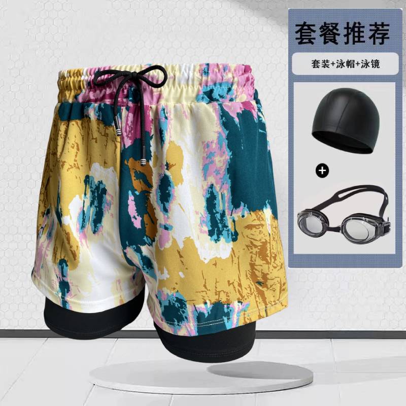 남성용 더블 레이어 당황 방지 수영복 2025 새로운 속건성 대형 느슨한 복서 온천 해변 전문 수영복