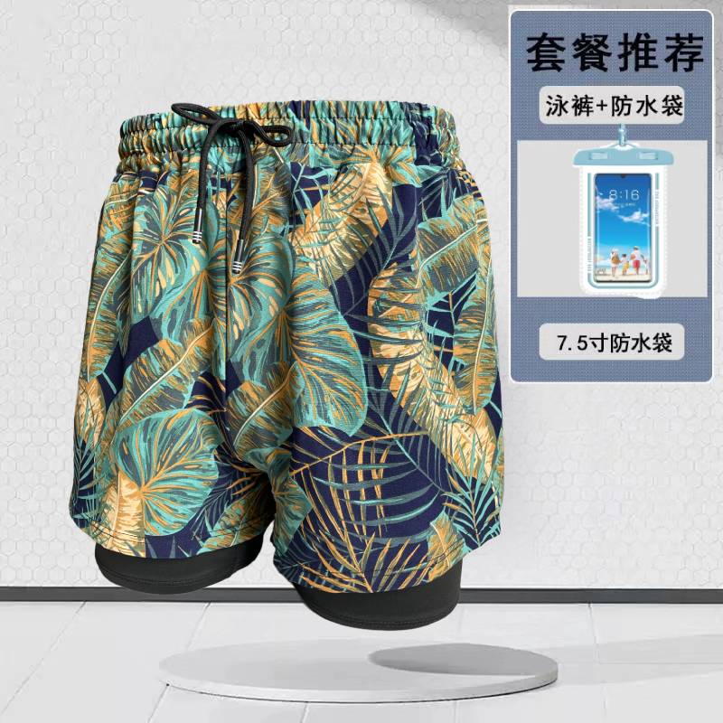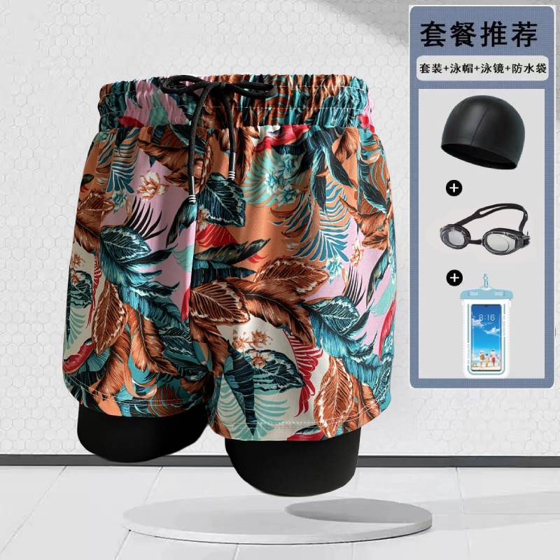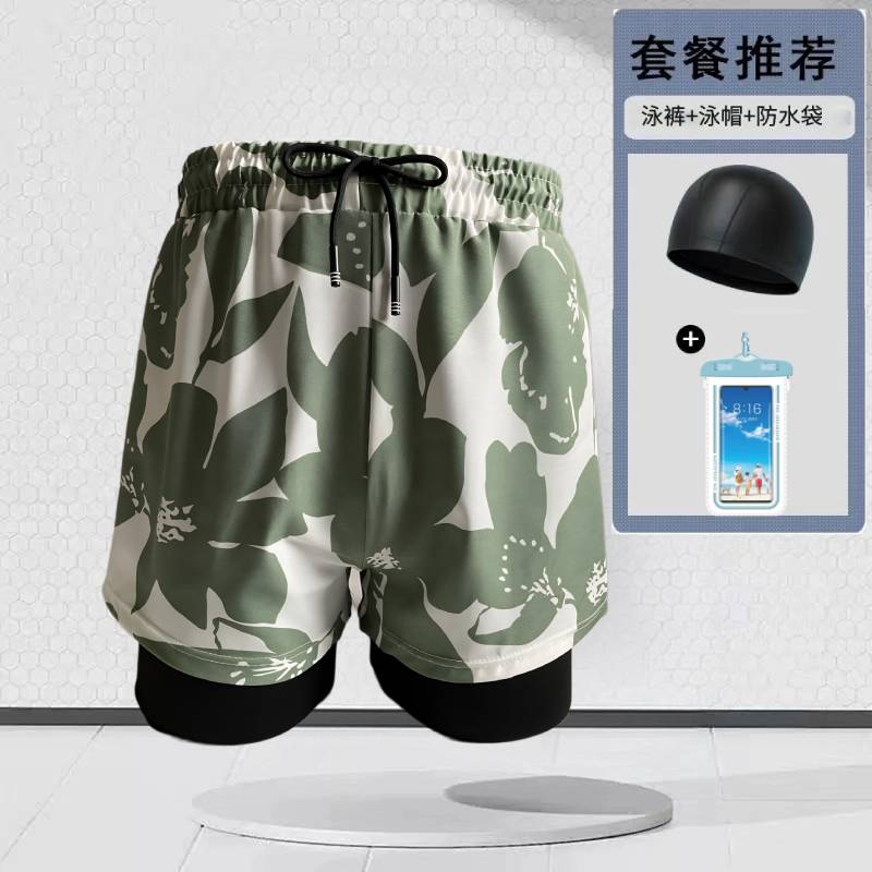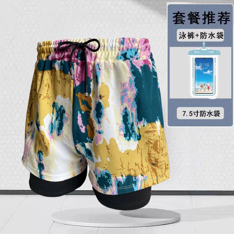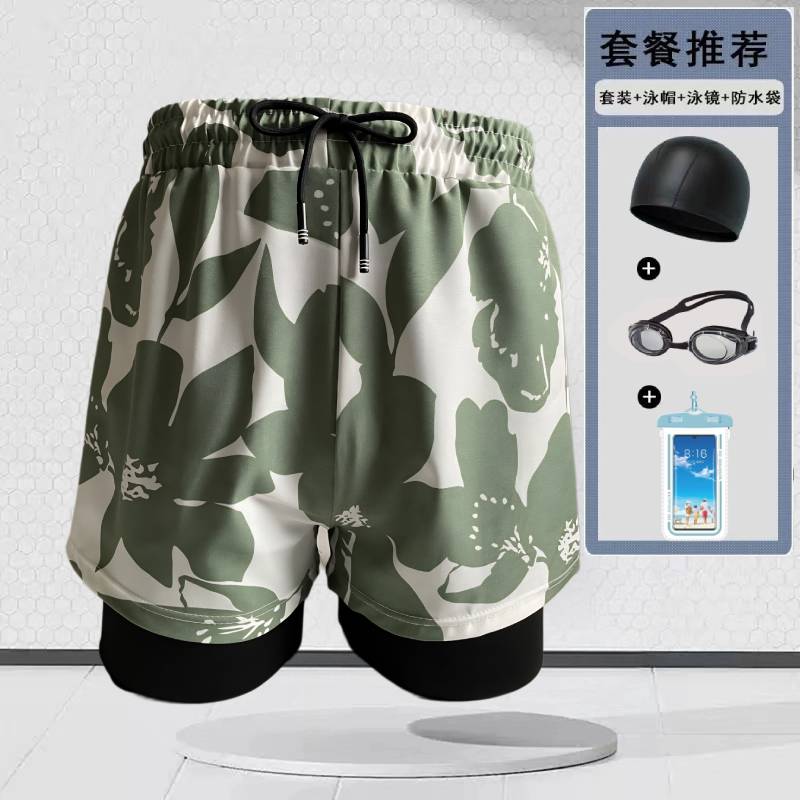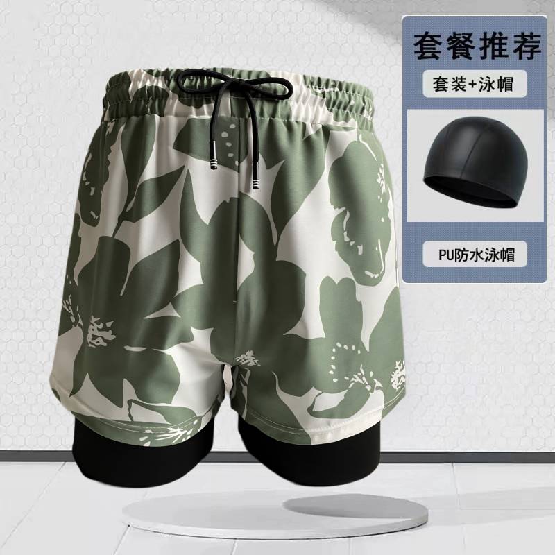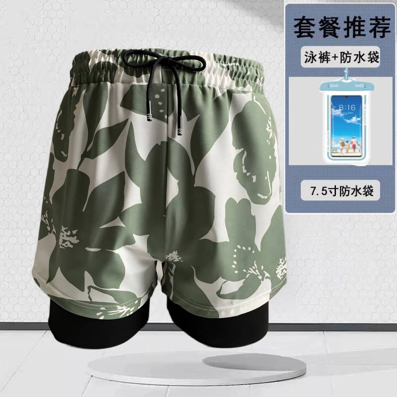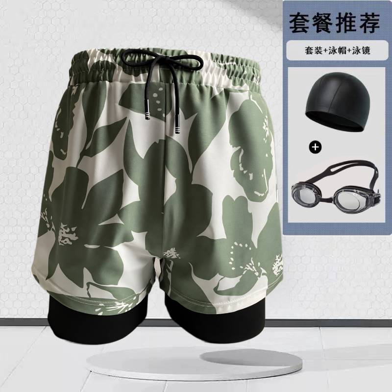 남성용 더블 레이어 당황 방지 수영복 2025 새로운 속건성 대형 느슨한 복서 온천 해변 전문 수영복스토어 가기