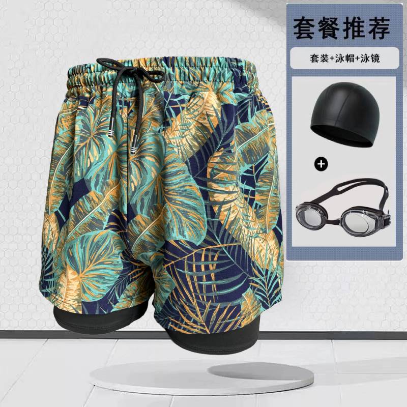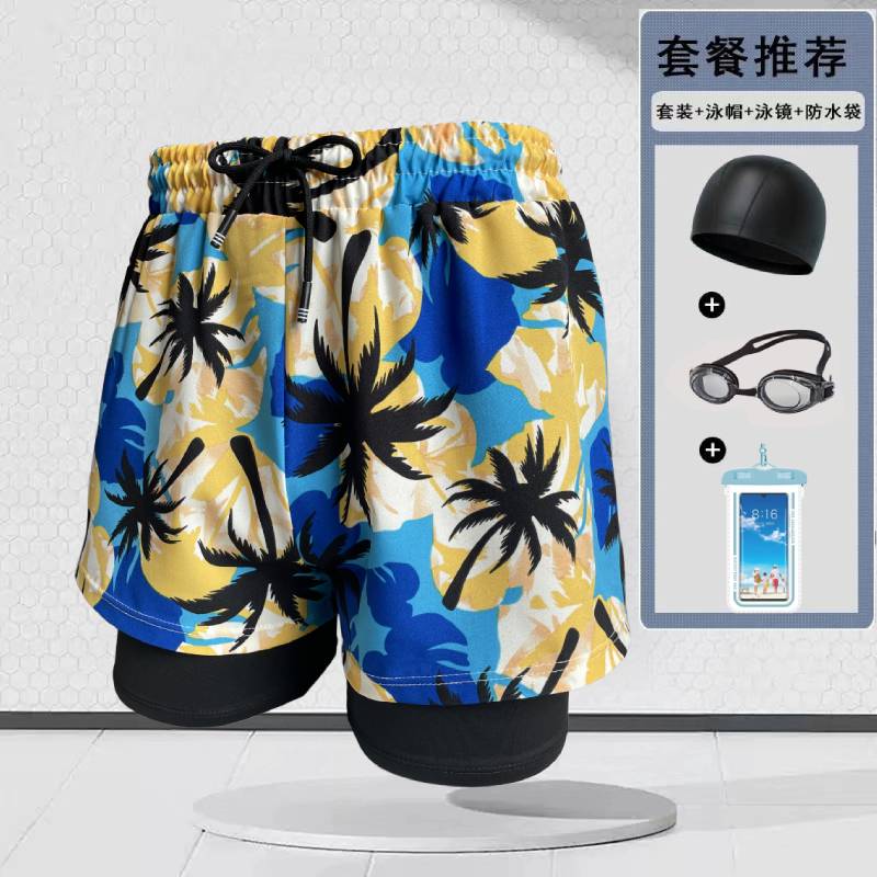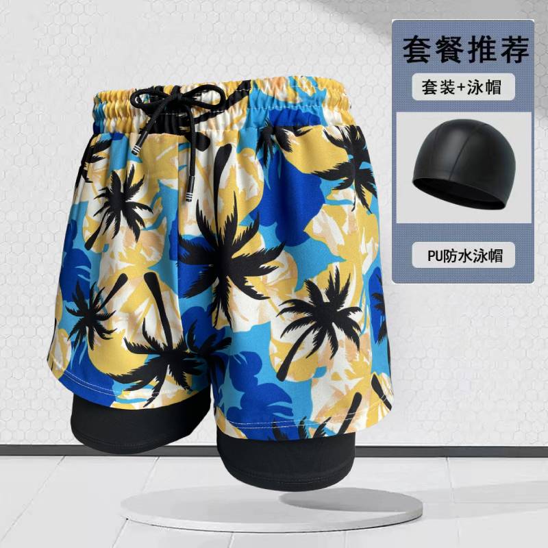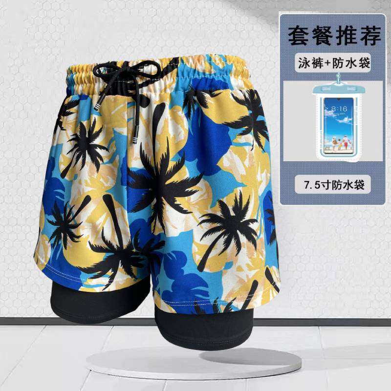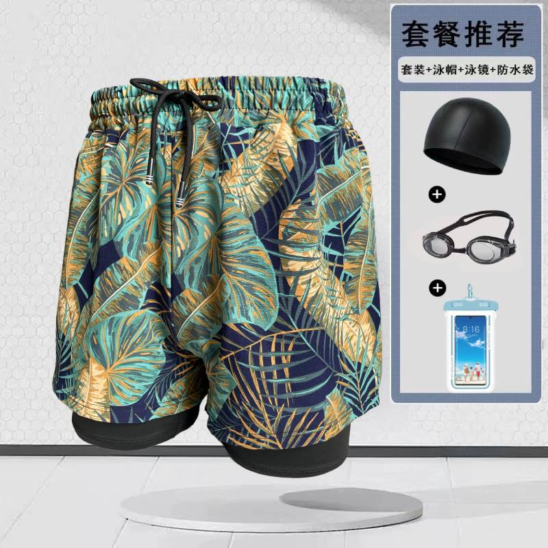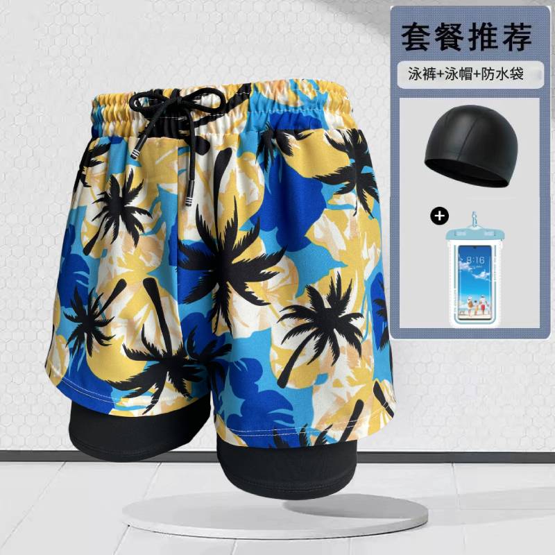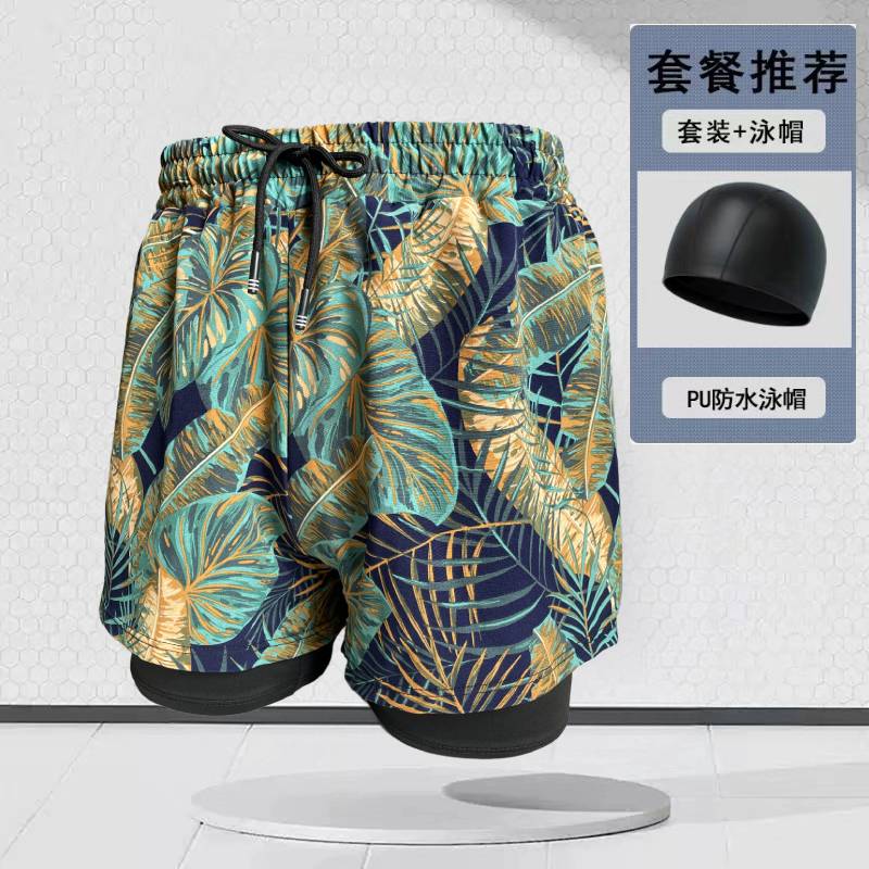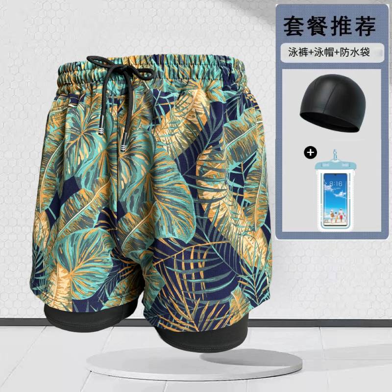 남성용 더블 레이어 당황 방지 수영복 2025 새로운 속건성 대형 느슨한 복서 온천 해변 전문 수영복스토어 가기