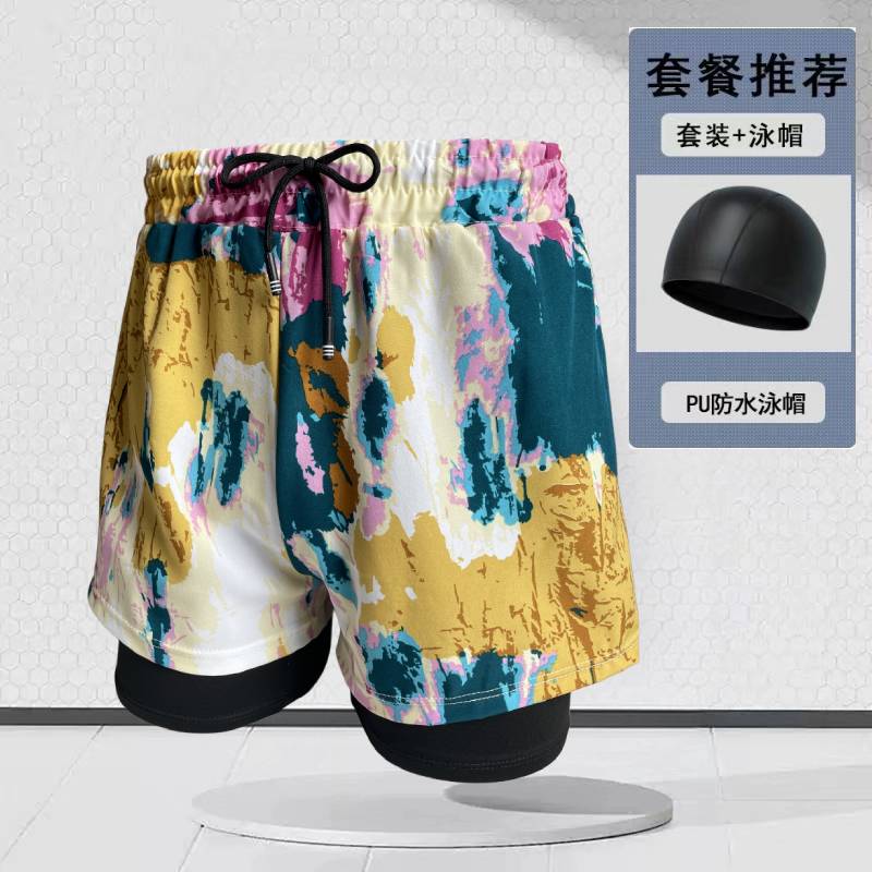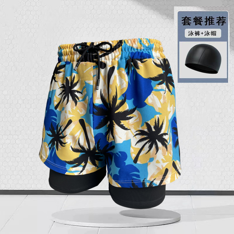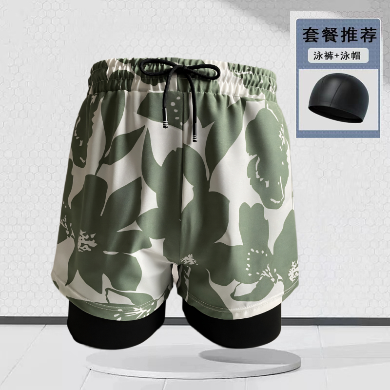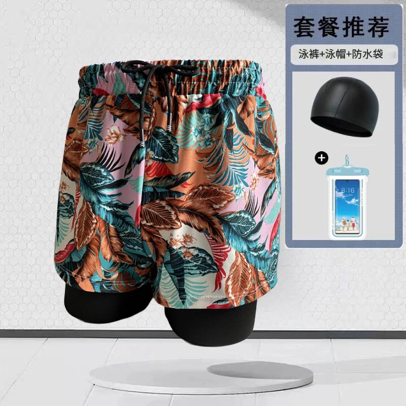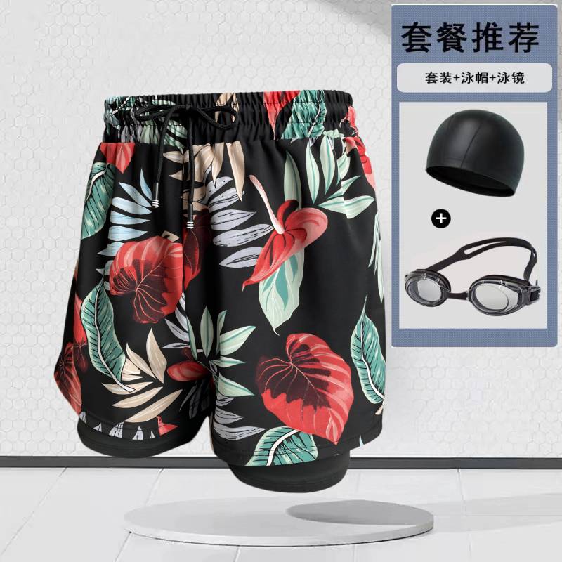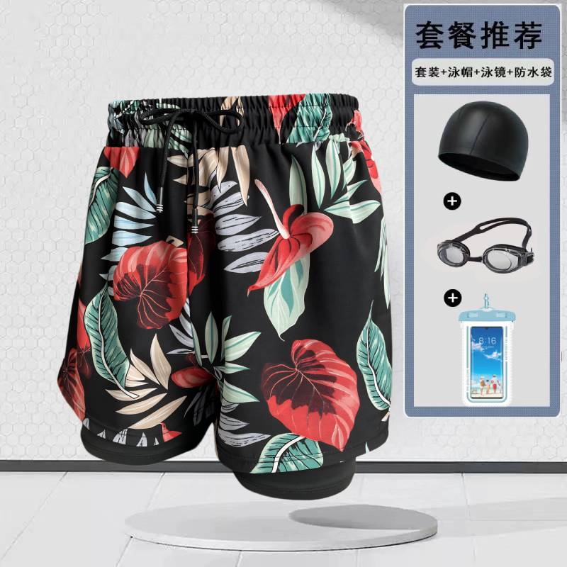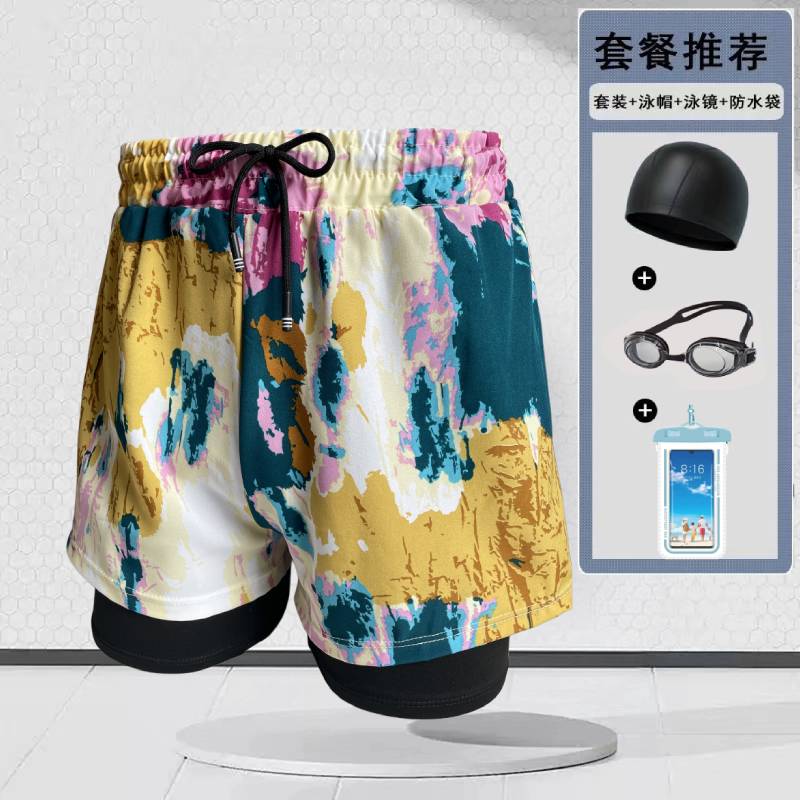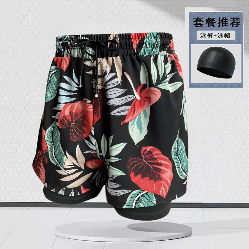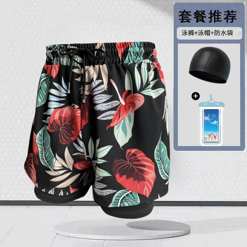 남성용 더블 레이어 당황 방지 수영복 2025 새로운 속건성 대형 느슨한 복서 온천 해변 전문 수영복스토어 가기