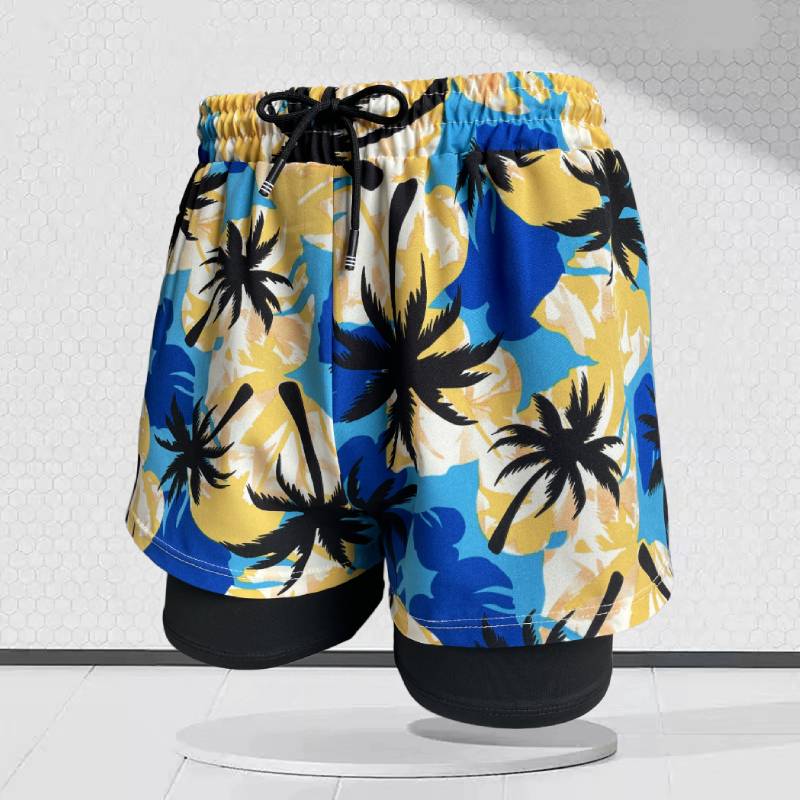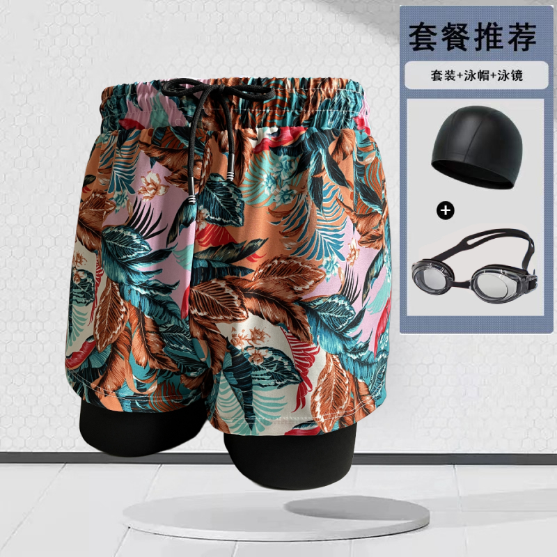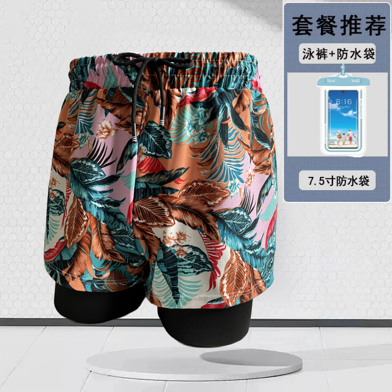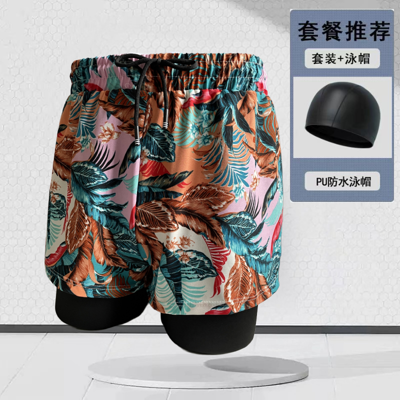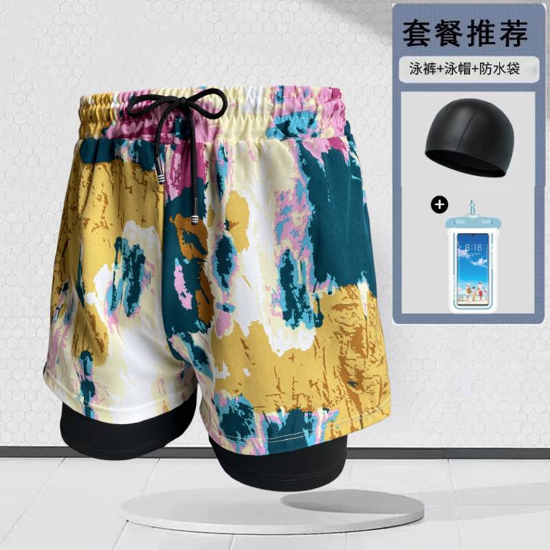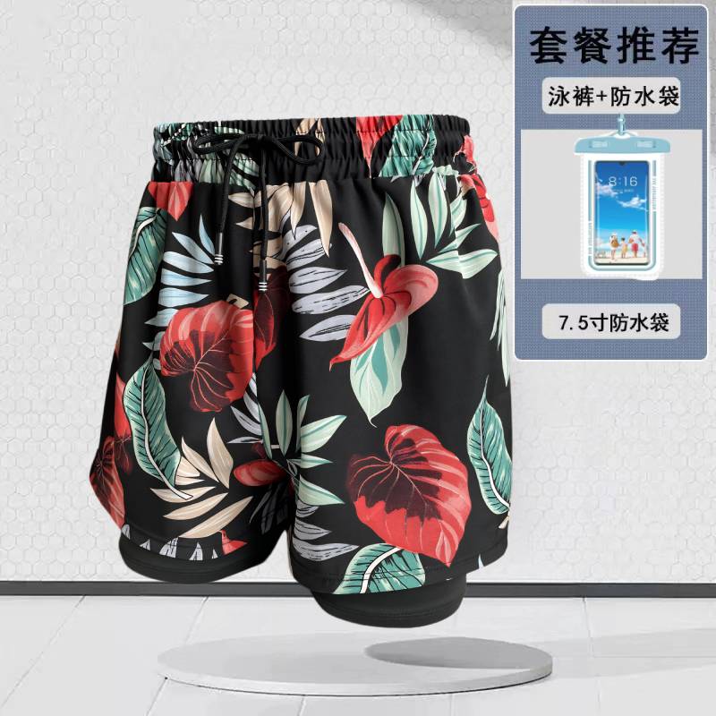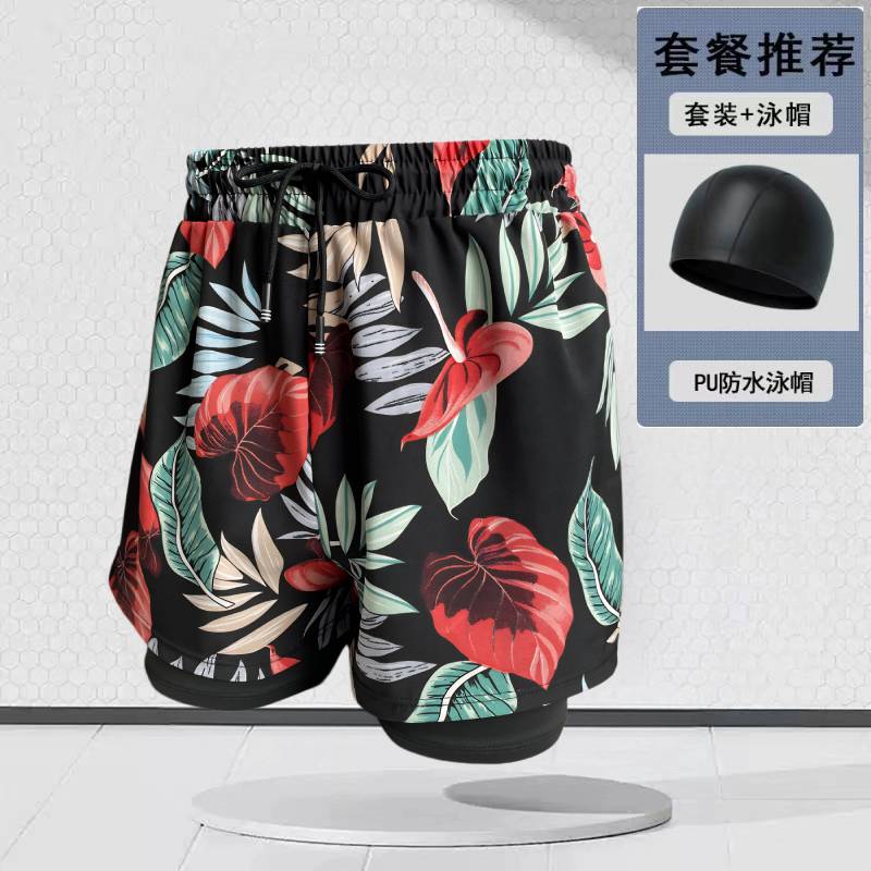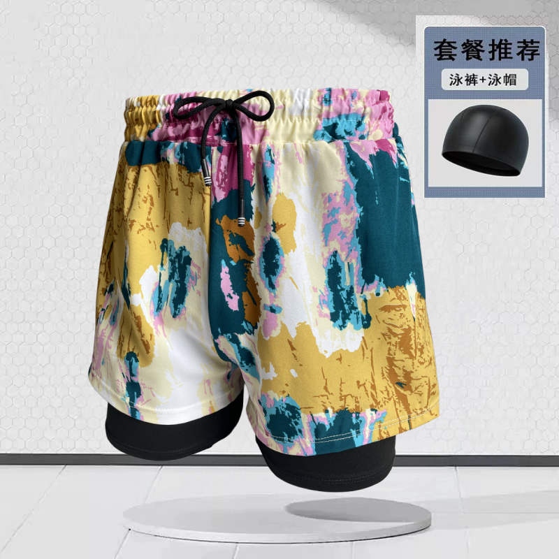 남성용 더블 레이어 당황 방지 수영복 2025 새로운 속건성 대형 느슨한 복서 온천 해변 전문 수영복스토어 가기