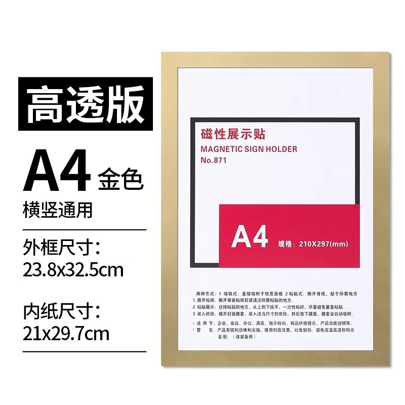 마그네틱 디스플레이 스티커 마그네틱 광고 프레임 마그네틱 스티커 A4 디스플레이 프레임 파일 프레임 비즈니스 라이센스 보호 카드 홀더 벽걸이