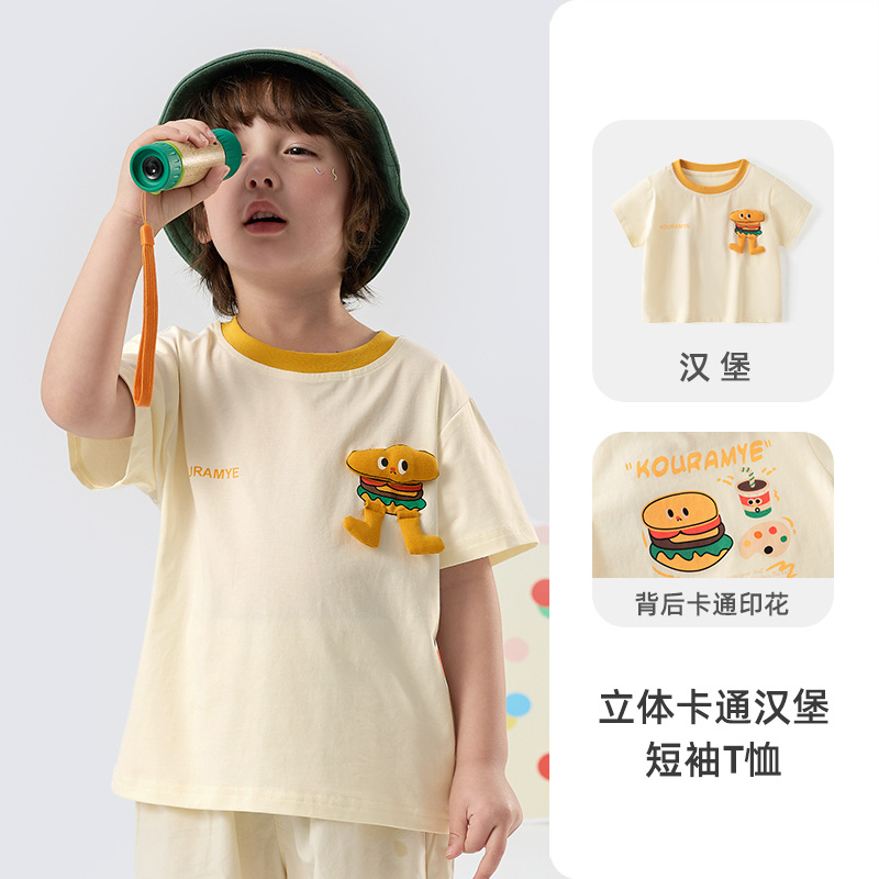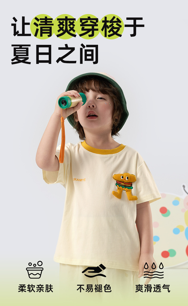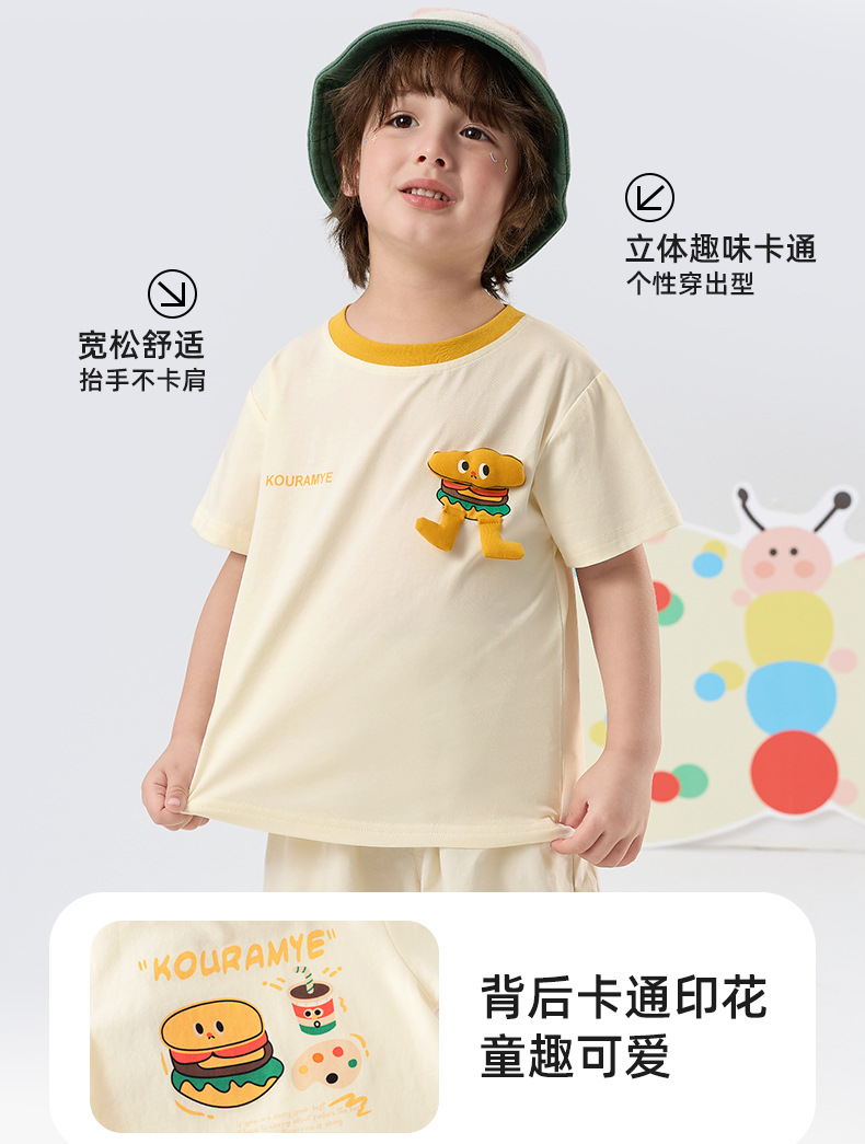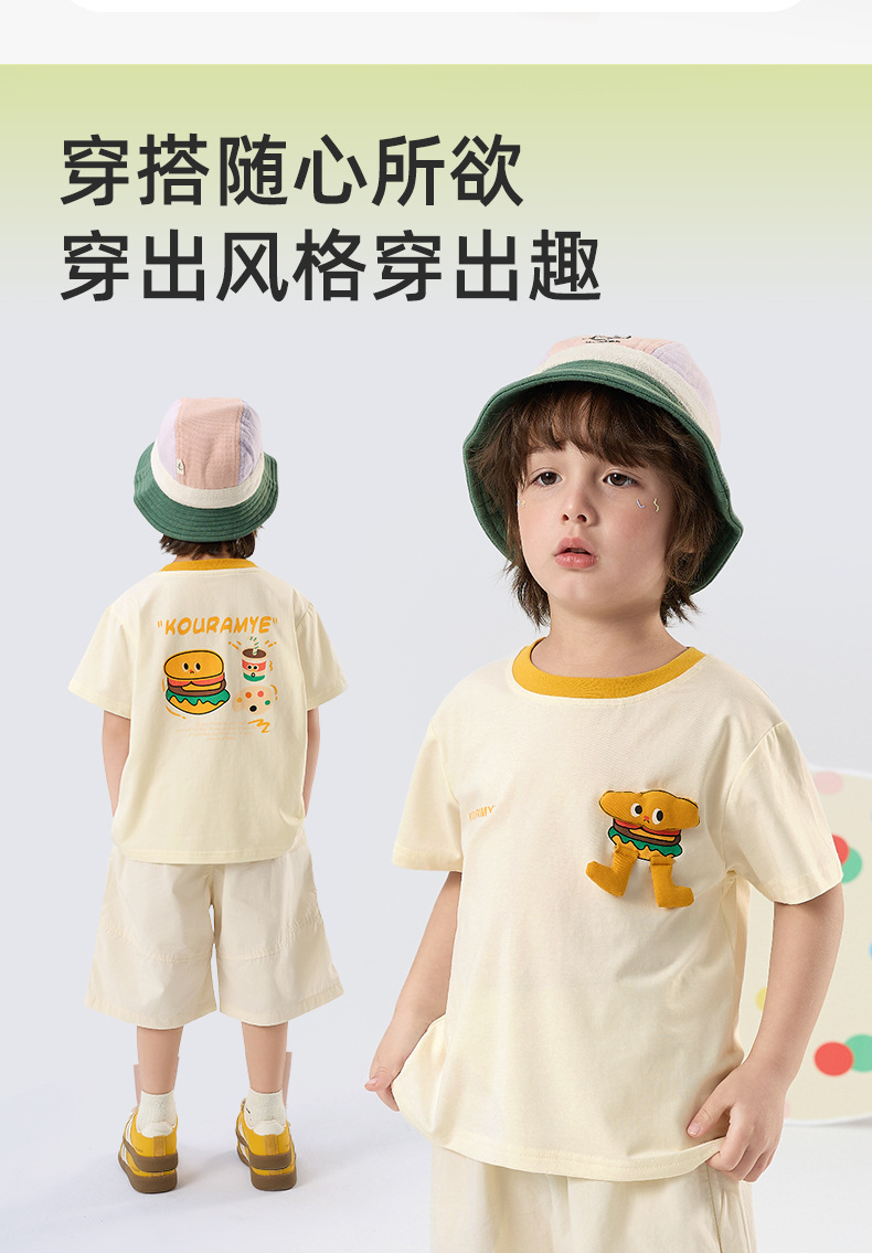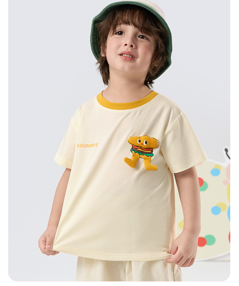 Kuwa Mi 2025 여름 새로운 스포츠 다목적 만화 대비 색상 티셔츠(소형 및 중형 소년 소녀용)스토어 가기