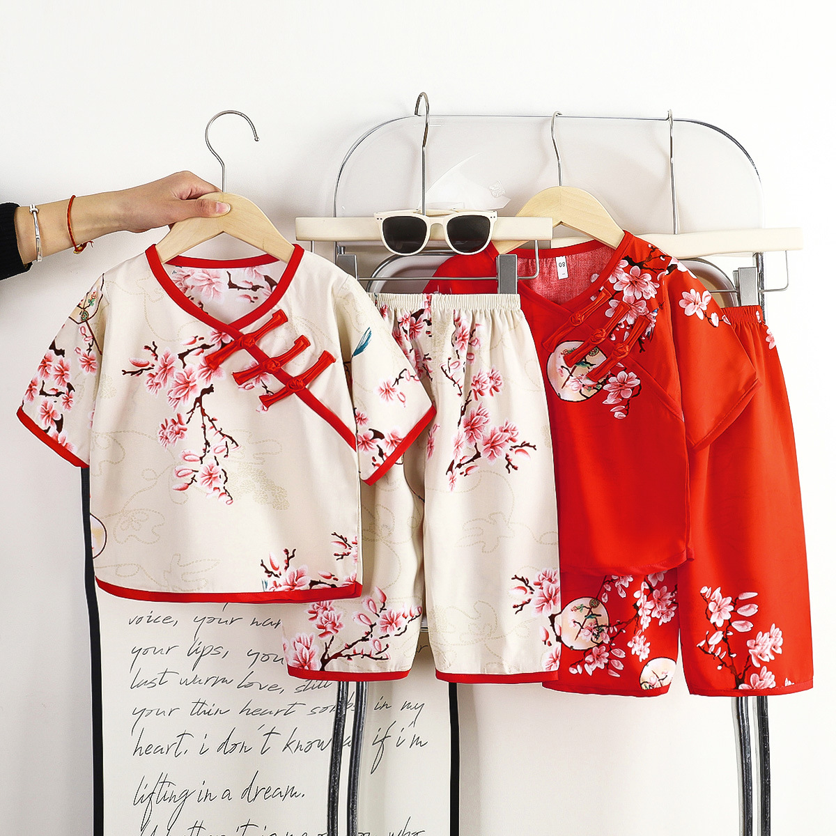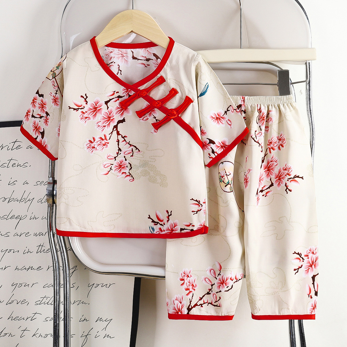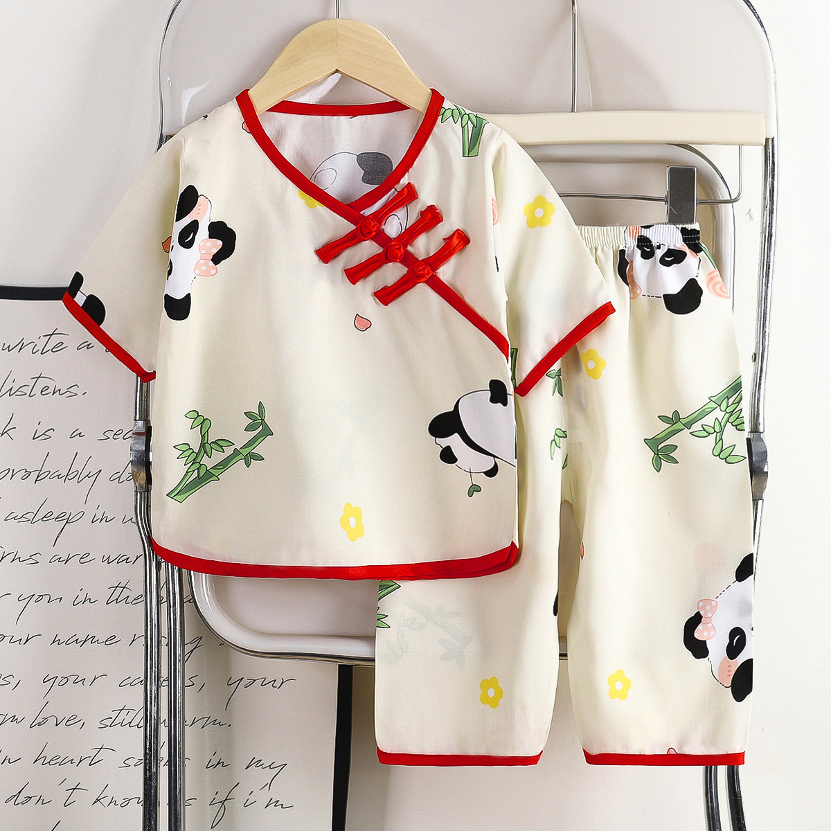버클 민족 스타일 카프리 바지 면 실크 어린이 의류 여름 새로운 한푸 얇은 홈 의류 인공 면화 어린이 세트스토어 가기