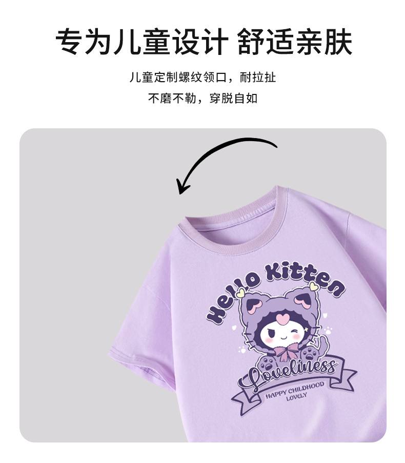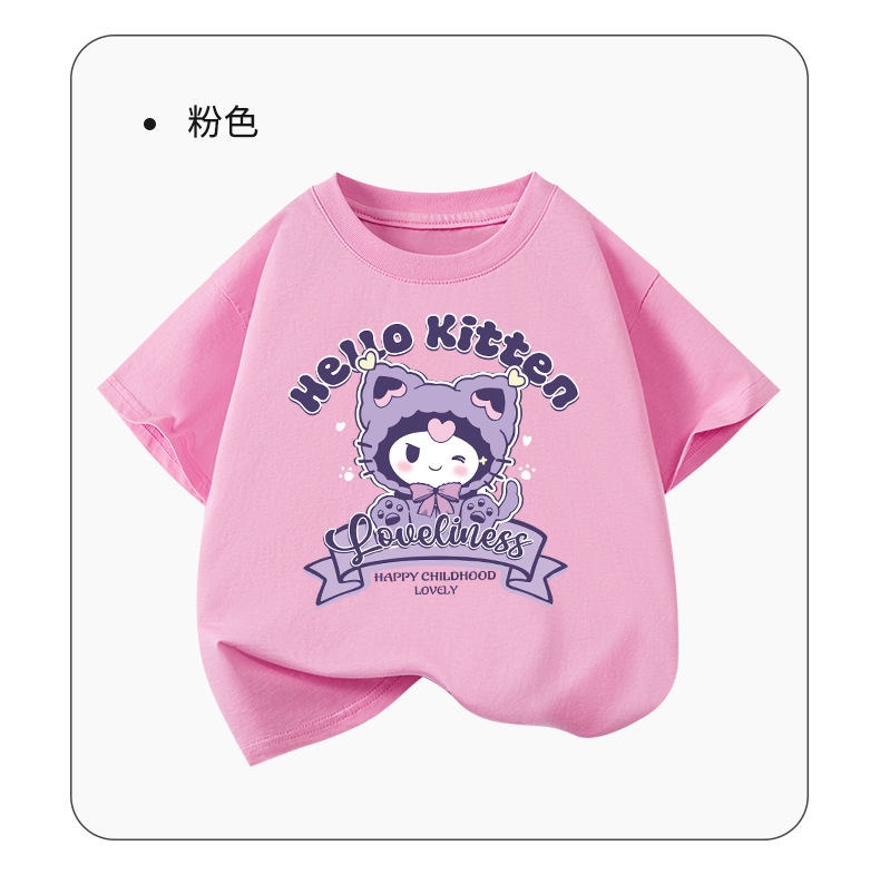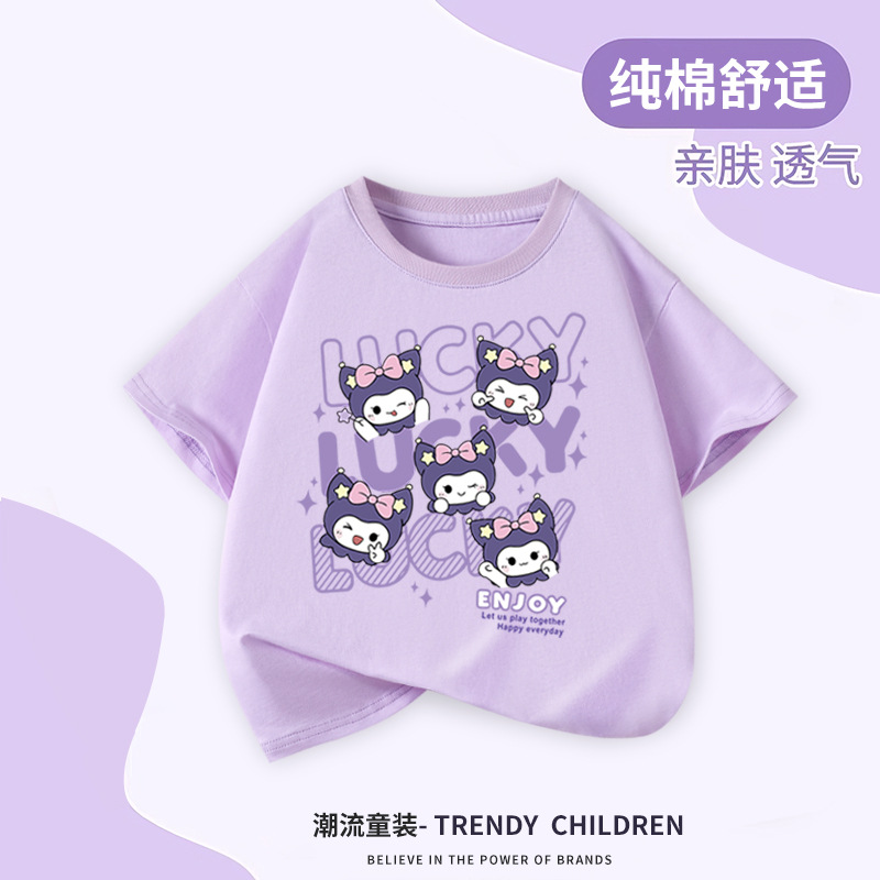 순수 코튼 티셔츠 2025 새로운 여름 소녀 느슨한 간단한 라운드 넥 만화 쿠로미 반팔 탑 아동 의류 유행스토어 가기