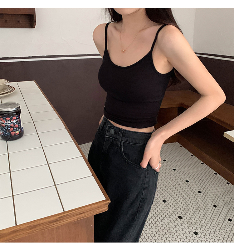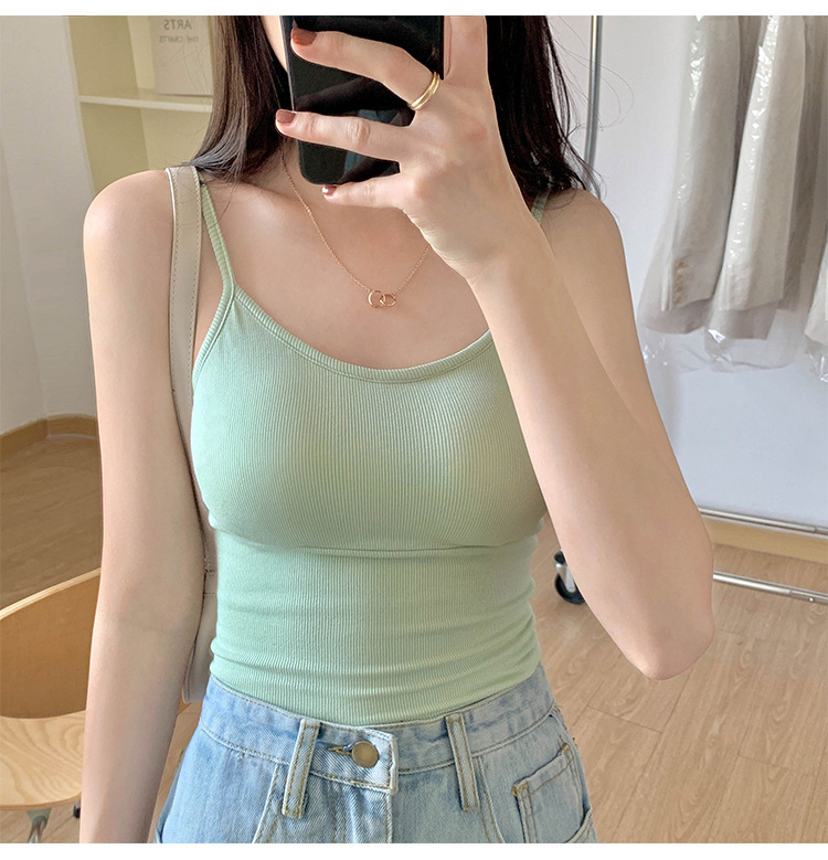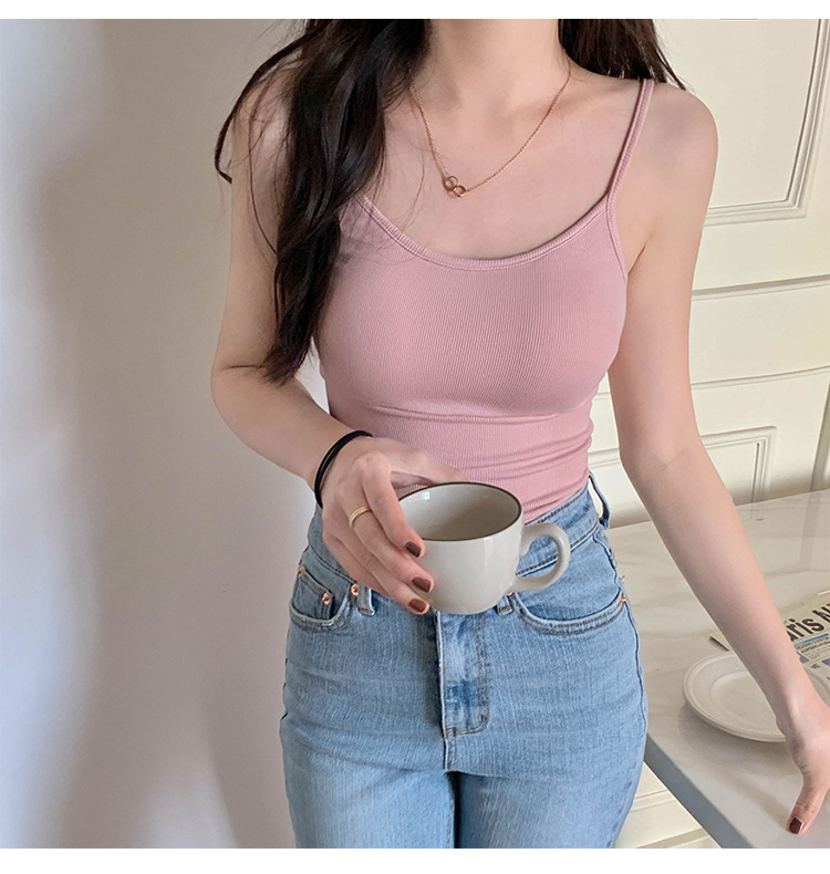 가슴 패드와 함께 트렌디 한 슬링 조끼 여성용 내베이스 스포츠 여성을위한 짧은 조끼 순수 탑을 입고 아름다운 뒤 외부스토어 가기
