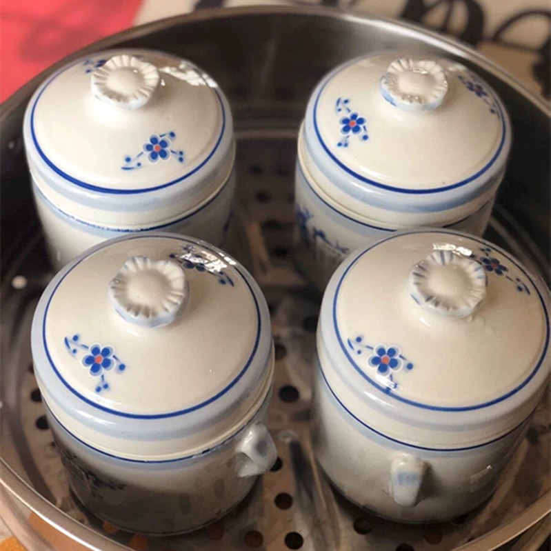 란메이 청화백자 방수 세라믹 스튜 컵(뚜껑 포함), 두 귀 불 점벽 제비집, 가정용 대형 수프 냄비, 계란찜 Lingxing스토어 가기