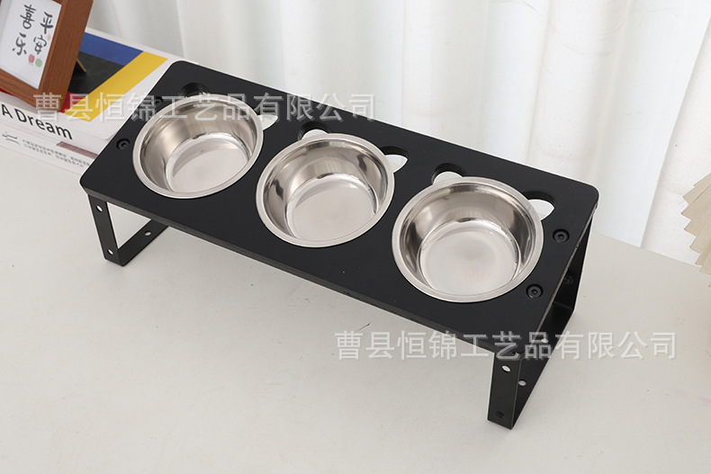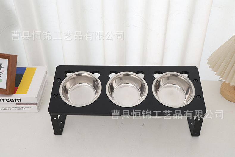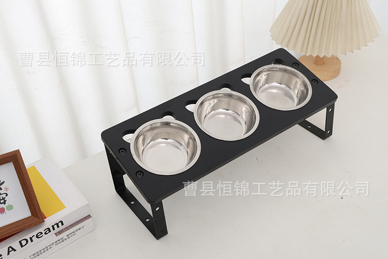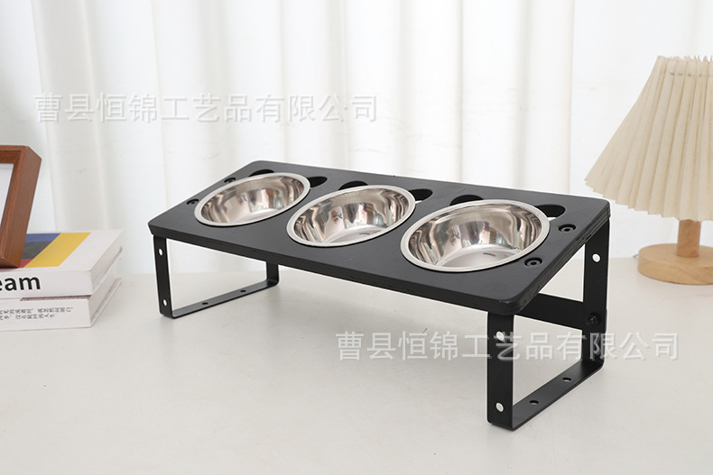 나무 애완동물 피더, 철제 및 목재 결합 고양이 그릇 홀더, 경사진 애완동물 피더, 가정용 고양이 및 개 먹이 그릇