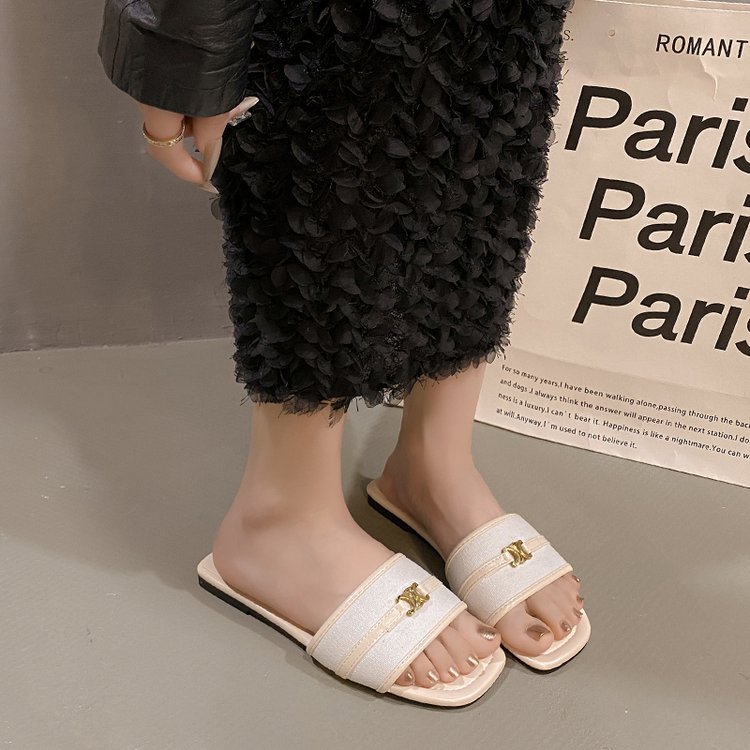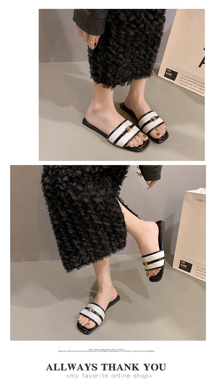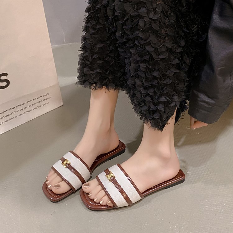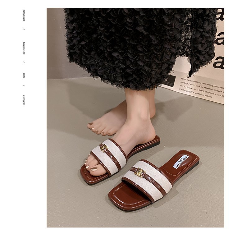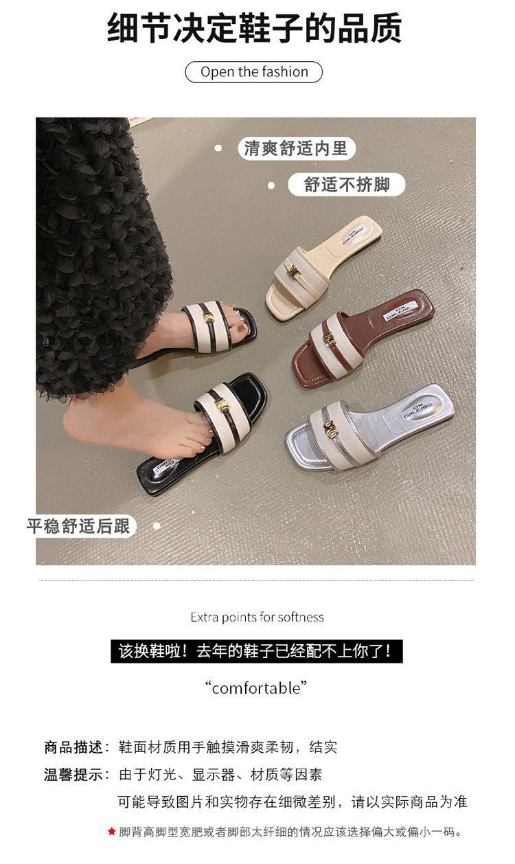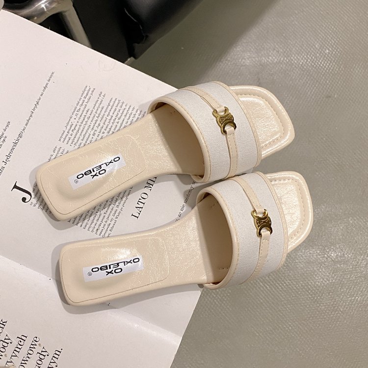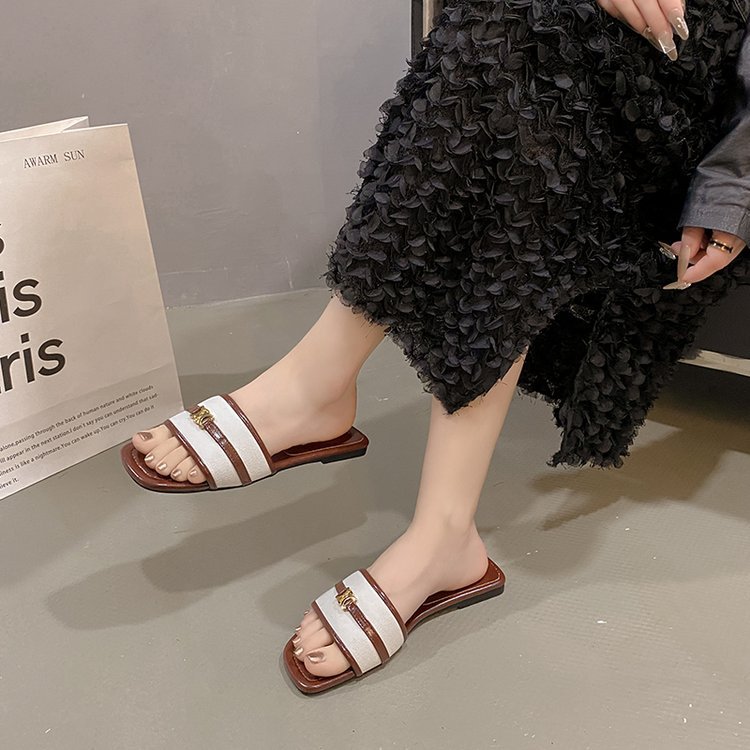 여성 슬라이드 슬리퍼 여름 새로운 야외 슬리퍼 스퀘어 헤드 경량 패션 비치 신발 작은 향기로운 스타일 인터넷 인기 패션스토어 가기