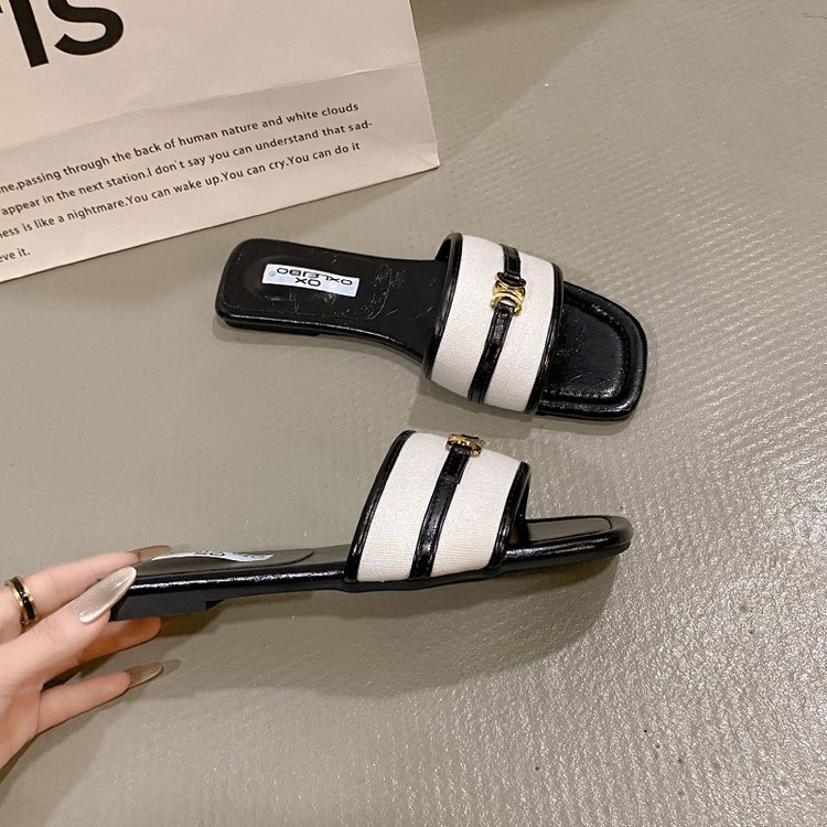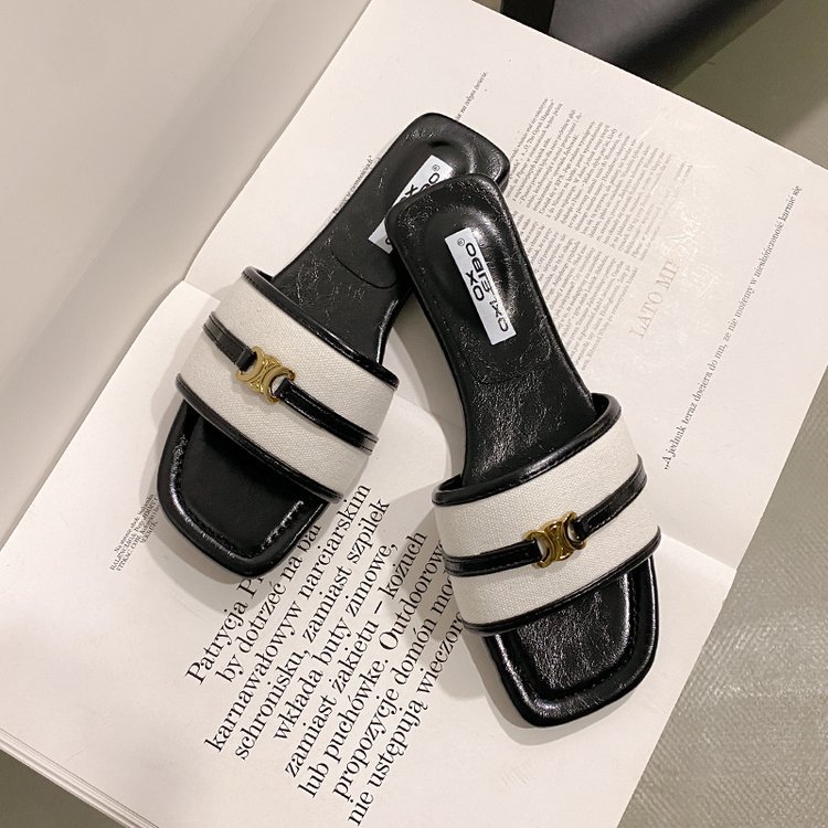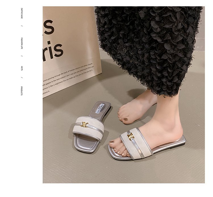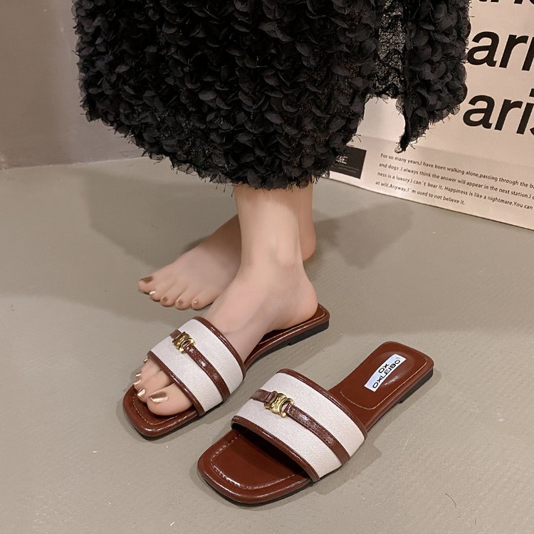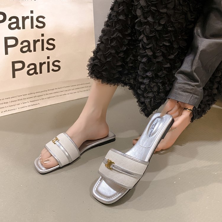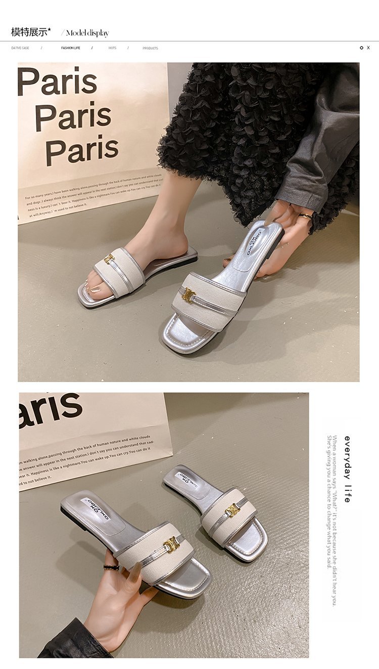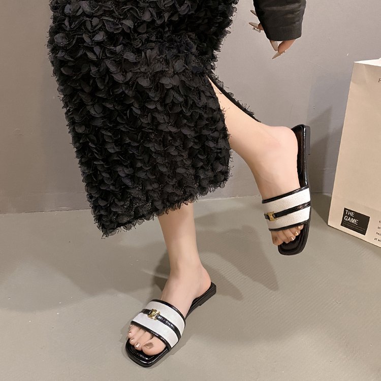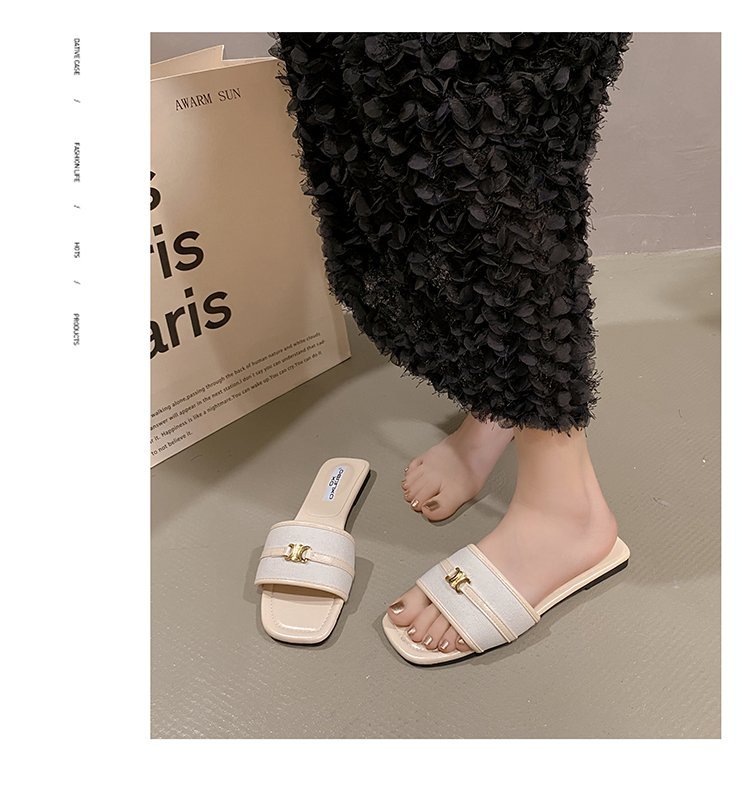 여성 슬라이드 슬리퍼 여름 새로운 야외 슬리퍼 스퀘어 헤드 경량 패션 비치 신발 작은 향기로운 스타일 인터넷 인기 패션스토어 가기
