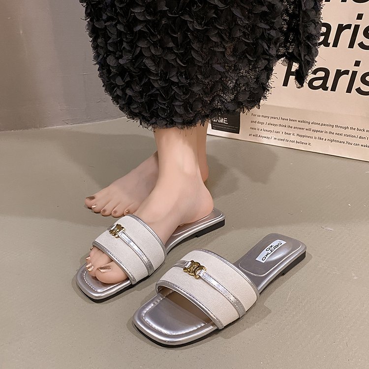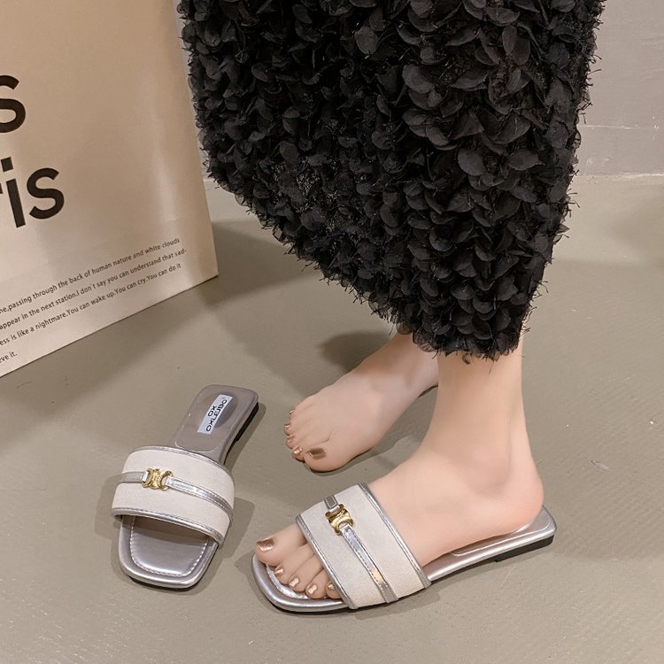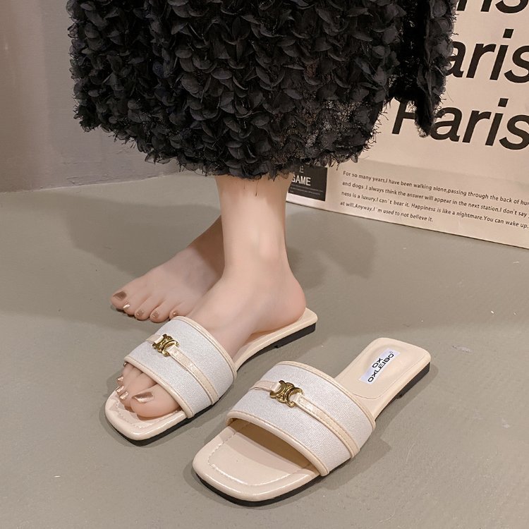 여성 슬라이드 슬리퍼 여름 새로운 야외 슬리퍼 스퀘어 헤드 경량 패션 비치 신발 작은 향기로운 스타일 인터넷 인기 패션