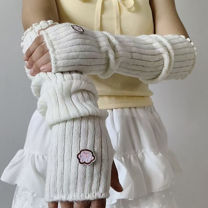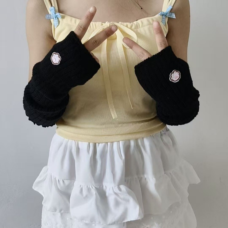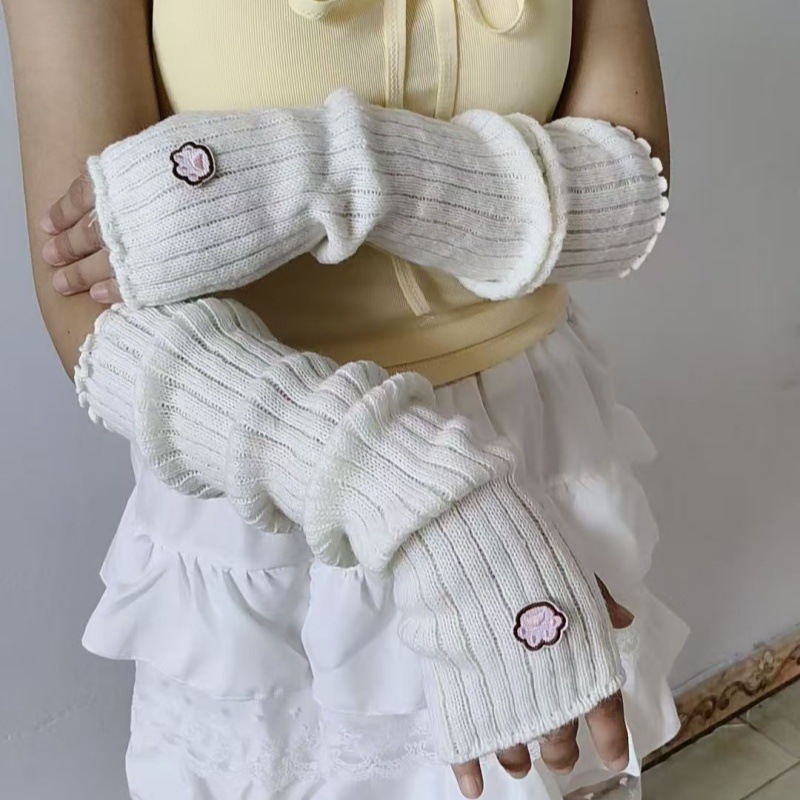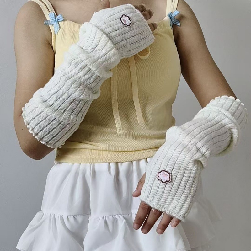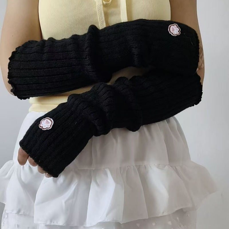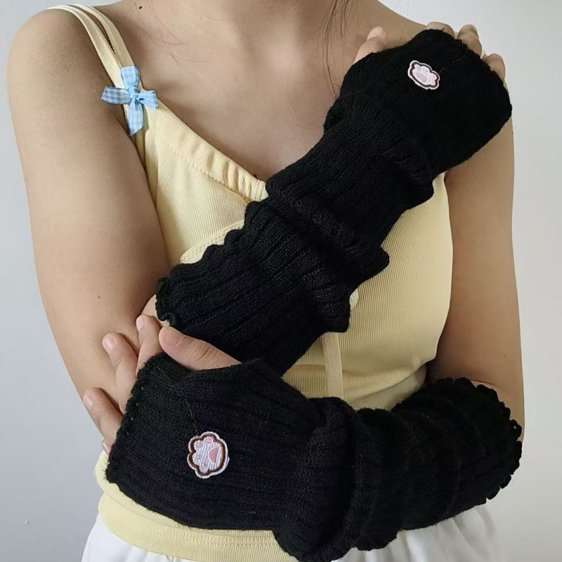 일본 귀여운 고양이 발톱 자수 장갑 유럽과 미국의 거리 멋진 소녀 팔 커버 양모 니트 따뜻한 슬리브 핸드 슬리브