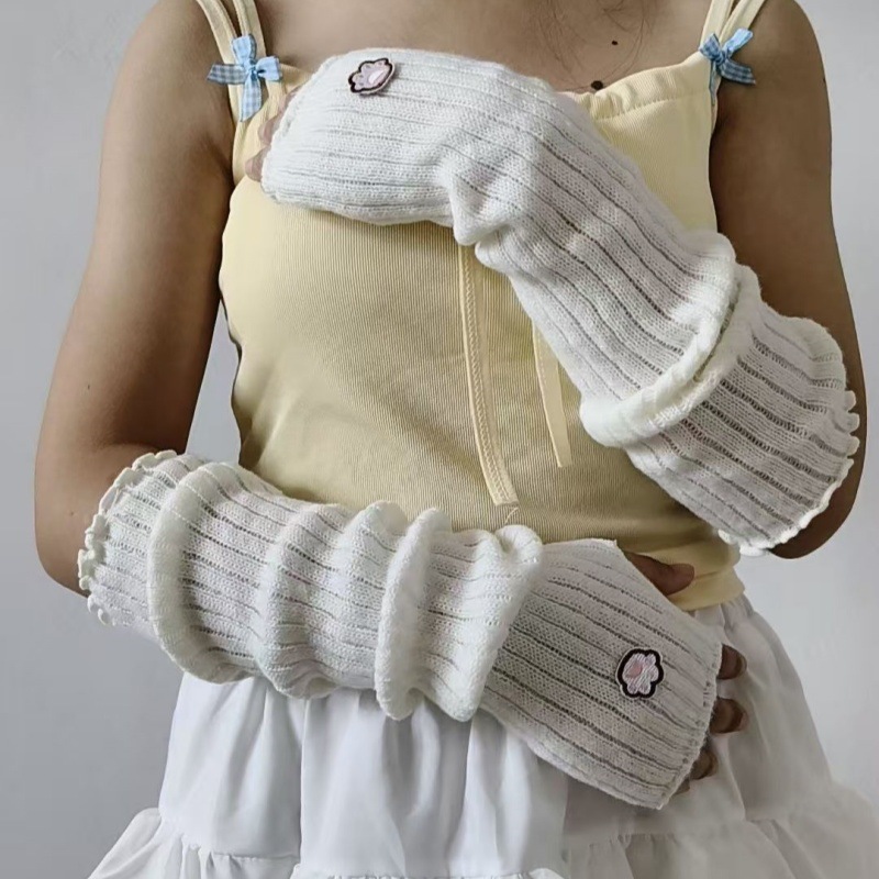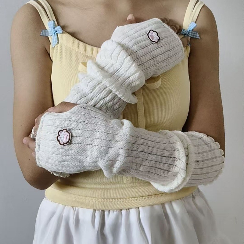 일본 귀여운 고양이 발톱 자수 장갑 유럽과 미국의 거리 멋진 소녀 팔 커버 양모 니트 따뜻한 슬리브 핸드 슬리브스토어 가기