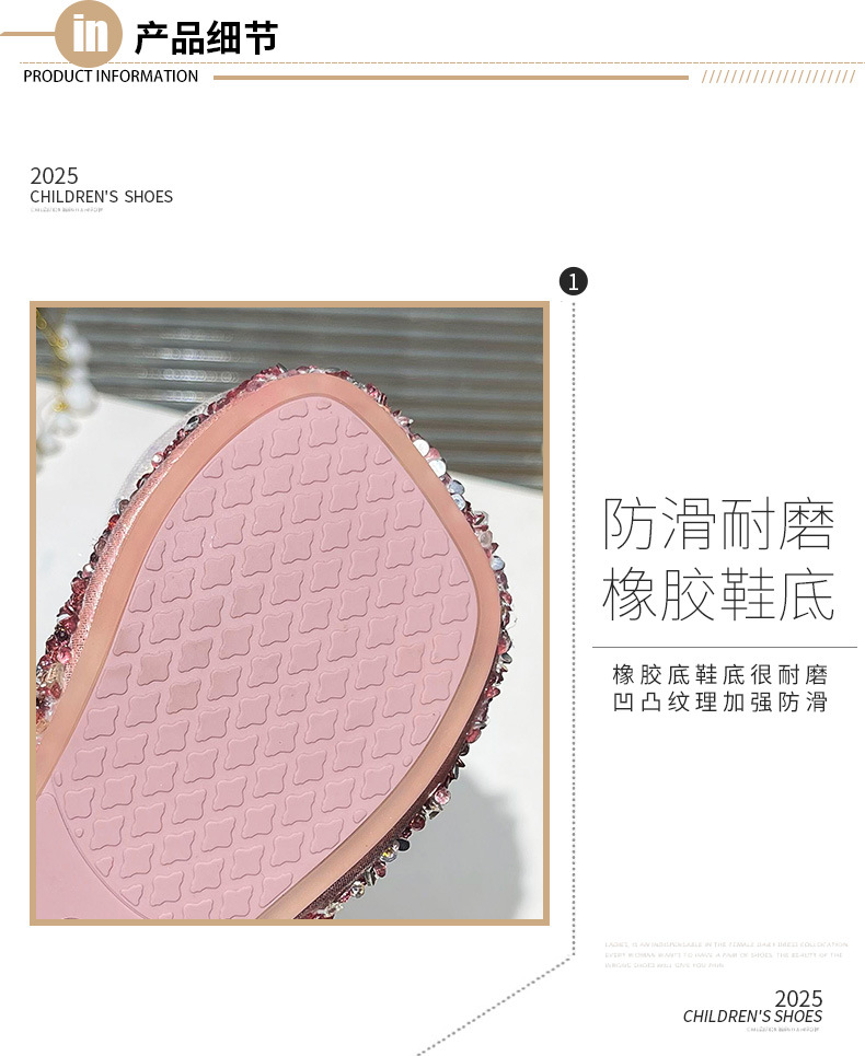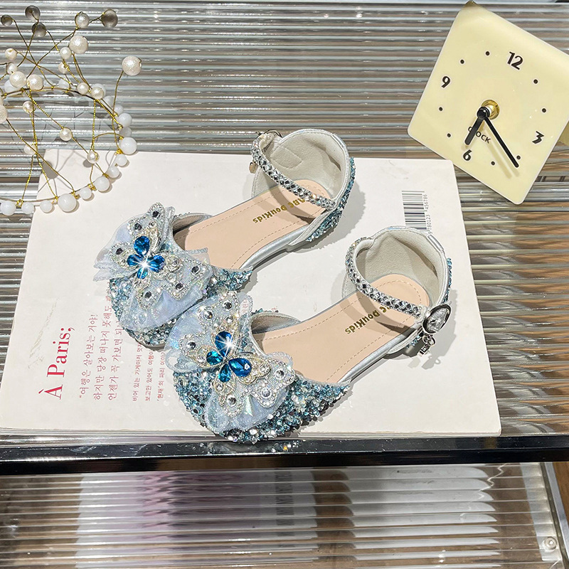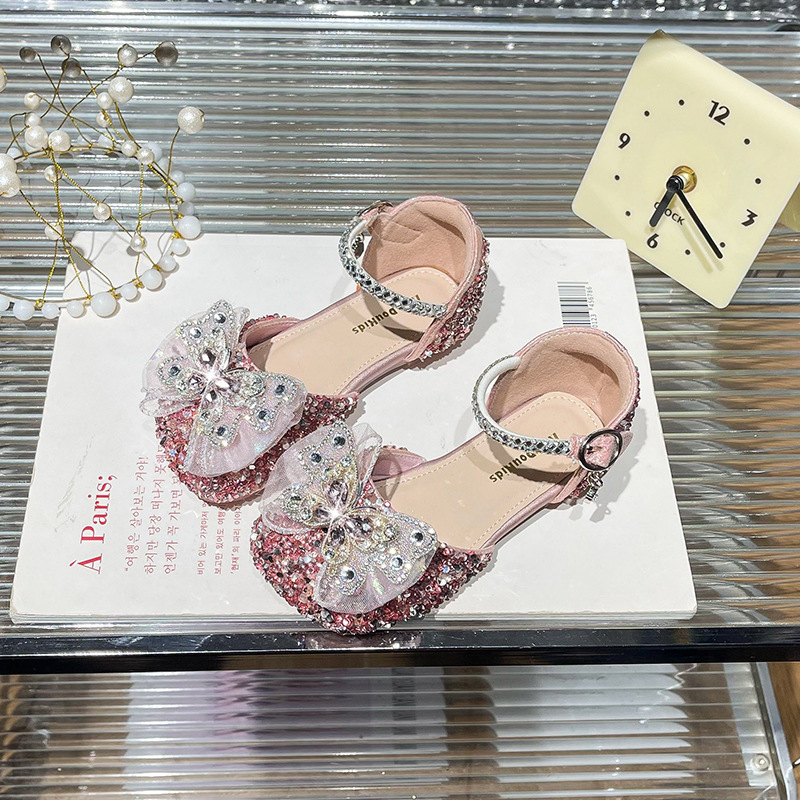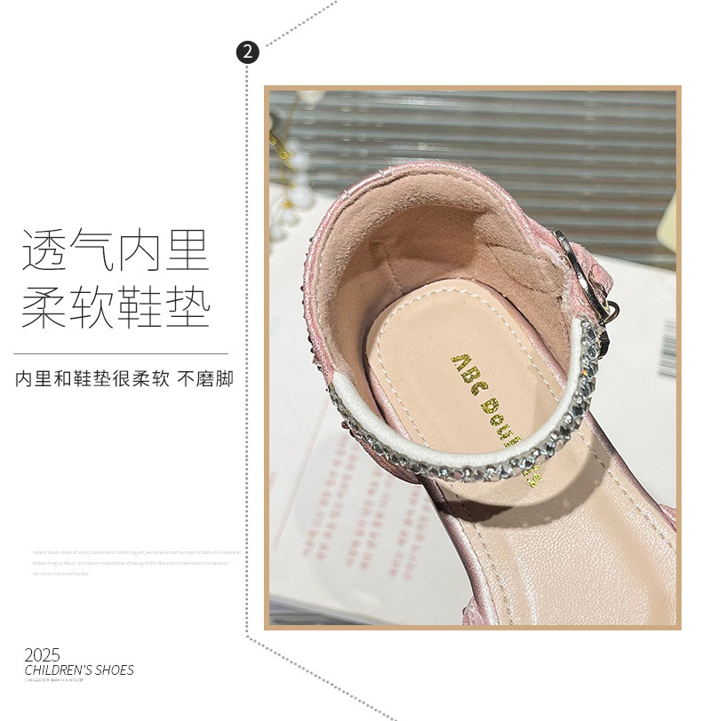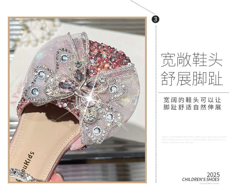 여자 크리스탈 샌들 2025 봄 새로운 어린이 한국식 라인스톤 공주 신발 아기 소녀 미끄럼 방지 할로우 샌들