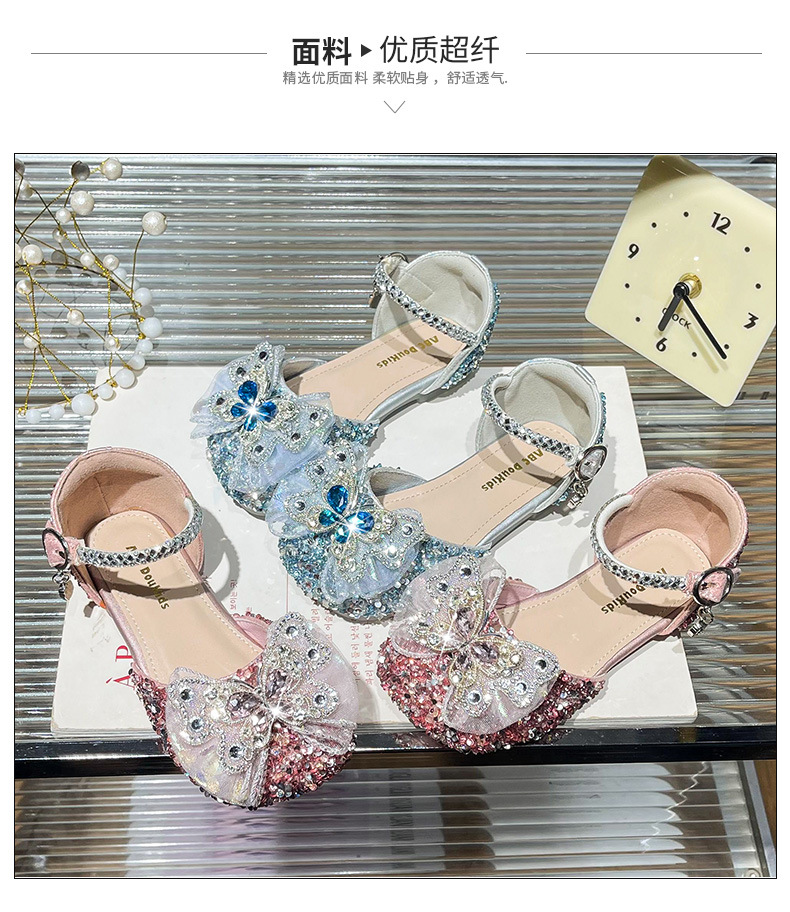 여자 크리스탈 샌들 2025 봄 새로운 어린이 한국식 라인스톤 공주 신발 아기 소녀 미끄럼 방지 할로우 샌들스토어 가기