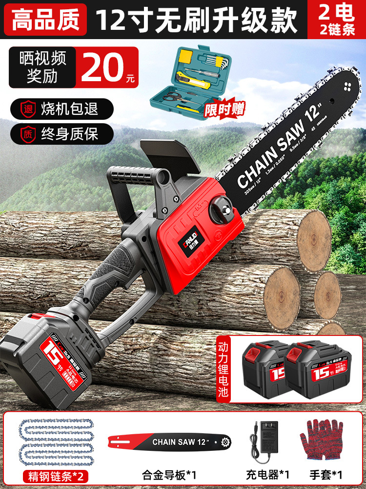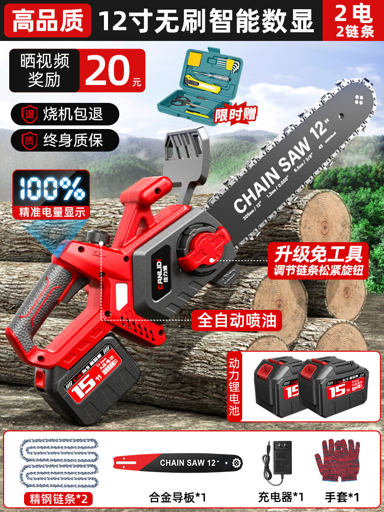 • 12inch 브러시리스 지능형 디지털 디스플레이 [15셀 배터리 수명 킹] 배터리 2개 및 체인 2개