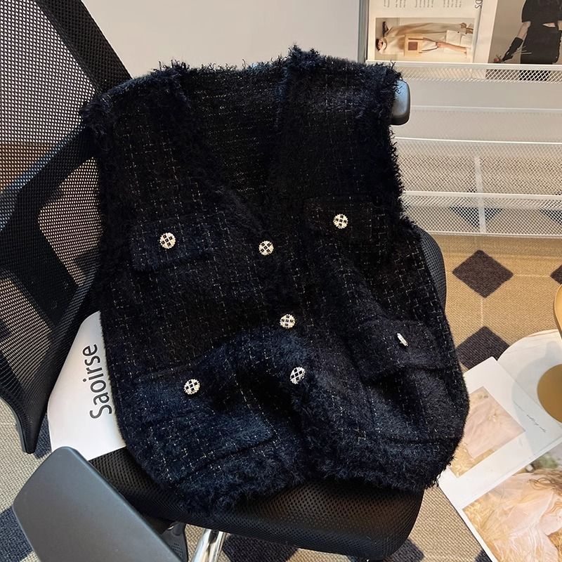 2025 봄, 가을 여성 조끼 새로운 스타일 작은 향기 조끼 조끼 다목적 짠 조끼 재킷 멋진 탑스토어 가기