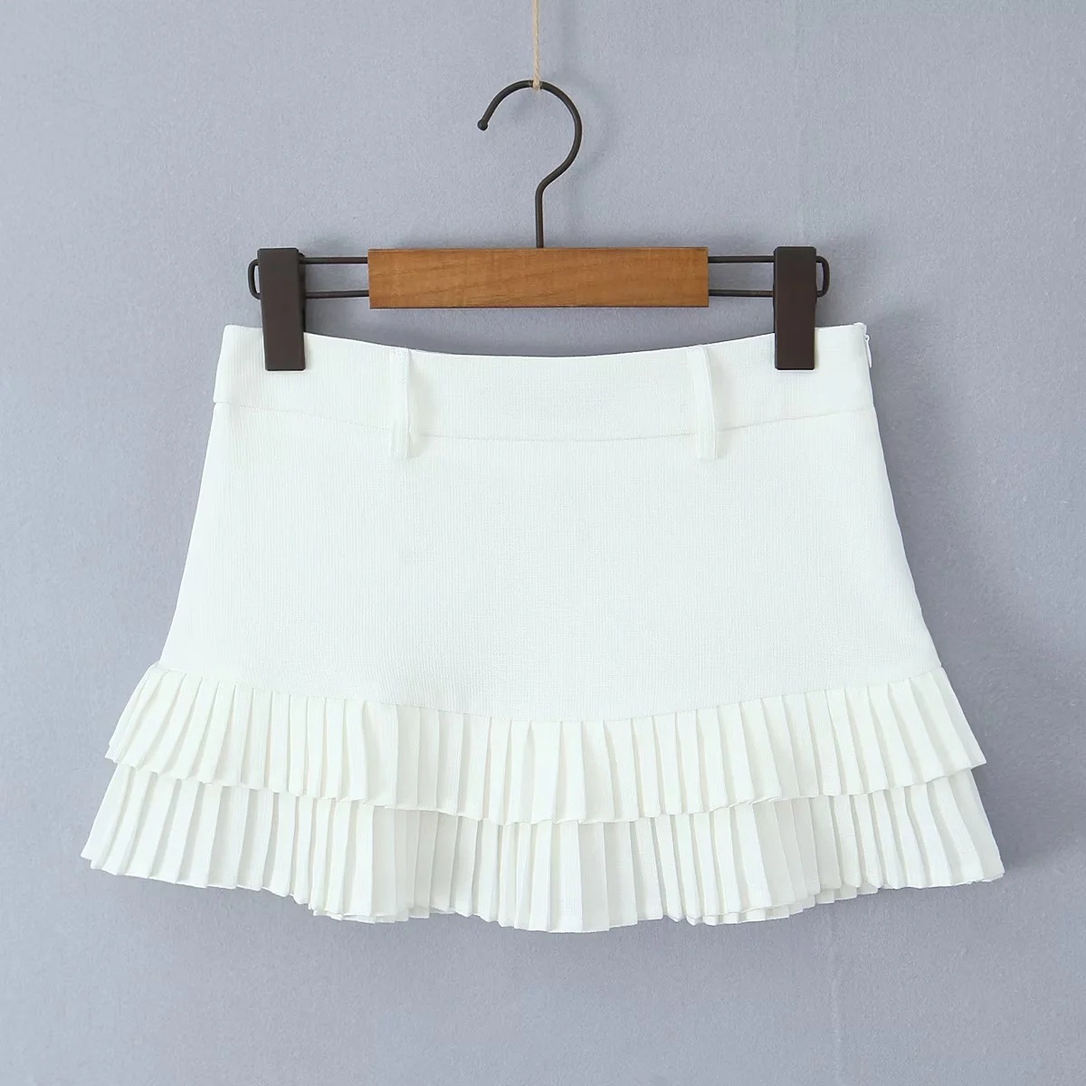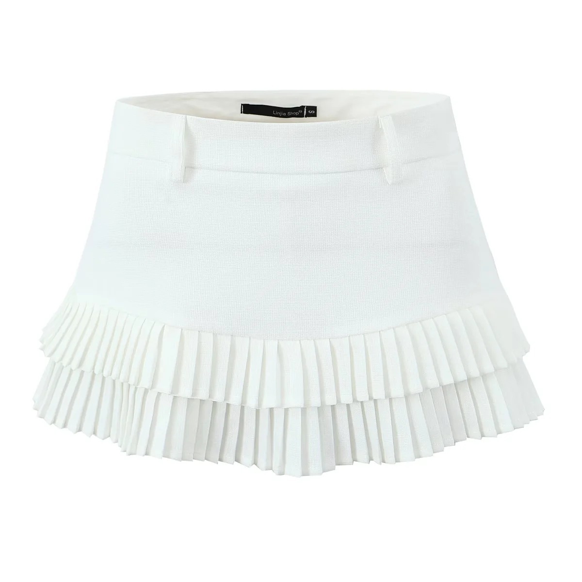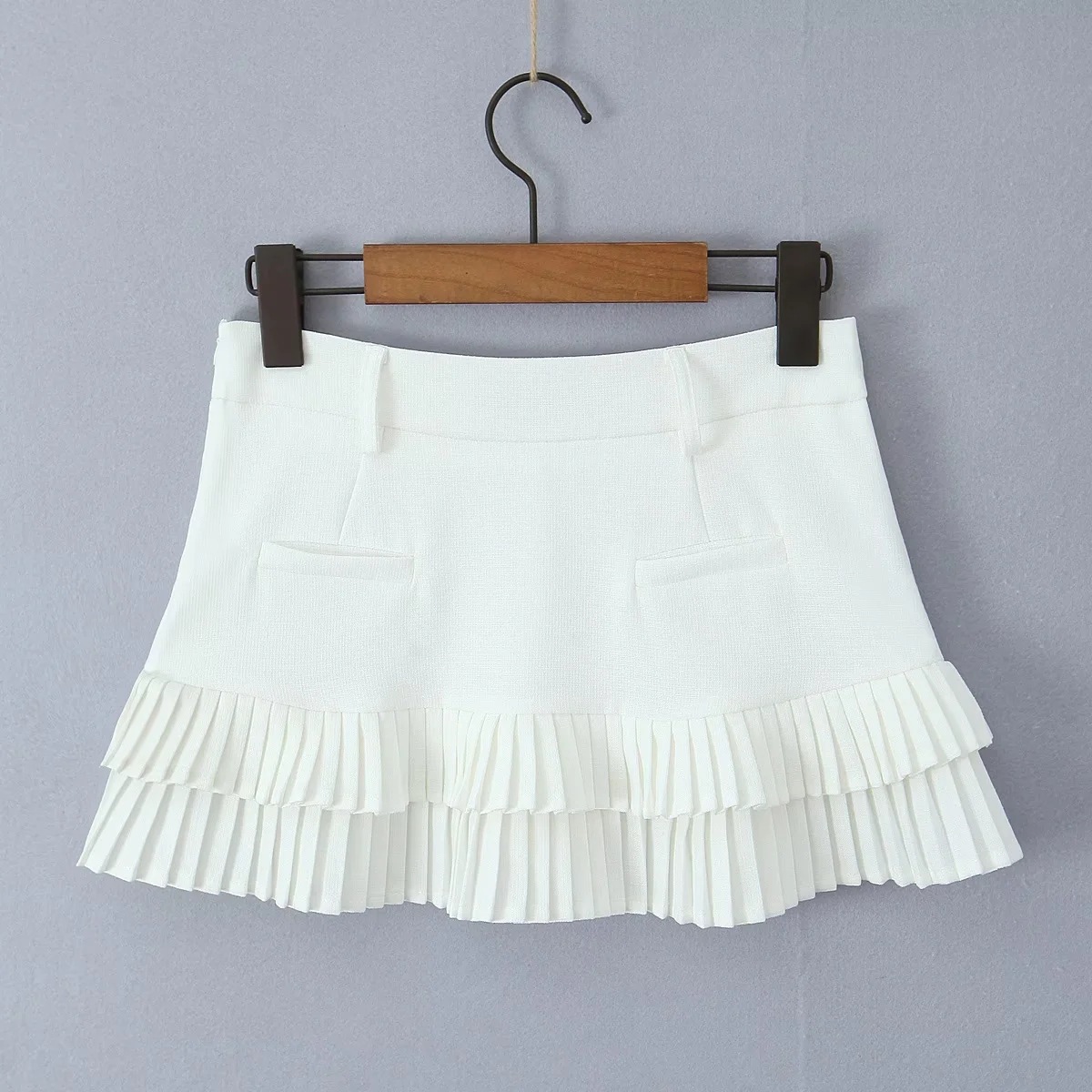대외 무역 주문! 봄과 여름 핫 소녀 섹시 로우 웨이스트 플리츠 스커트 여성 노출 방지 짧은 스커트 아메리칸 스타일 레이어드 울트라 쇼트 스커트