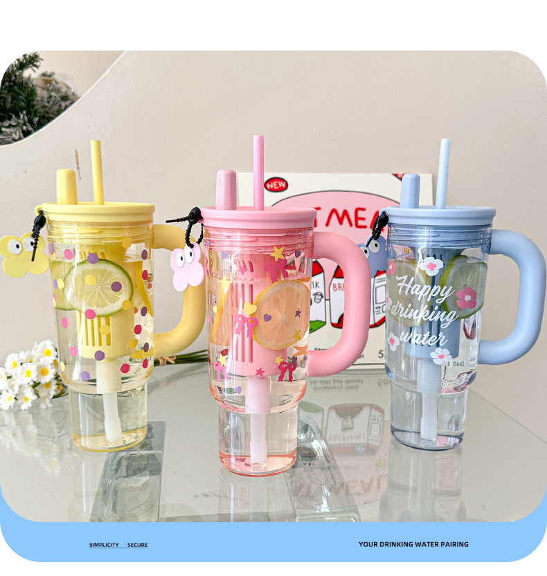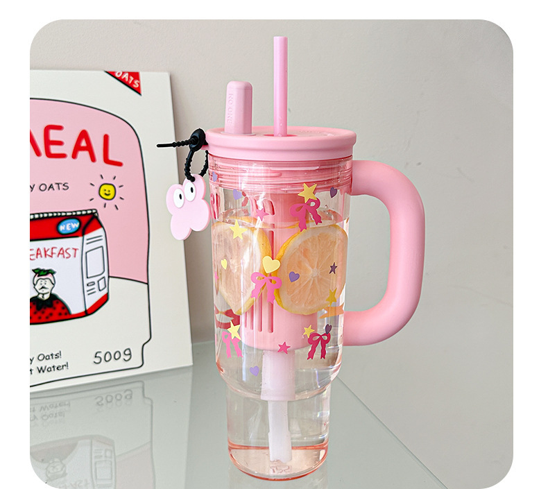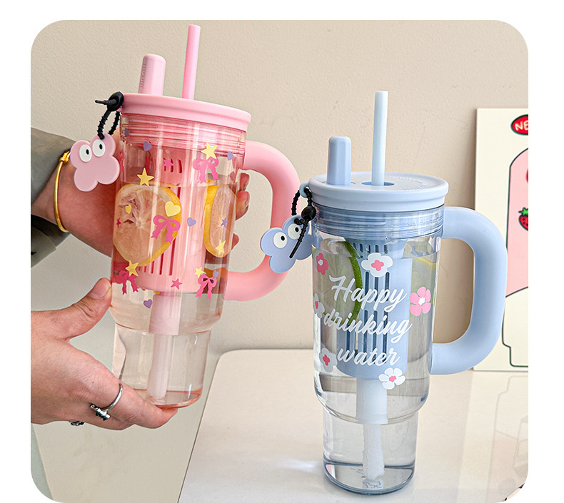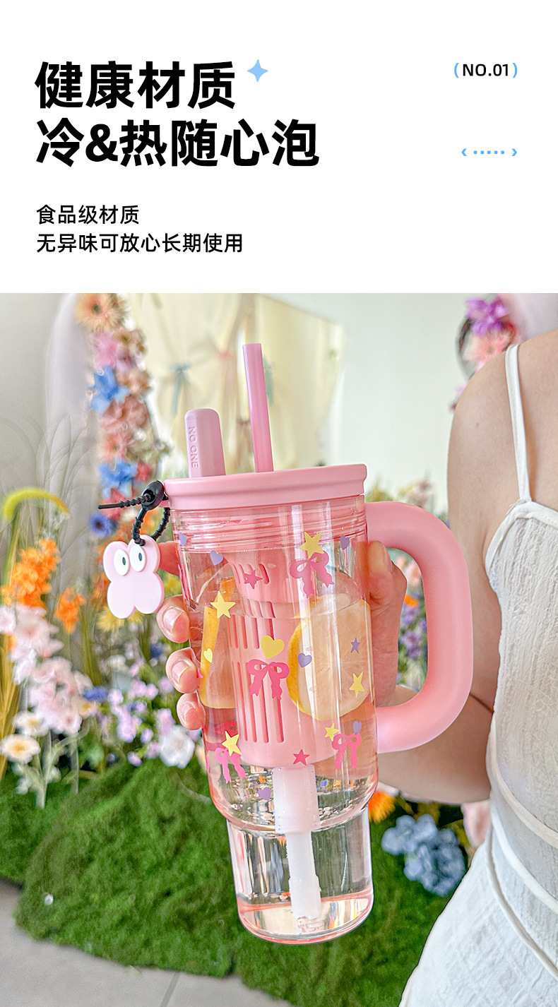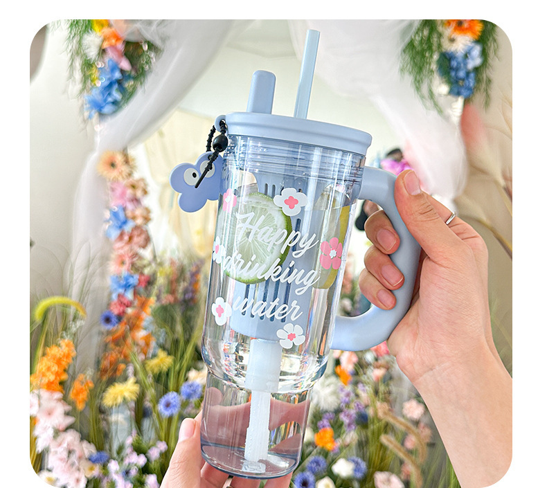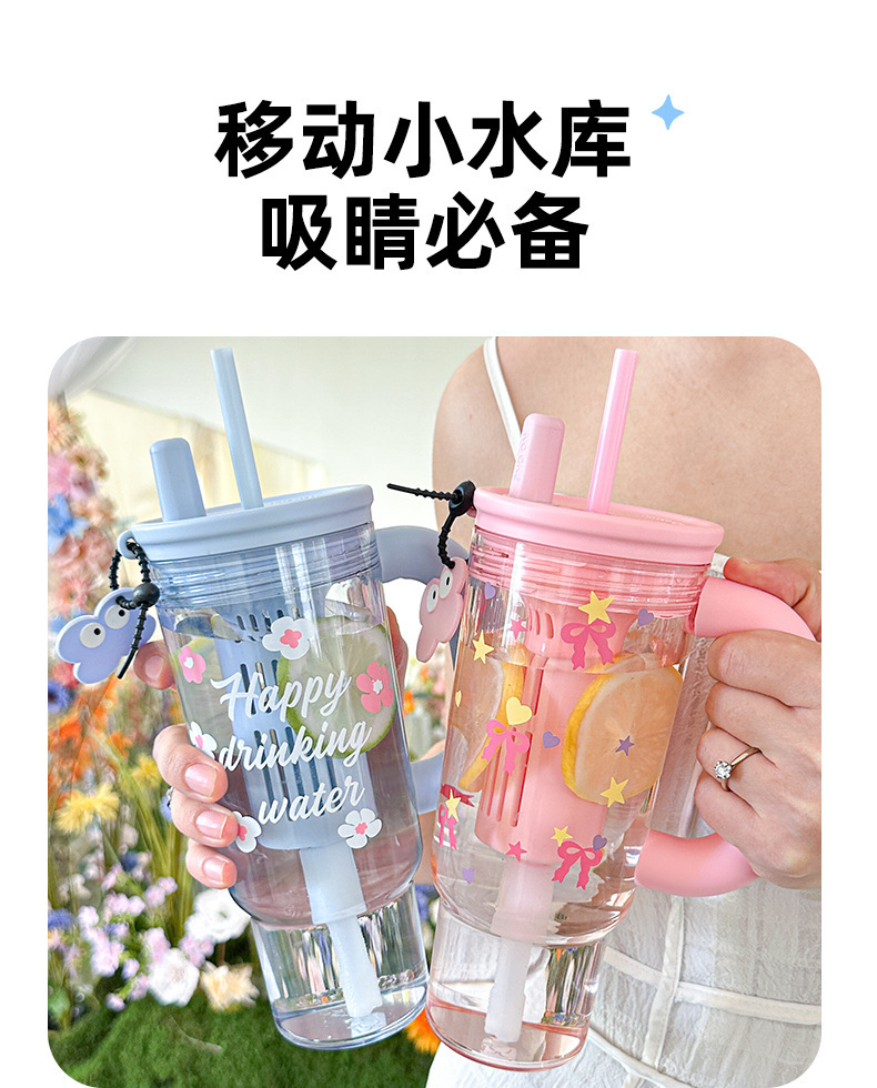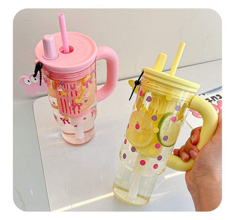 2025 새로운 얼음 깡패 컵 여름 대용량 핸들 버블 컵 학생 밀짚 컵 여성의 높은 색상 가치 플라스틱 컵