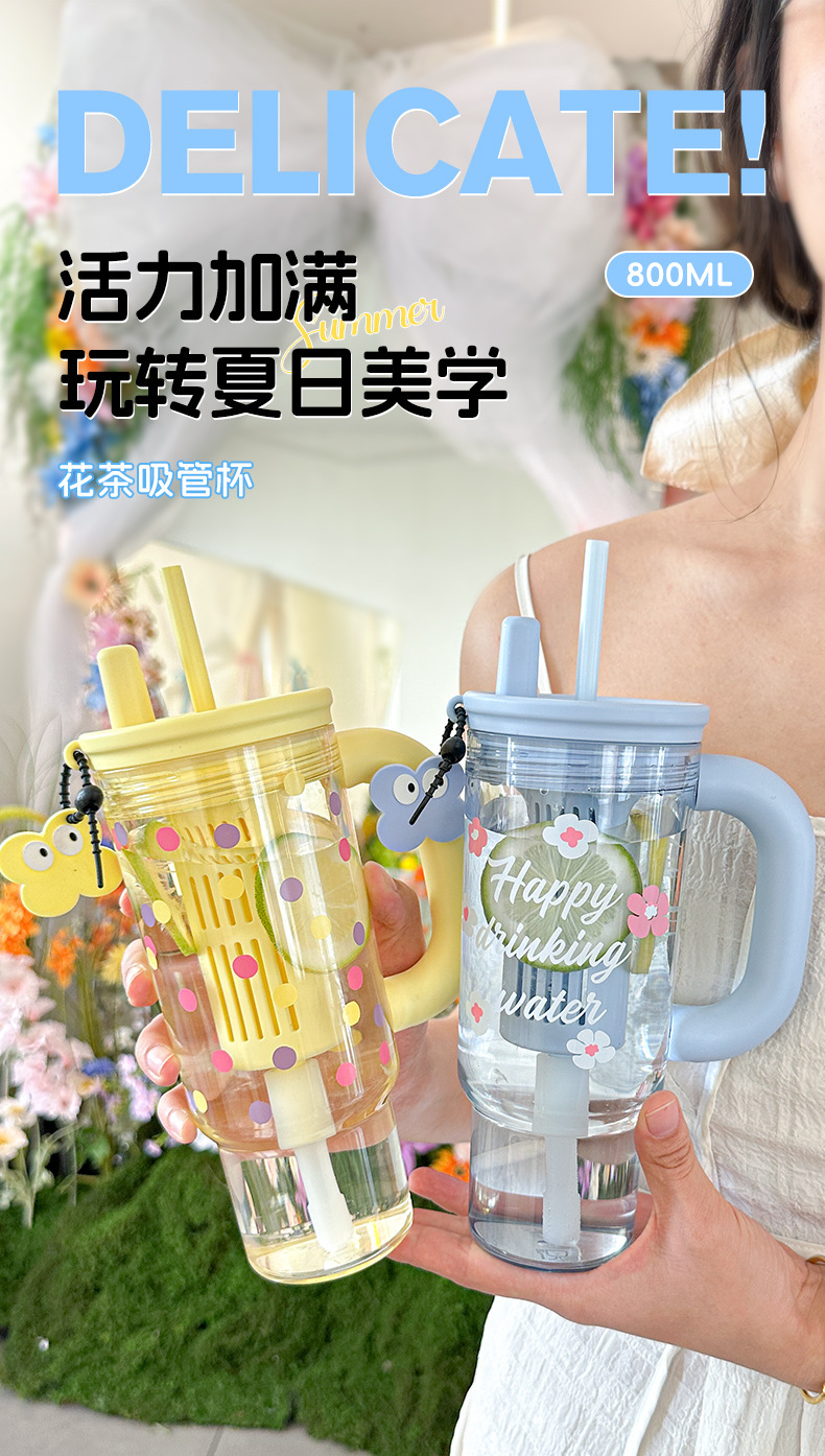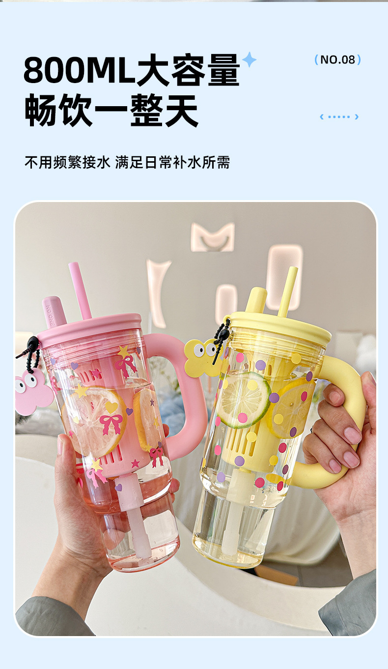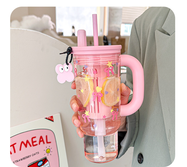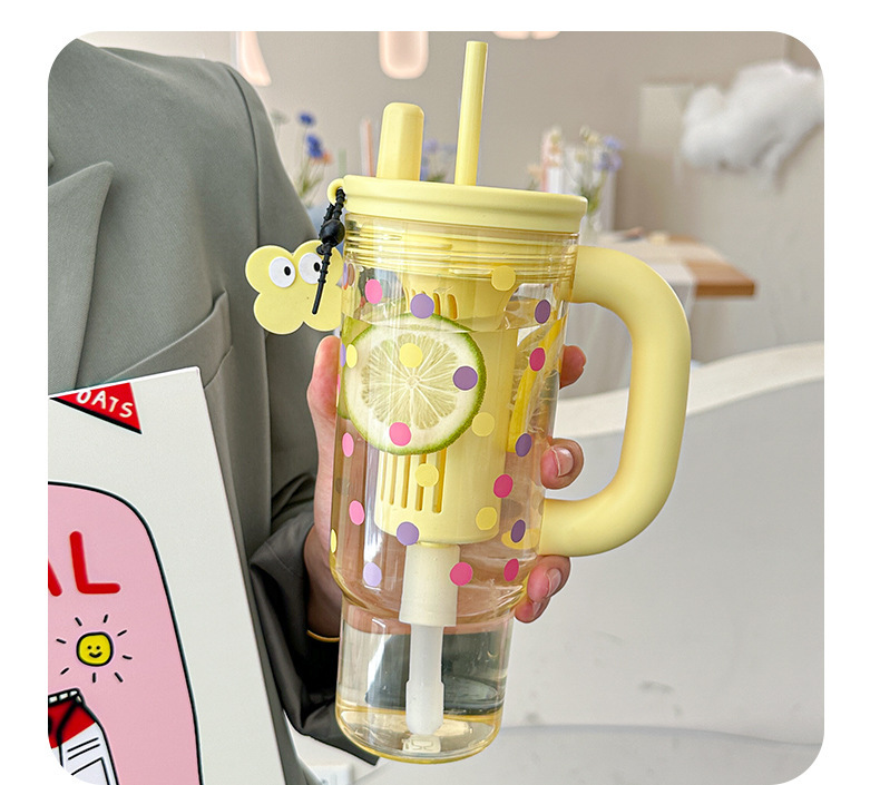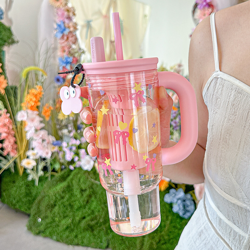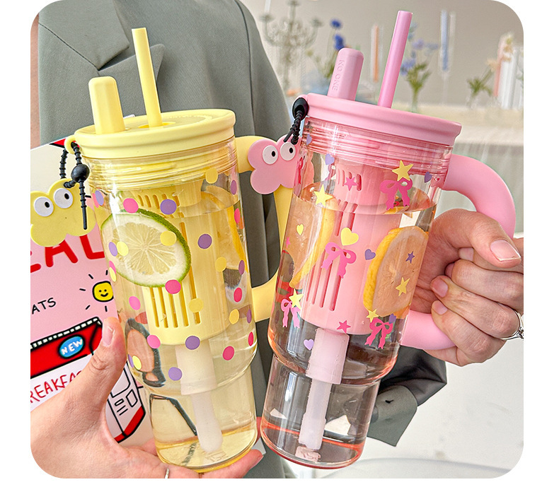 2025 새로운 얼음 깡패 컵 여름 대용량 핸들 버블 컵 학생 밀짚 컵 여성의 높은 색상 가치 플라스틱 컵