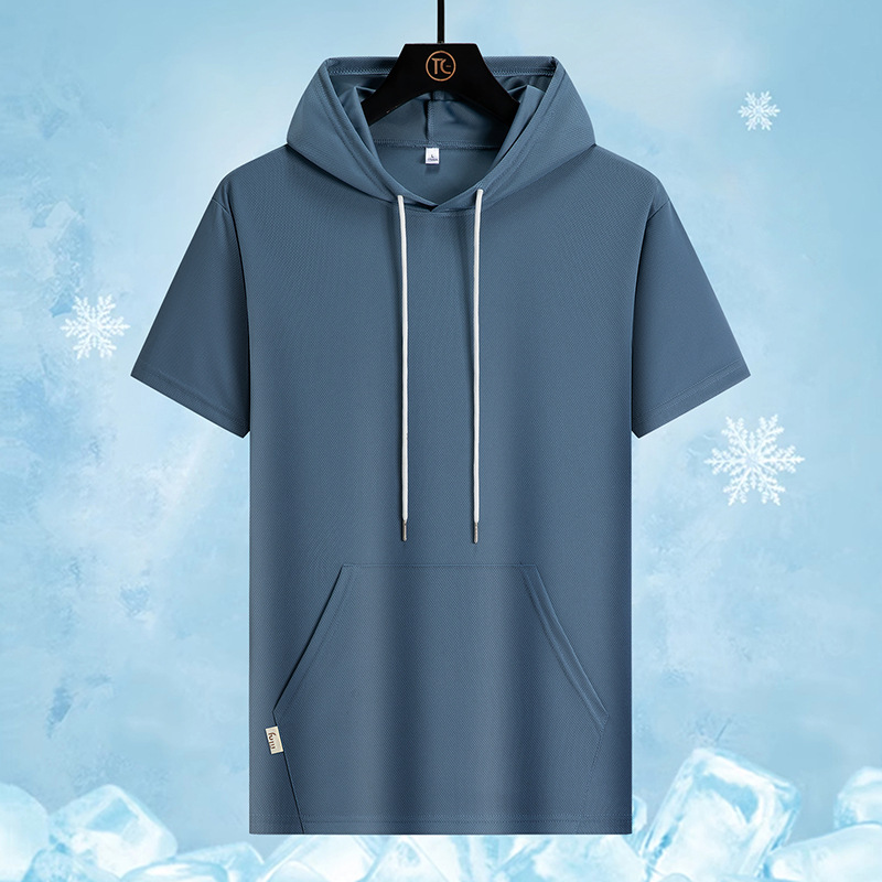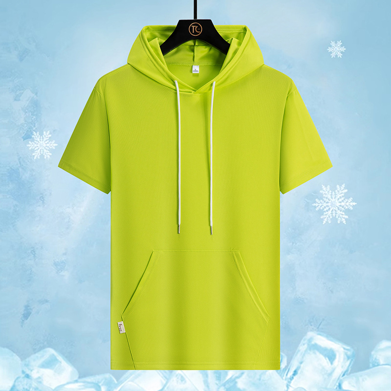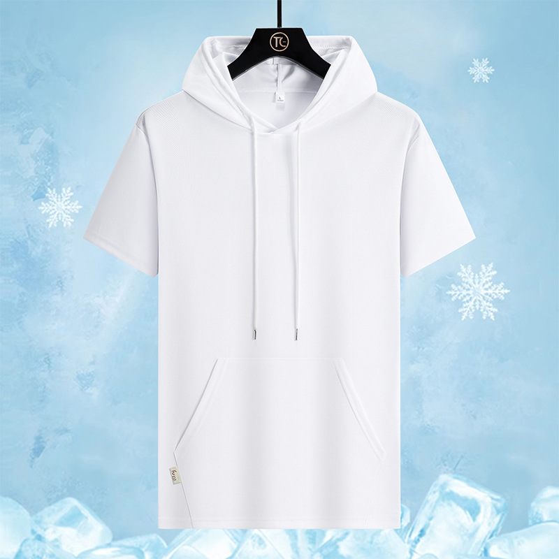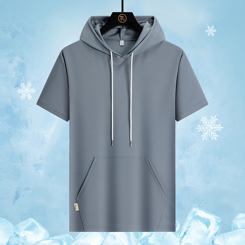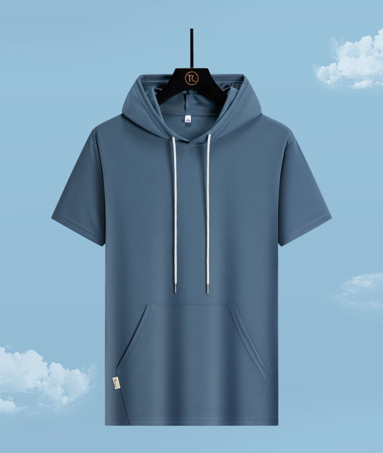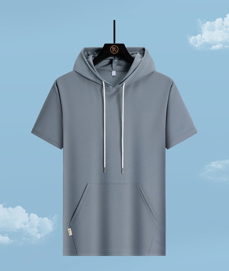 새로운 여름 커플 반팔 후드 티셔츠 플러스 사이즈 남성 스포츠 루즈 트렌디 청소년 얇은 탑스토어 가기