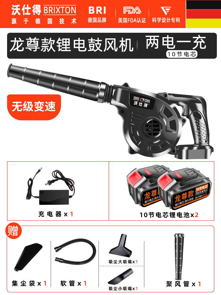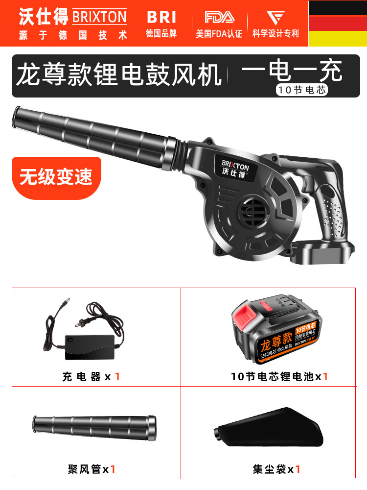 • [무단 변속] Longzun 리튬 배터리 송풍기(10셀) 배터리 1개 + 무료 청소 선물 가방
