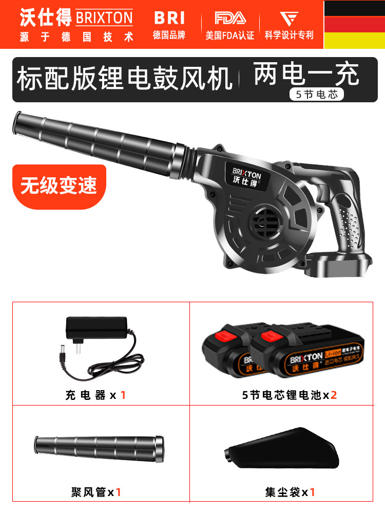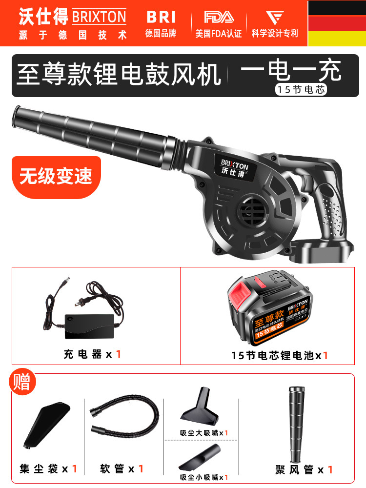 • [무단 변속] 최고급 리튬 배터리 송풍기(15셀) 배터리 1개 + 무료 청소 선물 가방
