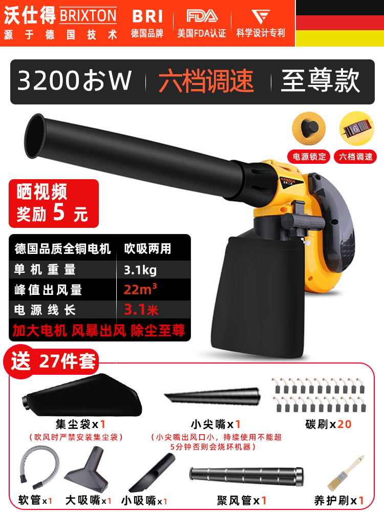 • [고급 오렌지] 2300W 6단 속도 조절(연장 3.1m선)