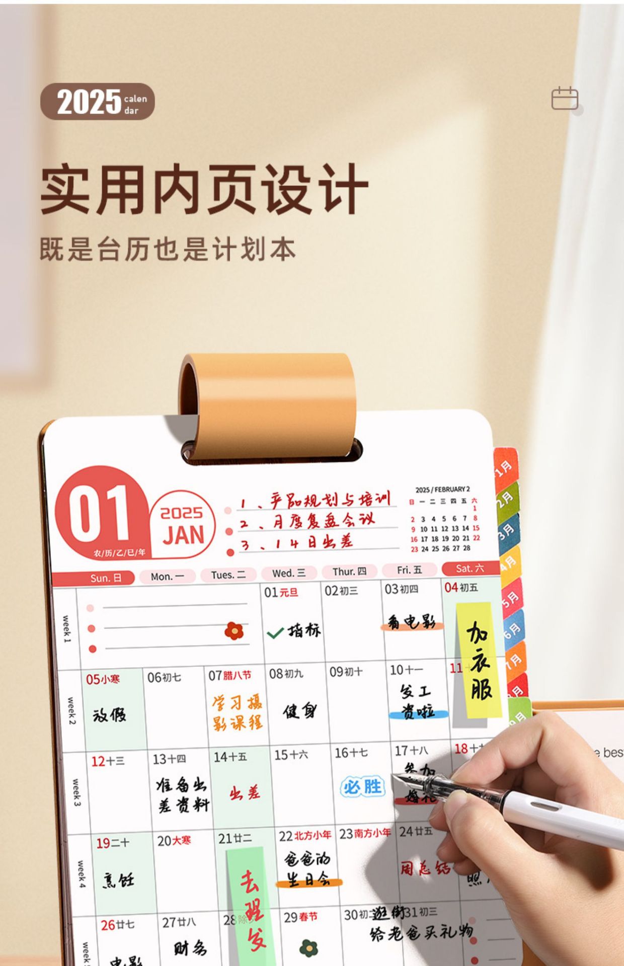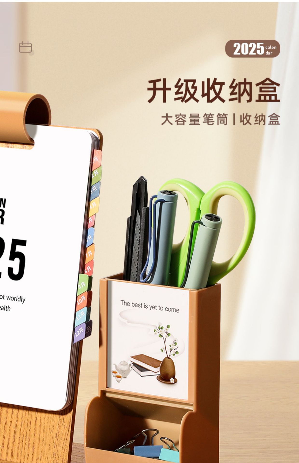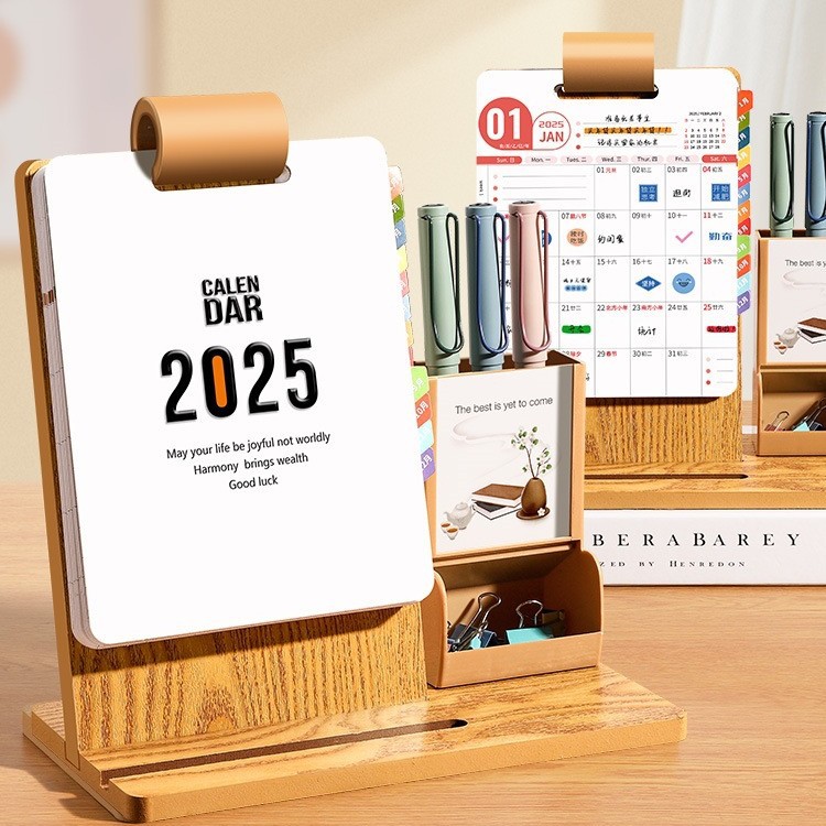 책상 달력 2025 새로운 데스크탑 장식품 뱀의 해 크리 에이 티브 나무 펜 홀더 비즈니스 사무실 작업