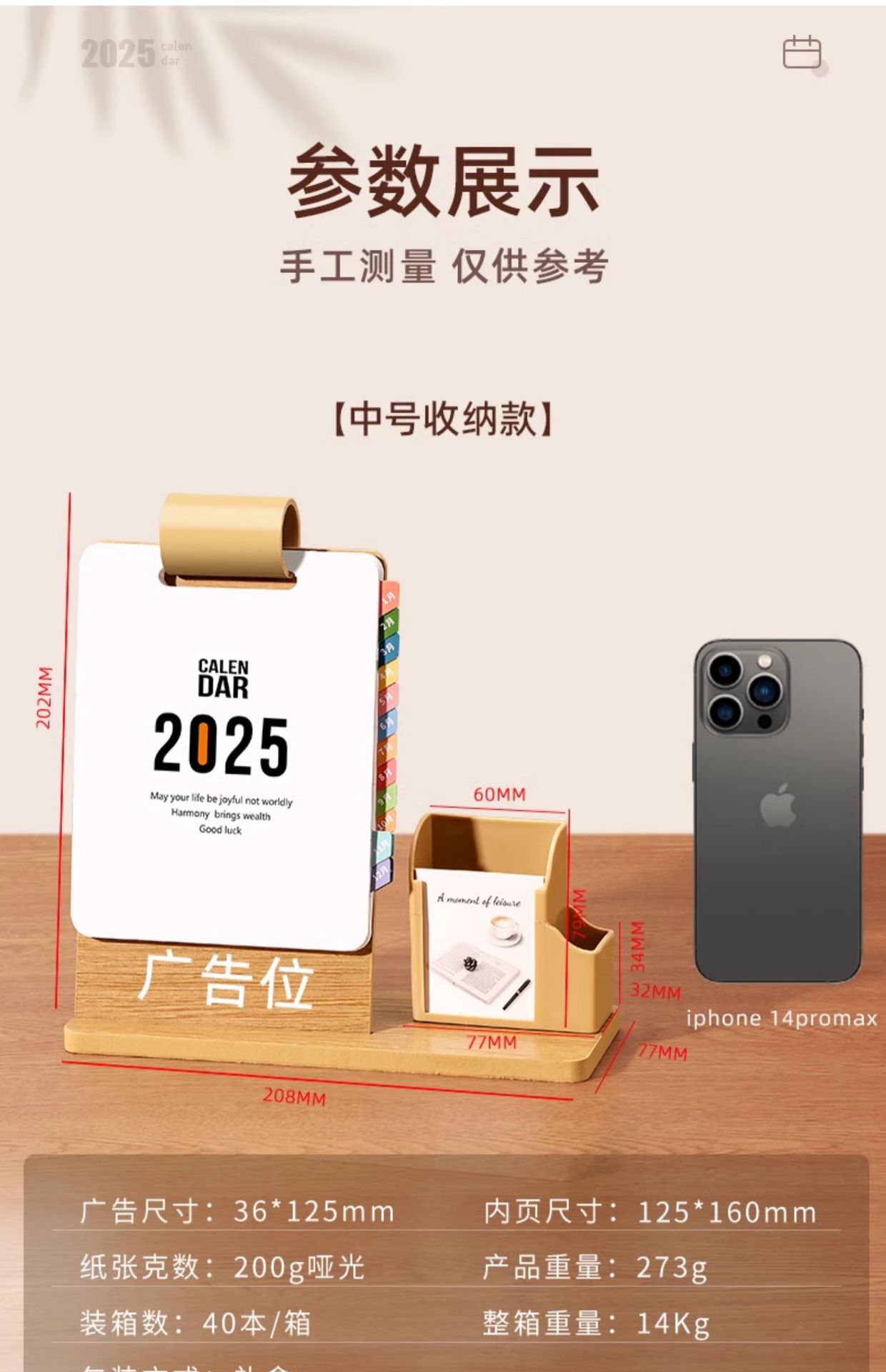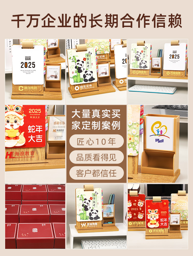 책상 달력 2025 새로운 데스크탑 장식품 뱀의 해 크리 에이 티브 나무 펜 홀더 비즈니스 사무실 작업스토어 가기