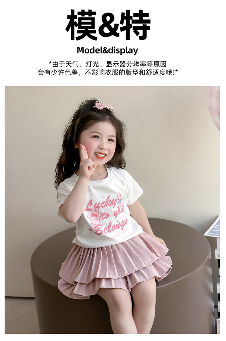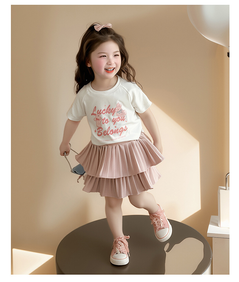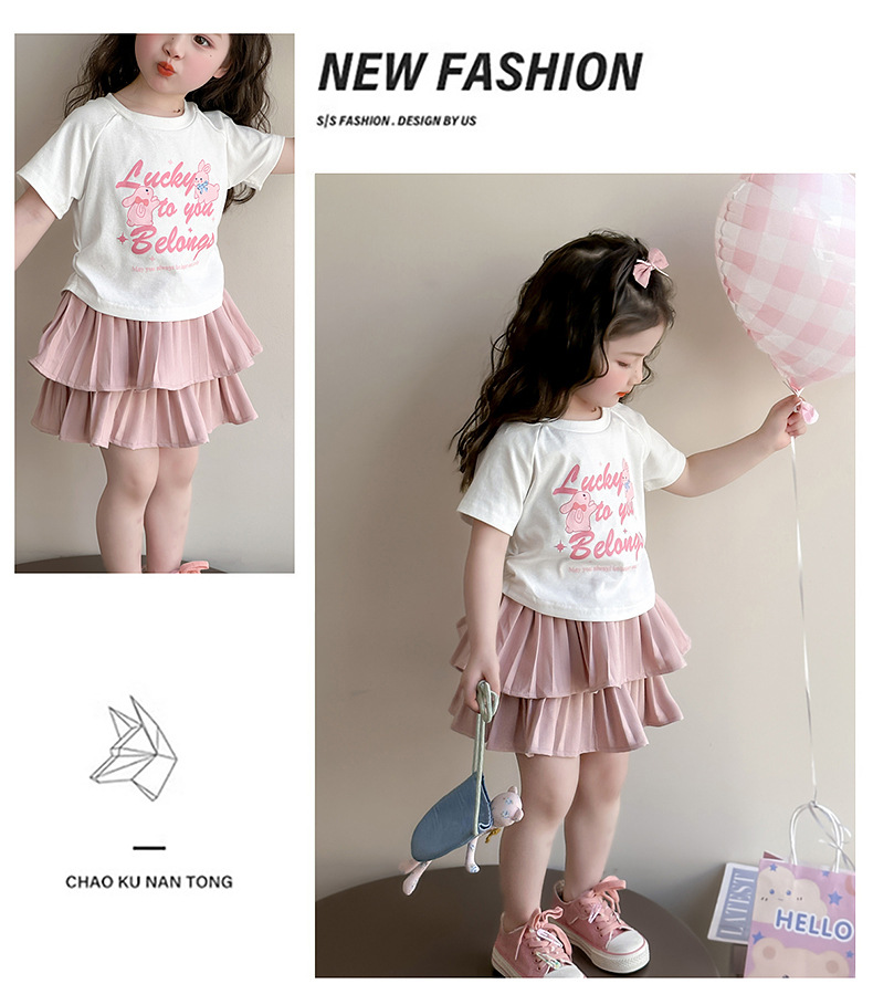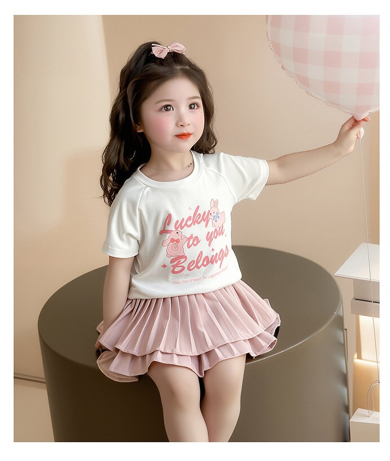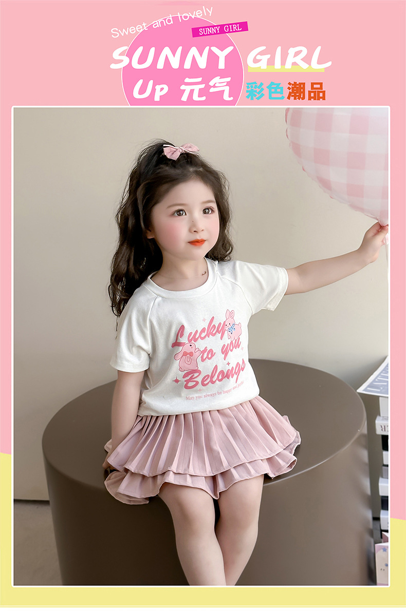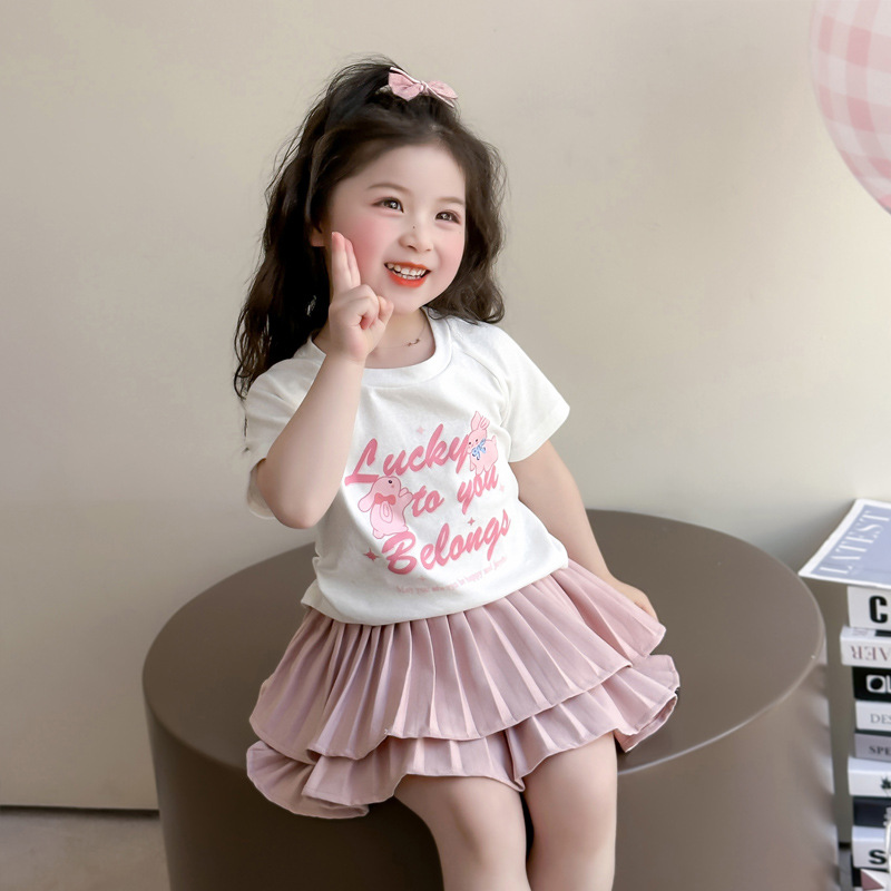 【48시간 배송】아동용 반팔 플리츠 스커트 세트 여름 신상 여름옷 아기 티셔츠 여자아이 아기 세트