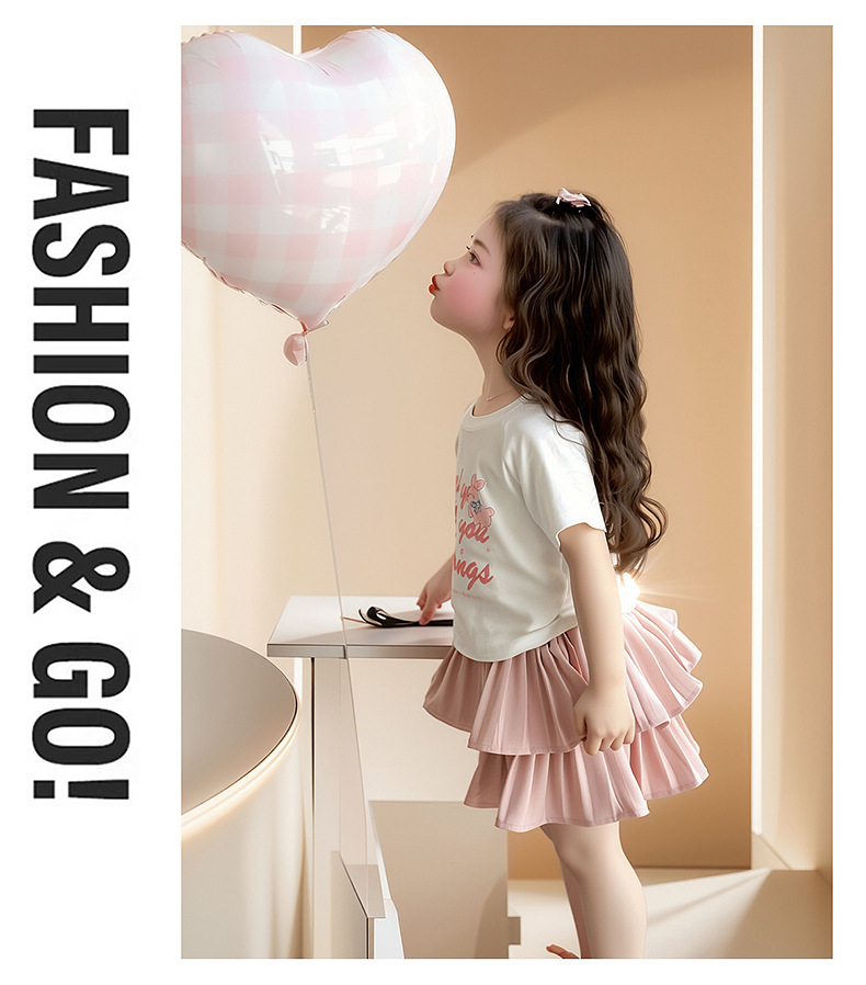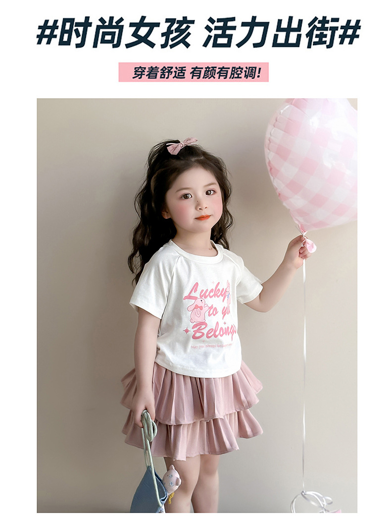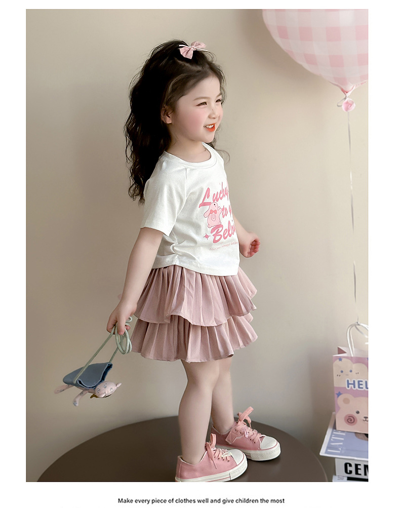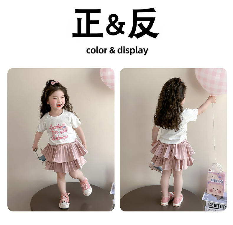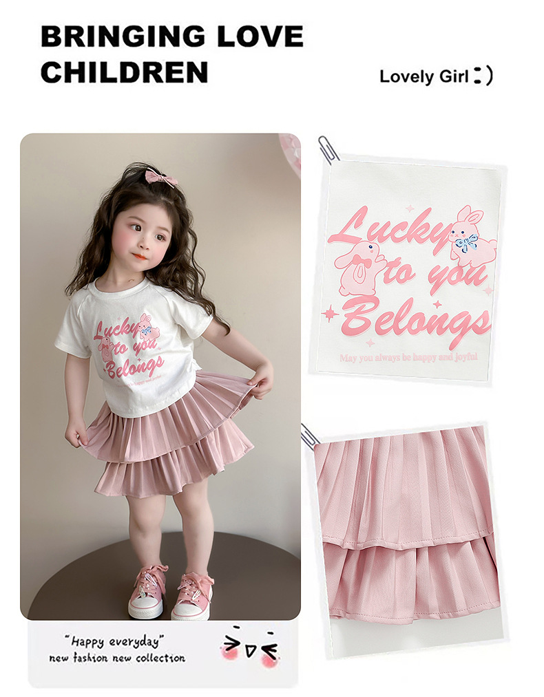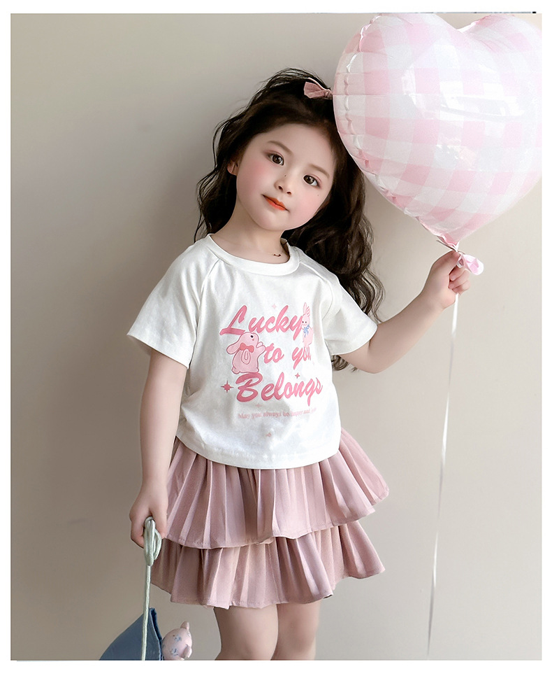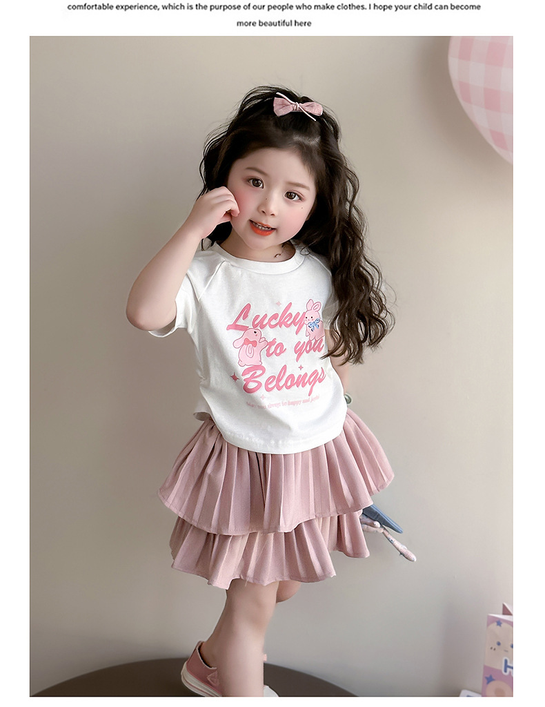 【48시간 배송】아동용 반팔 플리츠 스커트 세트 여름 신상 여름옷 아기 티셔츠 여자아이 아기 세트