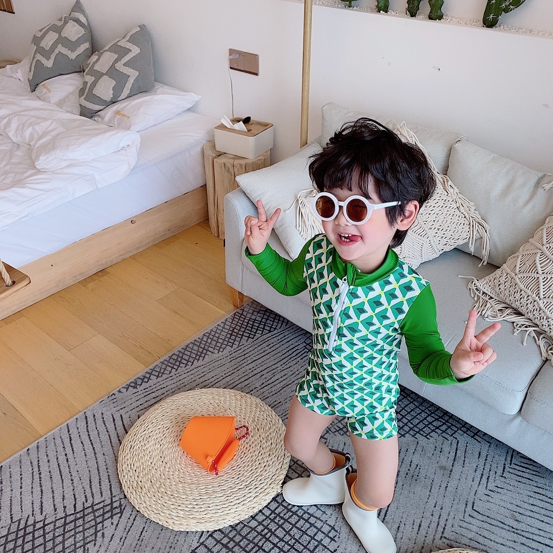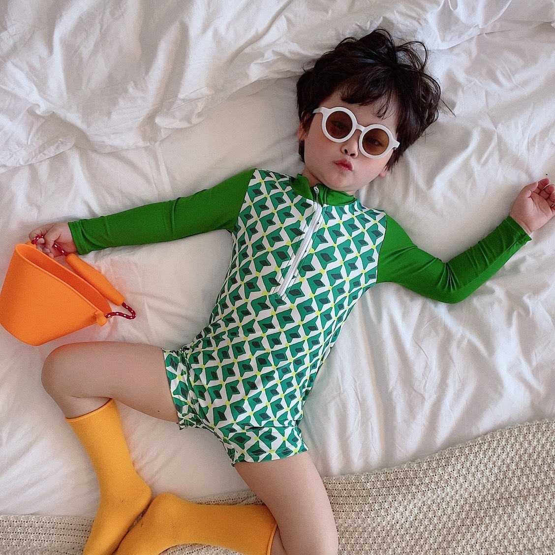 한국 한국 스타일 아동 수영복 소년 원피스 소년 아기 중소형 어린이 긴팔 자외선 차단 서핑 슈트 온천스토어 가기