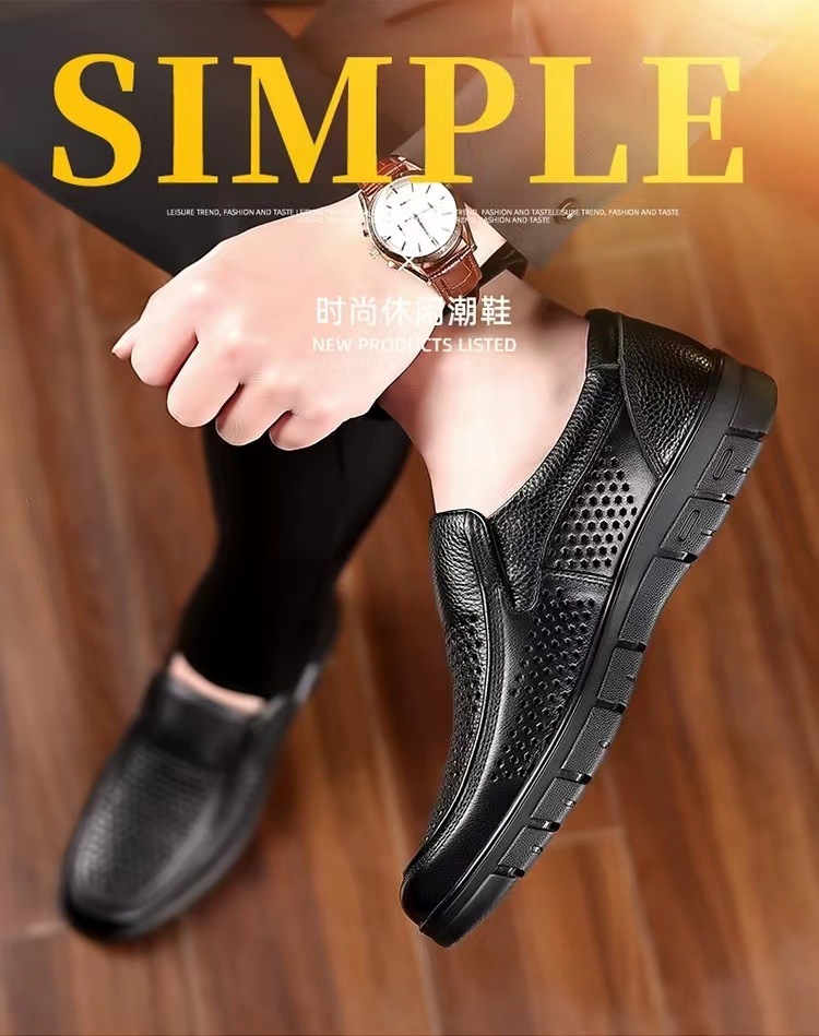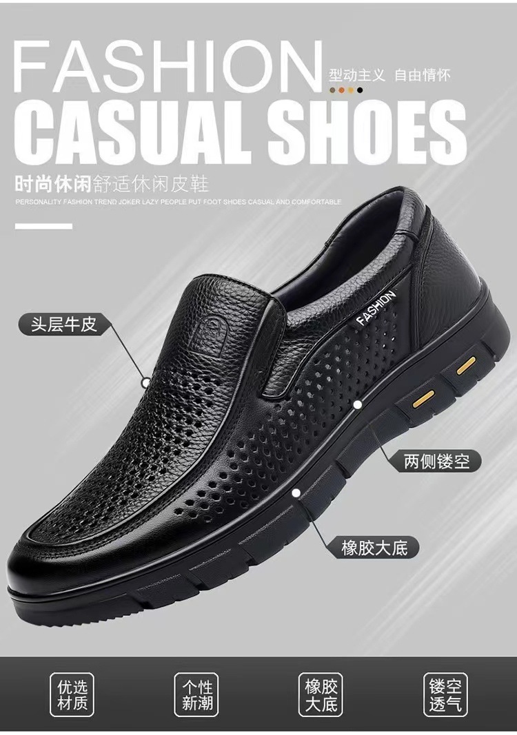 가죽 신발 남성 여름 샌들 중공 통기성 캐주얼 슈즈 비즈니스 부드러운 밑창 정품 가죽 카우 히데 홀 아빠 미끄럼 방지