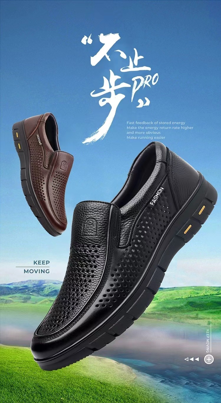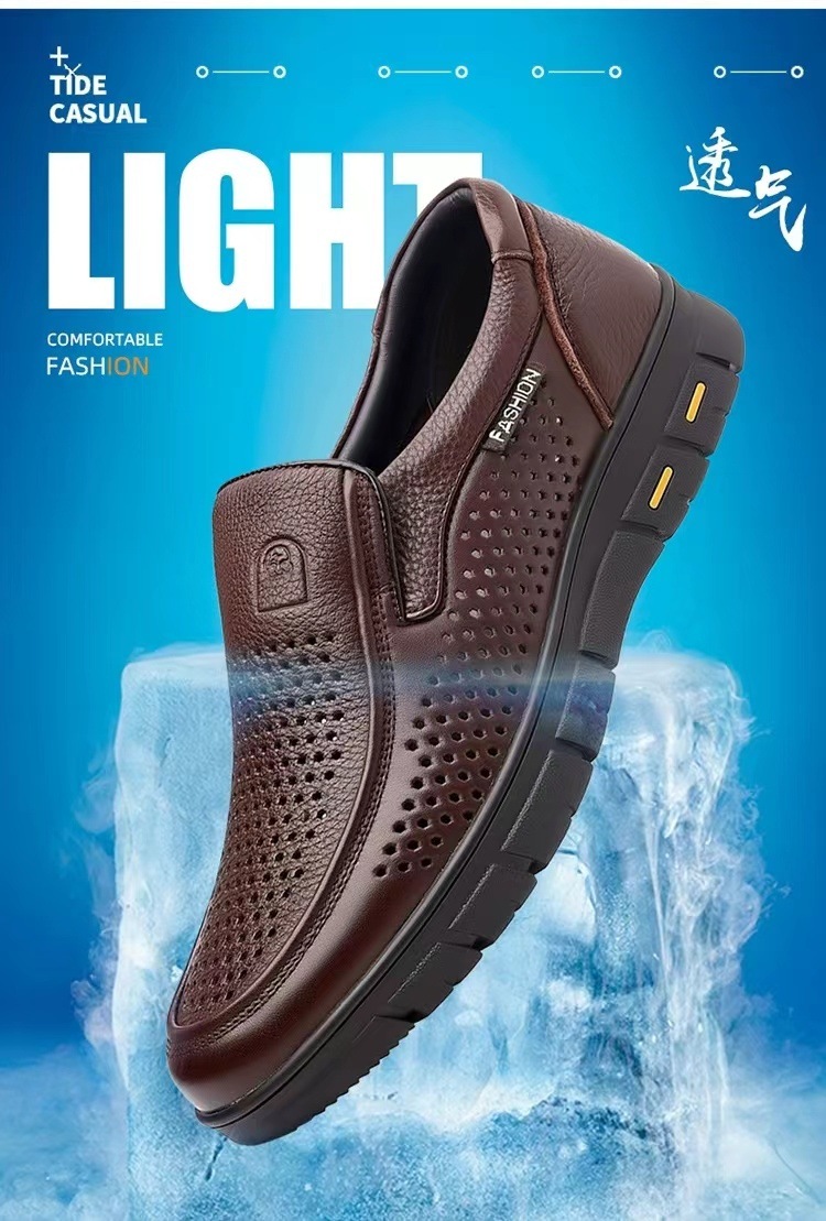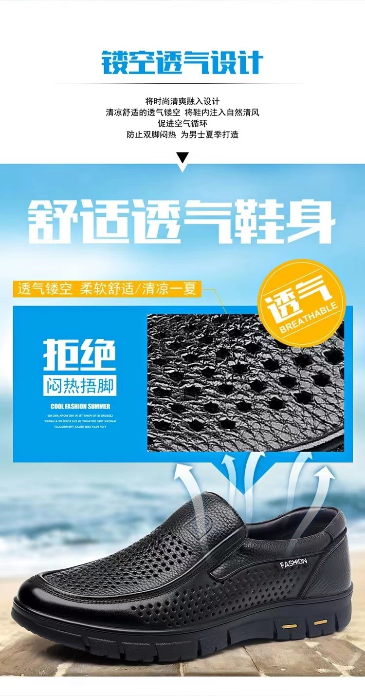 가죽 신발 남성 여름 샌들 중공 통기성 캐주얼 슈즈 비즈니스 부드러운 밑창 정품 가죽 카우 히데 홀 아빠 미끄럼 방지스토어 가기