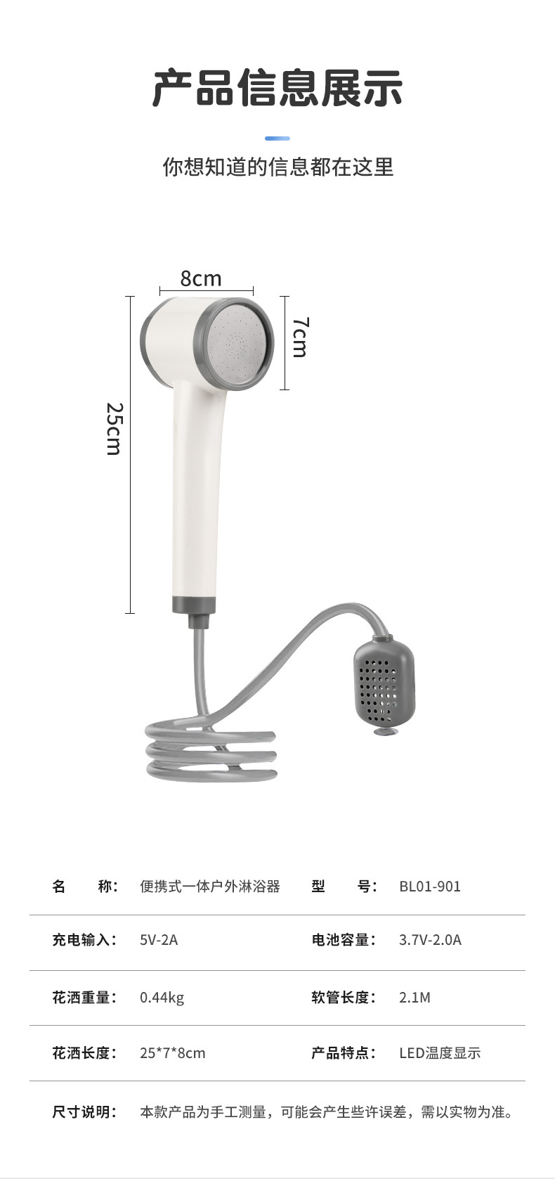 야외 목욕 아티팩트 농촌 기숙사 임대 하우스 휴대용 셀프 프라이밍 모바일 샤워 전기 충전 샤워