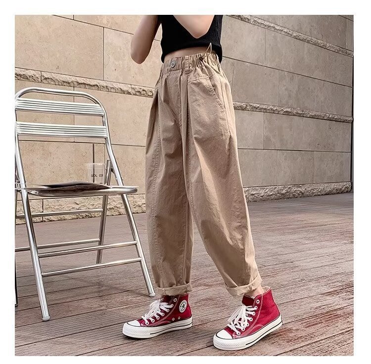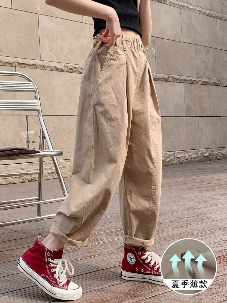 소녀 바지 얇은 봄 코일 바지 2025 새로운 여름 어린이 캐주얼 바지 대형 어린이 스트레이트 바지스토어 가기