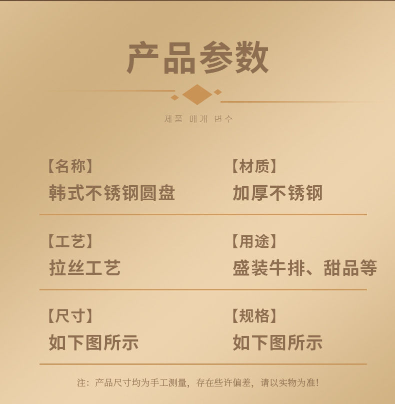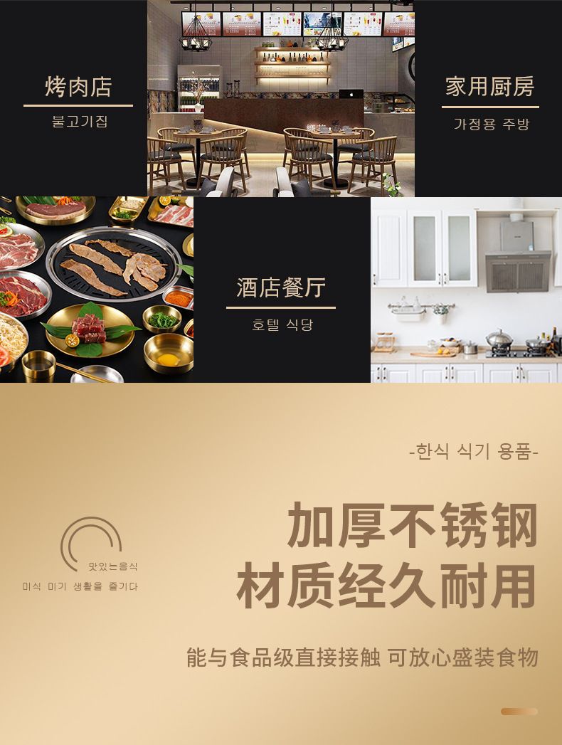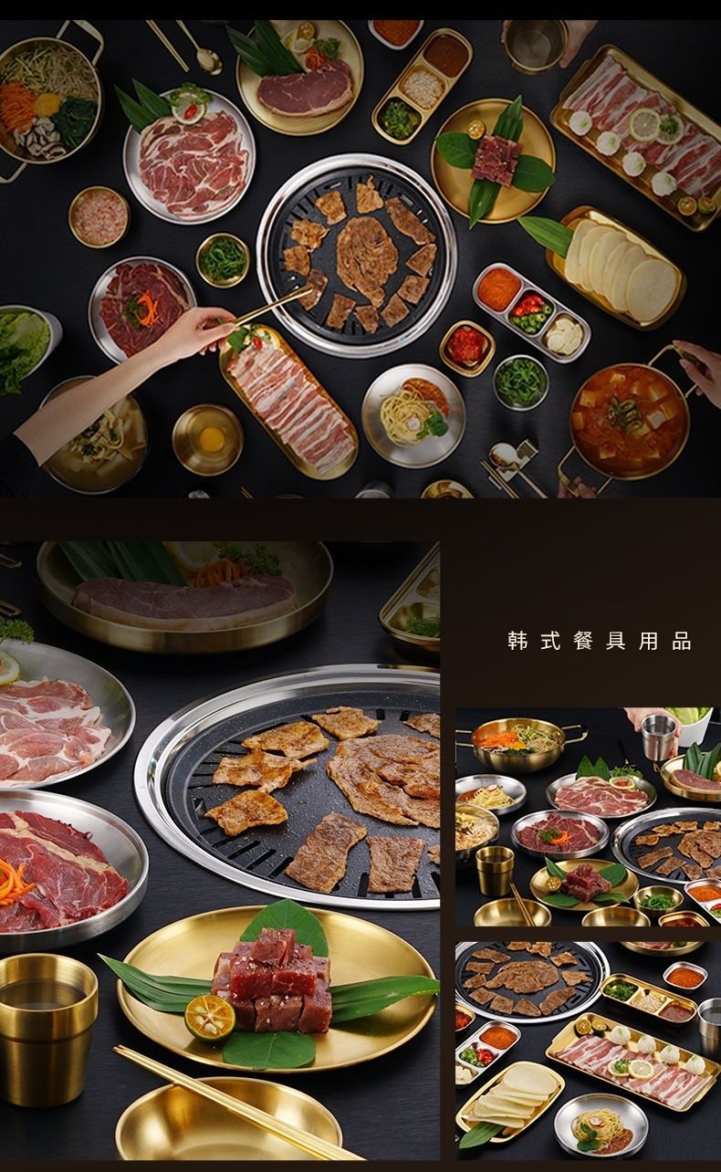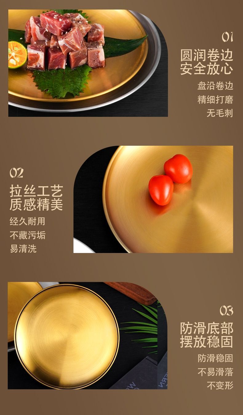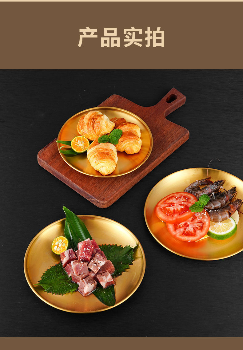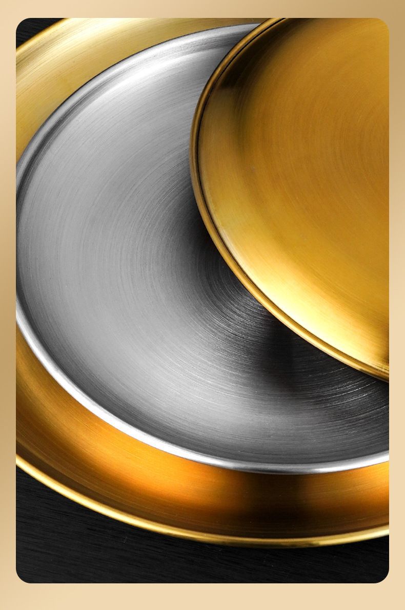 두꺼운 스테인레스 스틸 접시 한국 레스토랑 바베큐 접시 서양 음식 접시 라운드 케이크 디저트 과일 접시 바베큐 접시