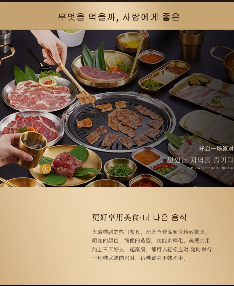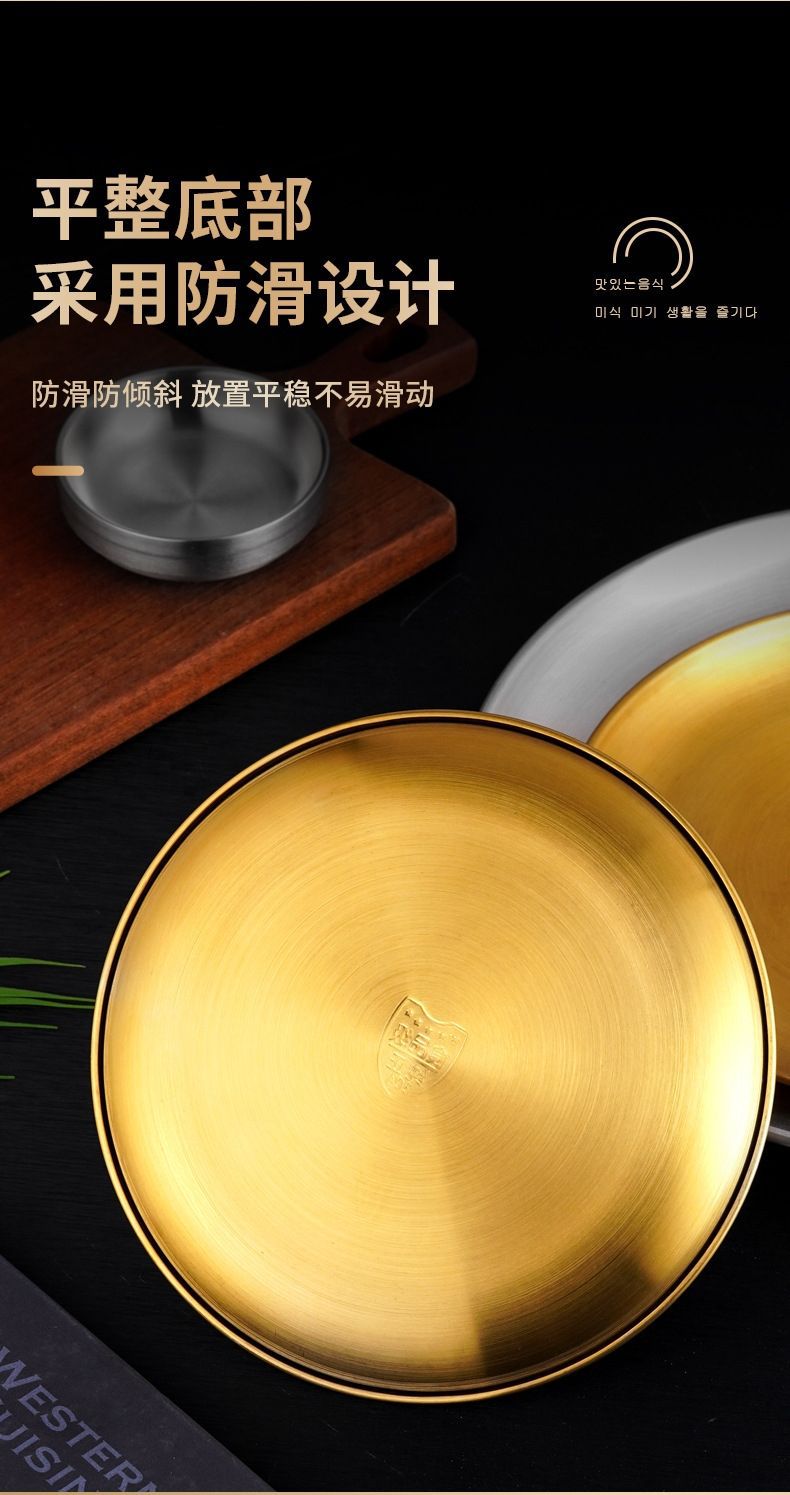 두꺼운 스테인레스 스틸 접시 한국 레스토랑 바베큐 접시 서양 음식 접시 라운드 케이크 디저트 과일 접시 바베큐 접시스토어 가기