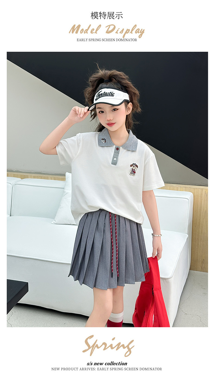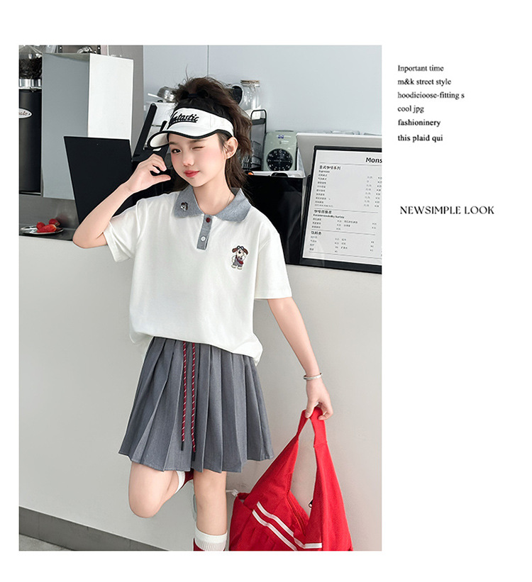 여자 대학 스타일 주름 치마 정장 2025 여름 새로운 스타일 중대형 어린이 반팔 폴로 셔츠와 스커트스토어 가기