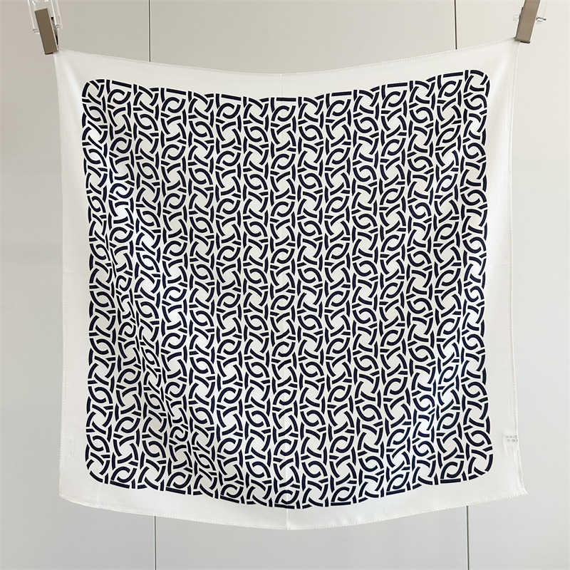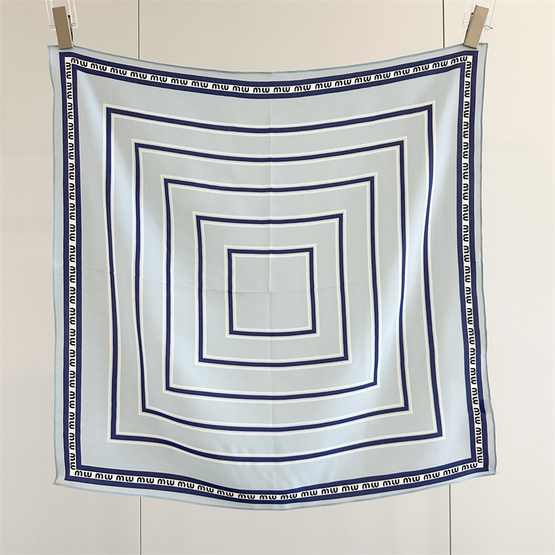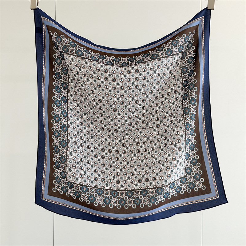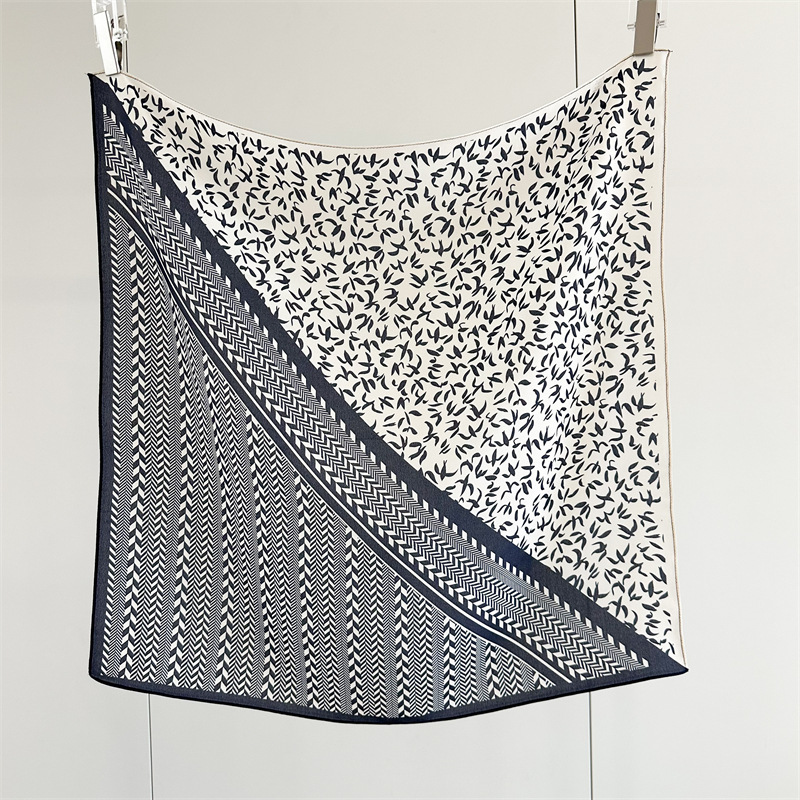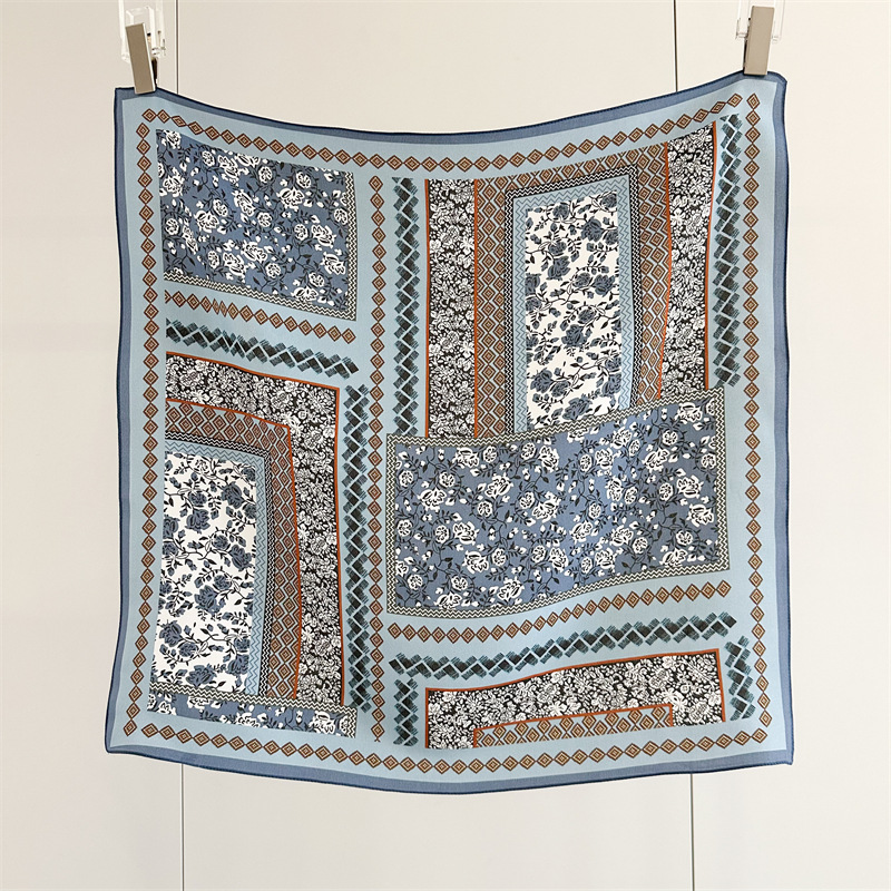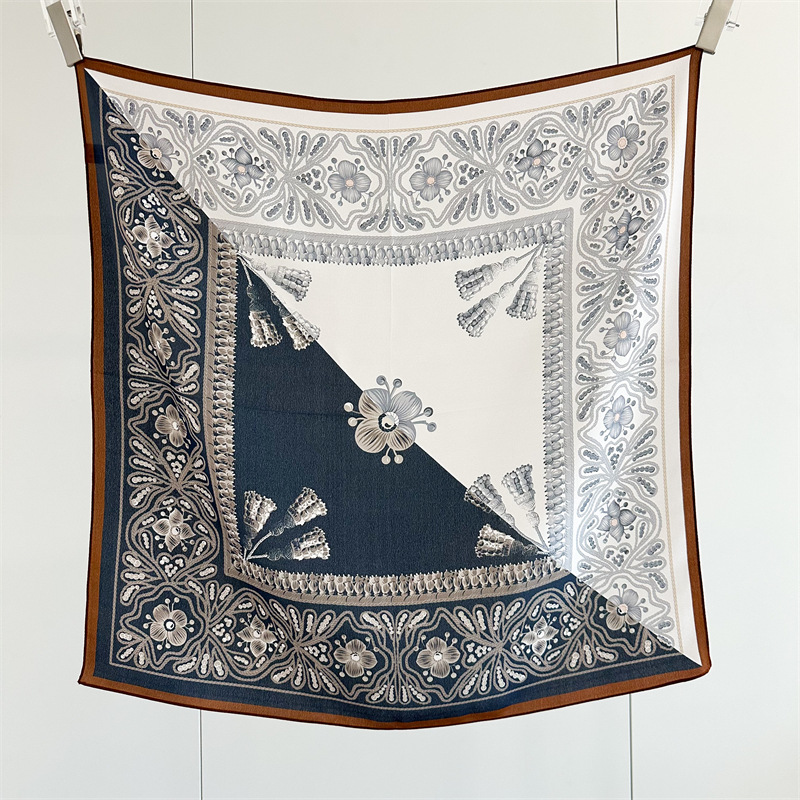 • 크레이프 드 신 블루 트리밍 스퀘어 스카프