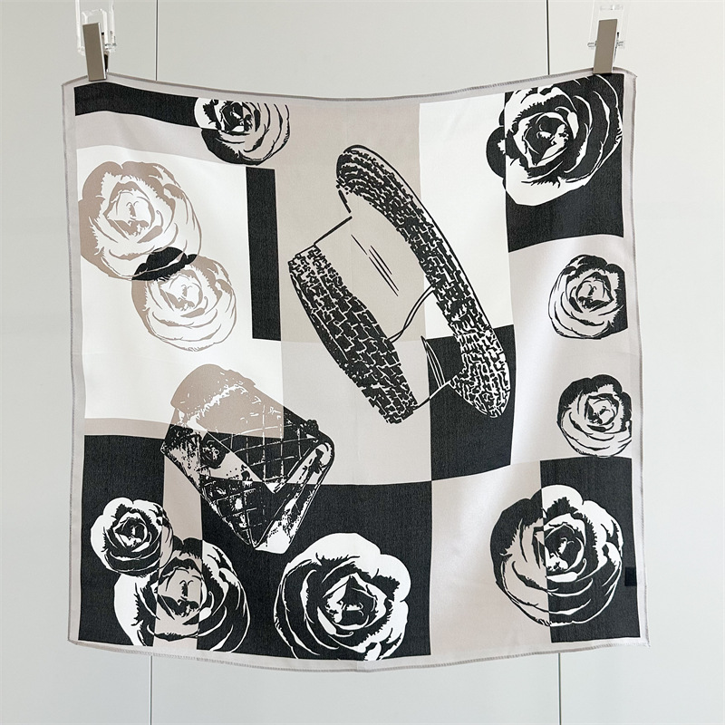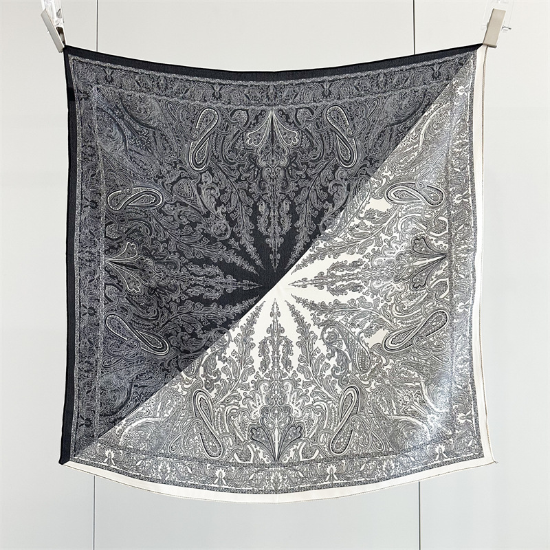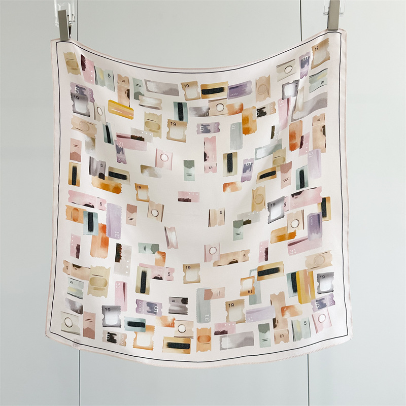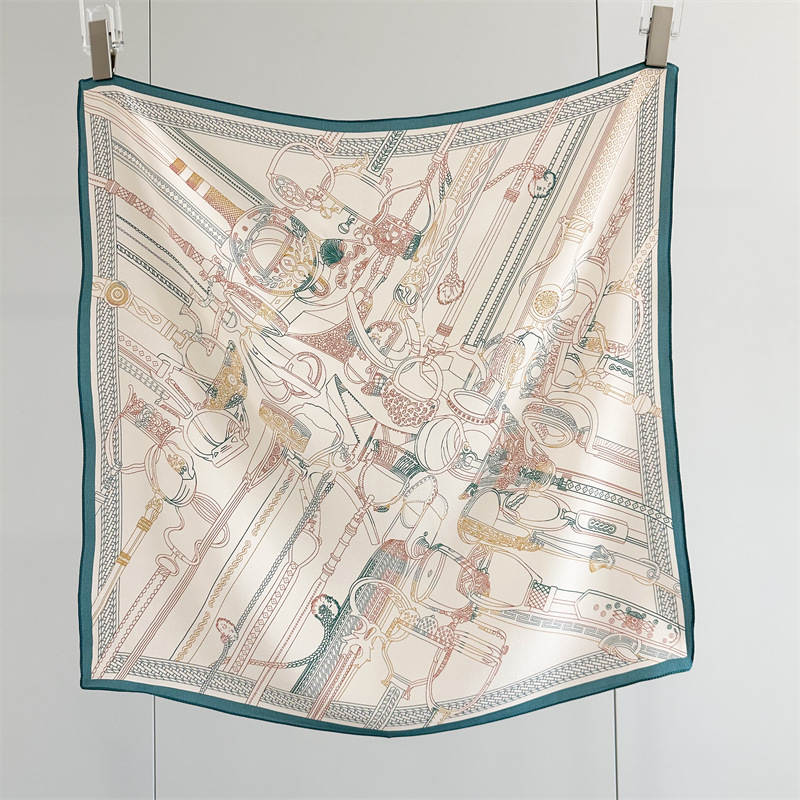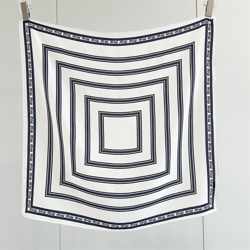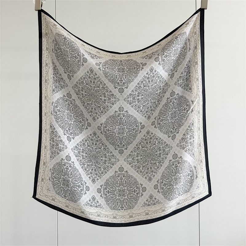 • 크레이프 드 신 블루 트리밍 스퀘어 스카프