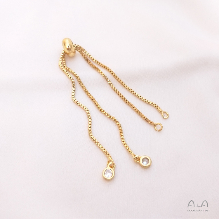 색상 보존 14K 금으로 코팅 된 실리콘 조절 가능한 비드 박스 확장 체인 지르콘 텔레스코픽 팔찌 수제 diy 쥬얼리 액세서리