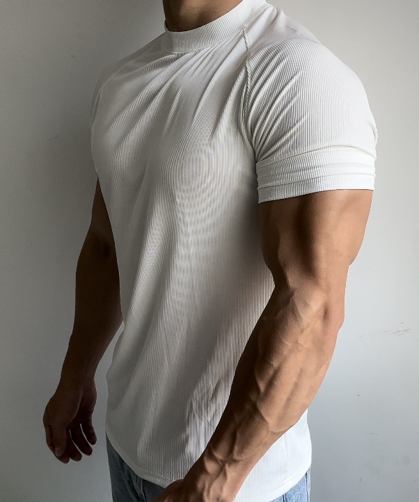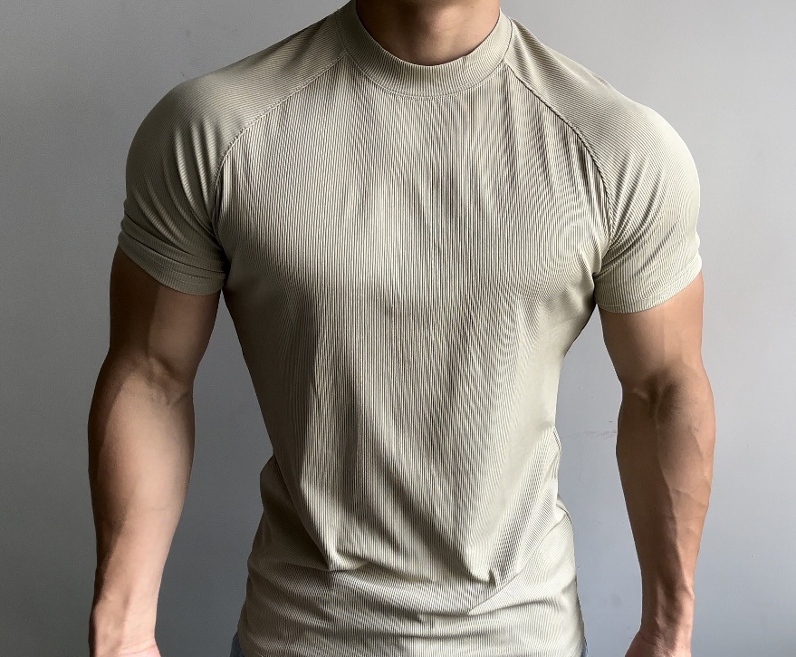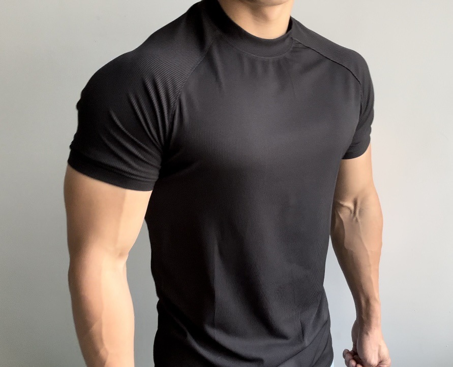 여름 스포츠 야외 트레이닝 반팔 남성용 슬림핏 탄성 속건성 라글란 슬리브 스몰 넥라인 티셔츠 솔리드 컬러 통기성 트렌디스토어 가기