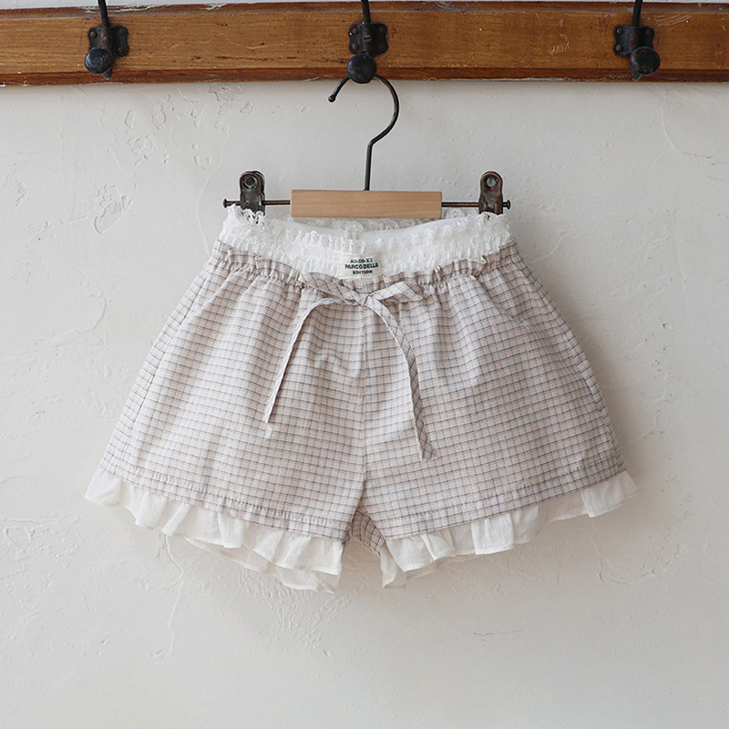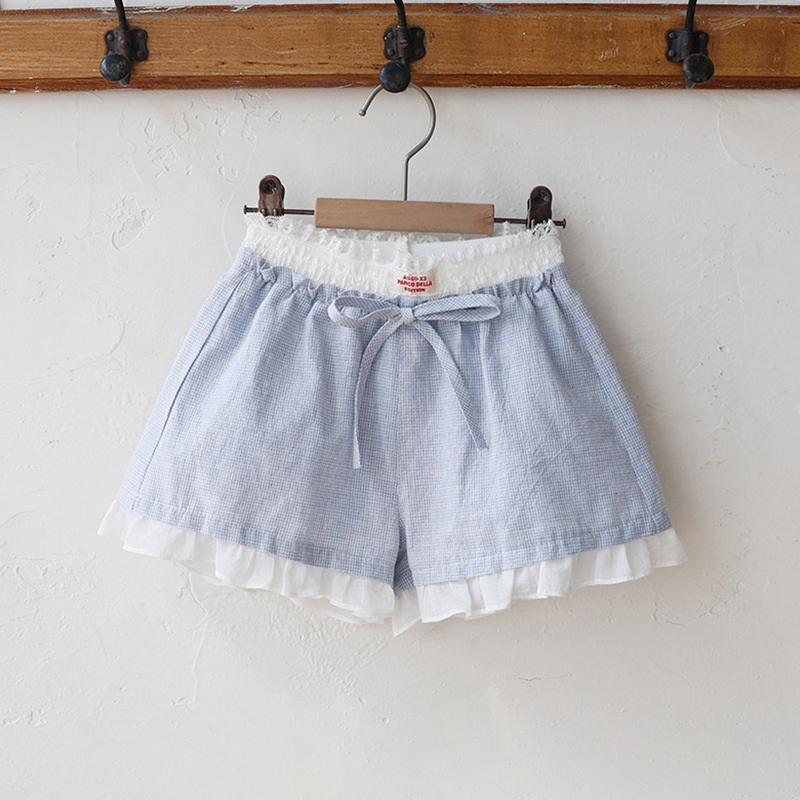 2025 년 여름 딸기 한국 어린이 소녀의 얇은 면 레이스 가장자리 꽃 광장 A 자형 캐주얼 반바지