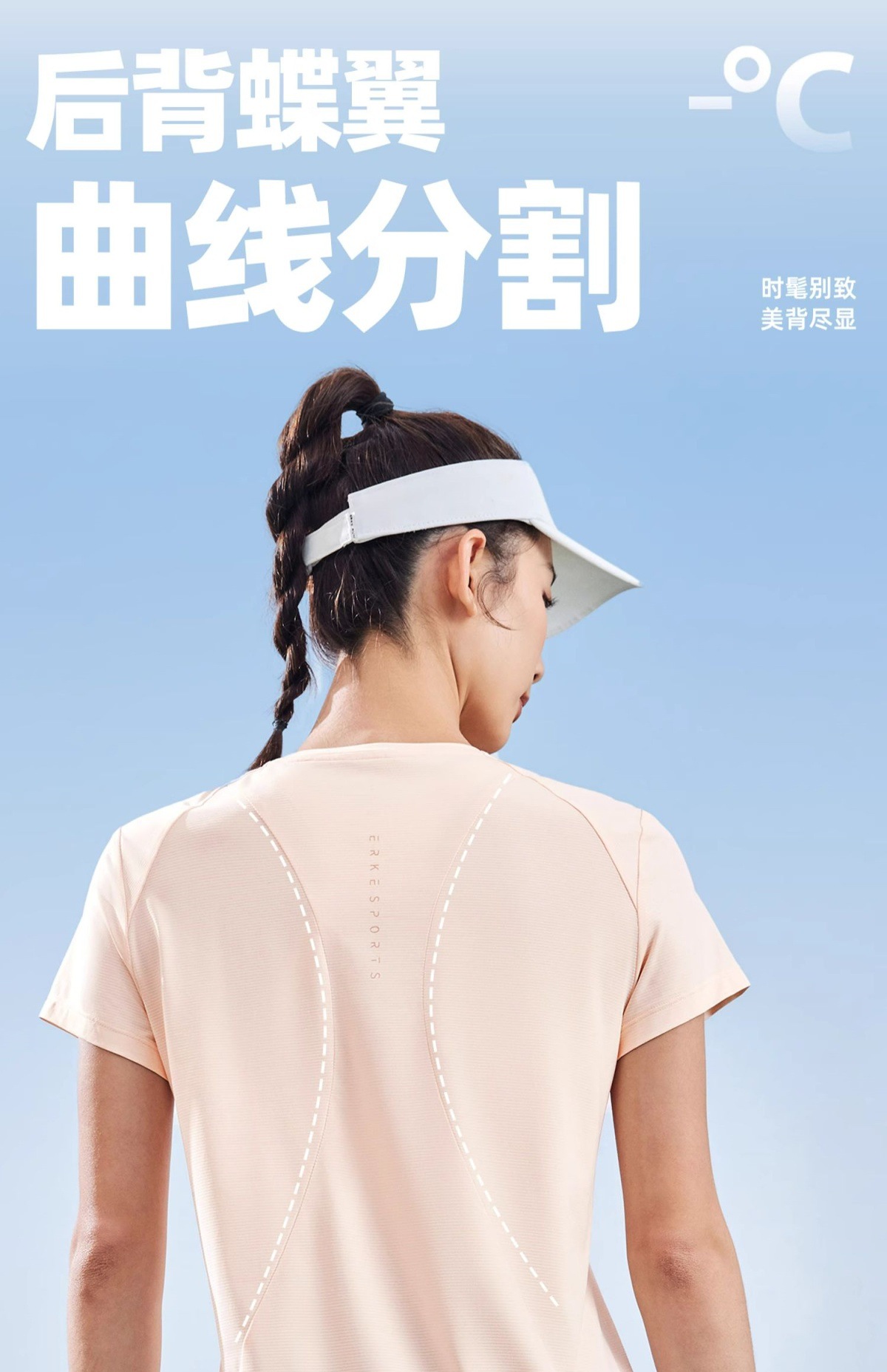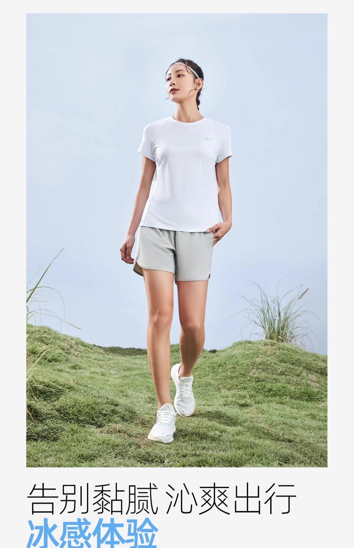 Ice Cube丨Hongxing Erke 2024 여름 신작 여성용 아이스 실크 스포츠 티셔츠 러닝 아이스 배드민턴 탑스토어 가기