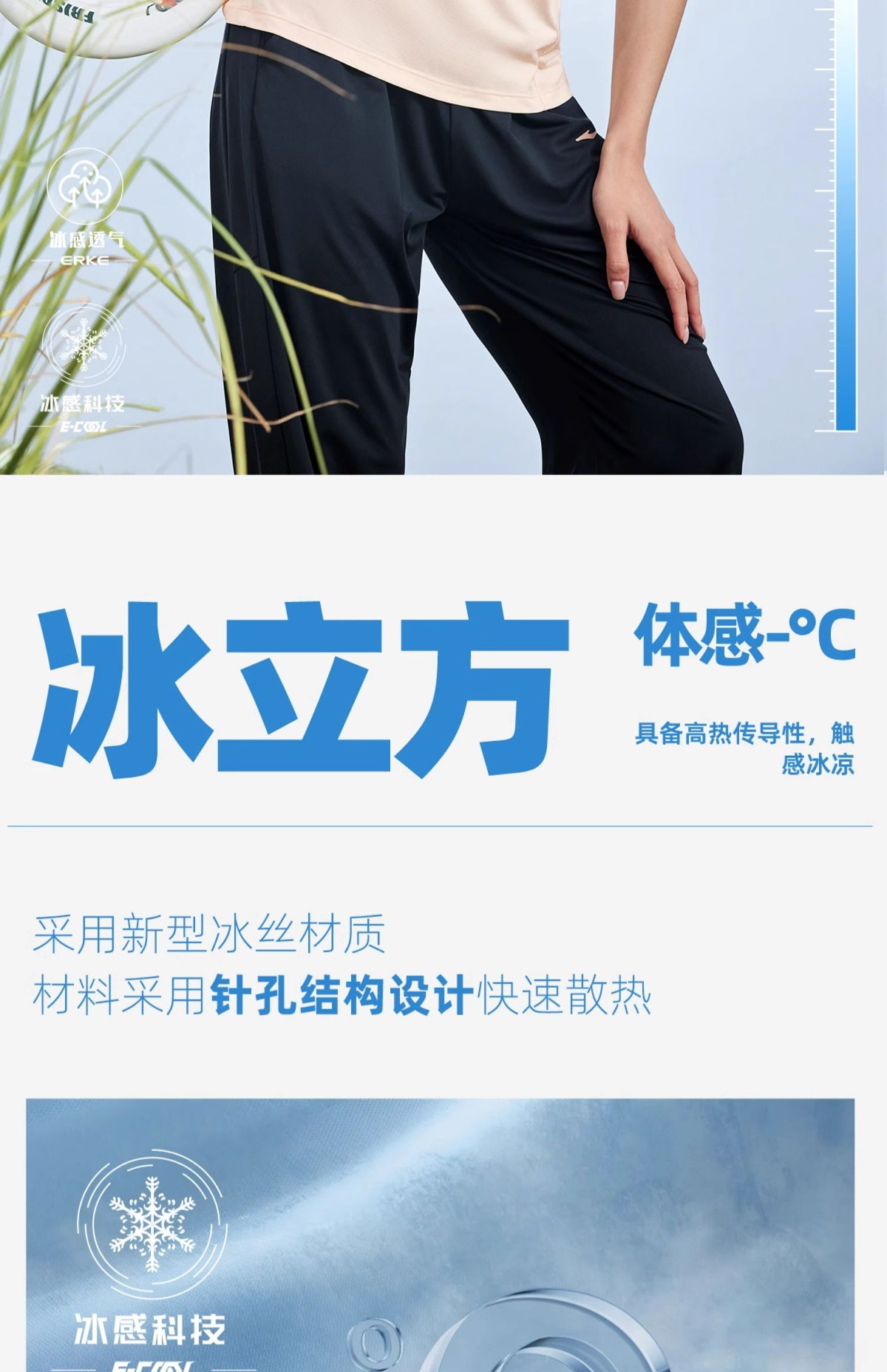 Ice Cube丨Hongxing Erke 2024 여름 신작 여성용 아이스 실크 스포츠 티셔츠 러닝 아이스 배드민턴 탑